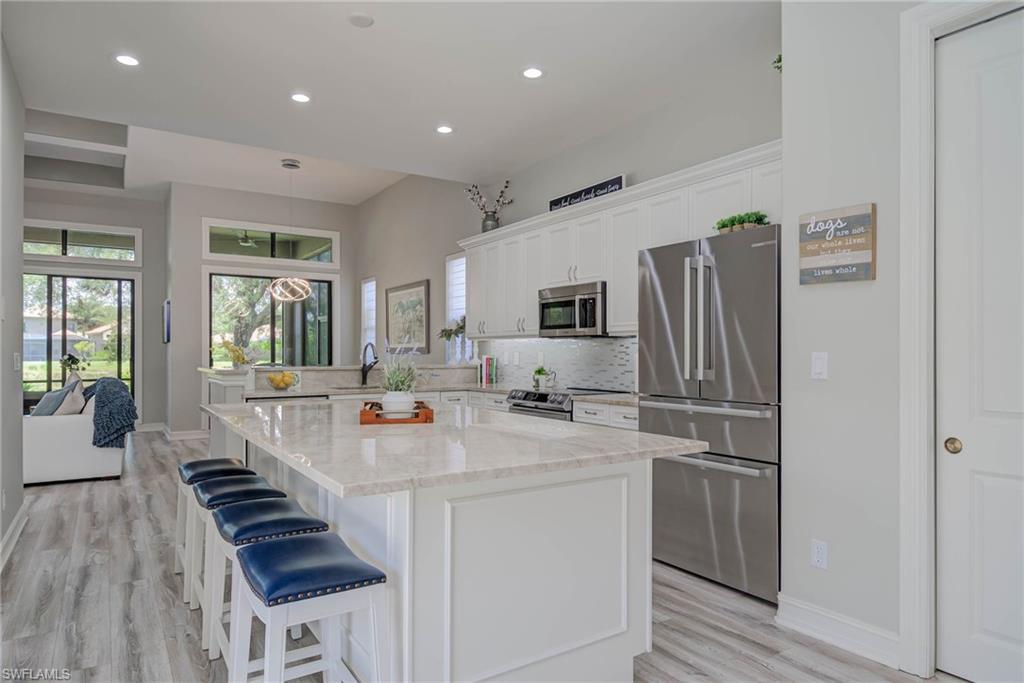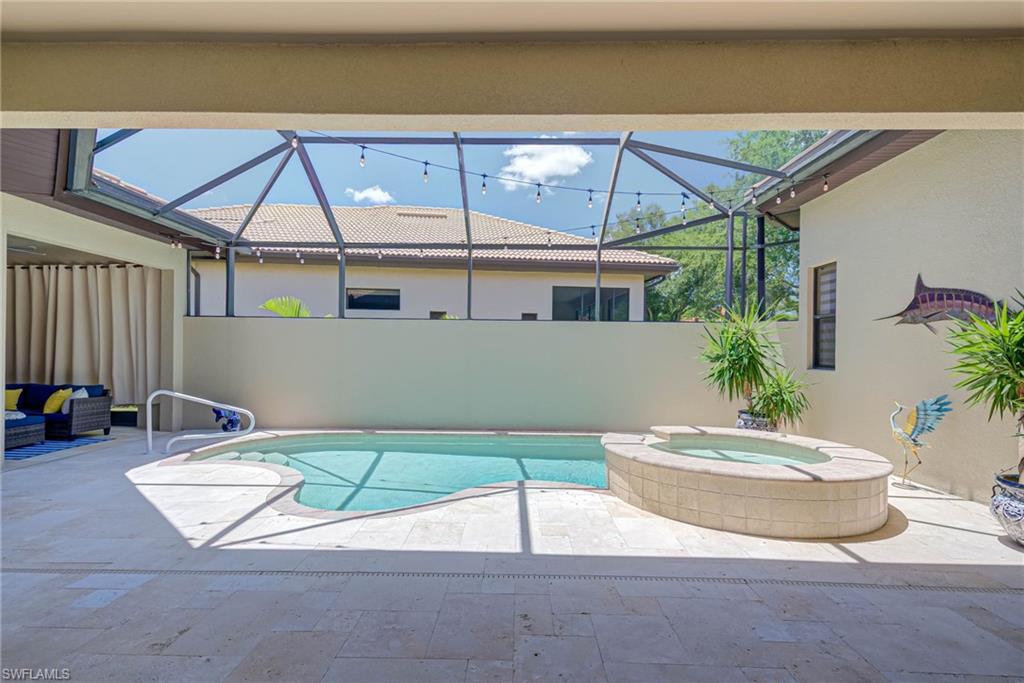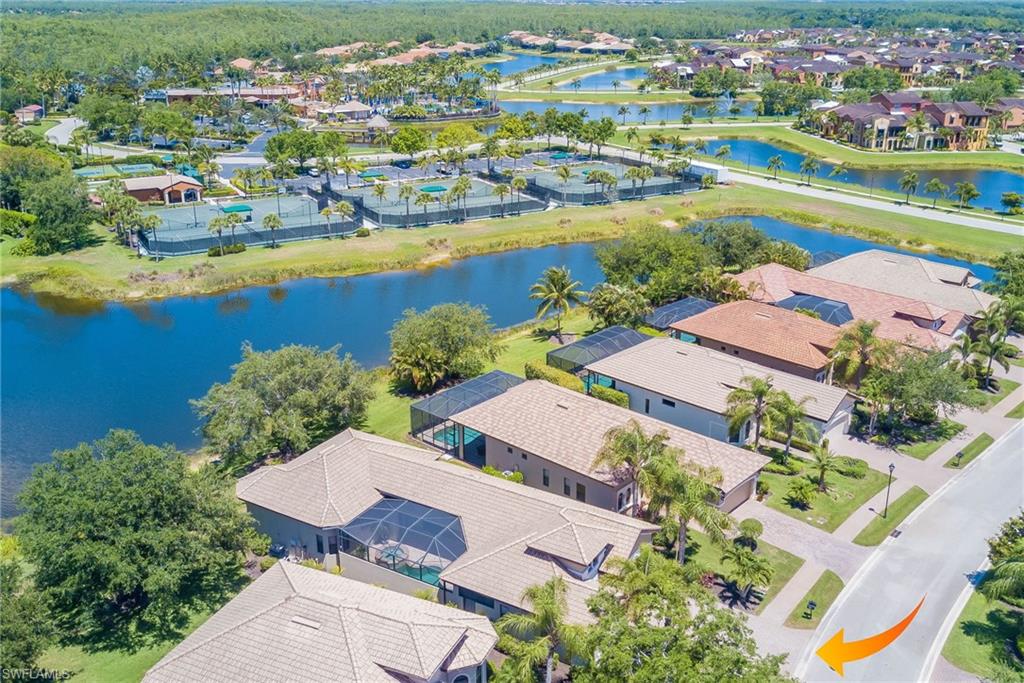 WOW! GORGEOUS AND COMPLETELY CUSTOMIZED, WATERFRONT, SALTWATER POOL/SPA, EXECUTIVE HOME in the award winning community of Paseo.Top of the line Taj Majal Quartzite countertops with extra large counter height island, coveted white cabinetry though out, tile backsplash with additional under cabinet and kickplate lighting, new Bosch Appliances, LVP Flooring in all rooms, new app controlled pool heater and pump, newer AC and water heater, custom paint inside and out. Living room features water views through your wall of sliders, linear fireplace on a rock accent wall, coffered ceilings. Way too many features too list, this is a must see! The Valencia features a separate cabana with kitchenette and full bath, perfect for guests or in-law arrangement and 3 full bath. Lanai has been repaved with Travertine tile for a rich elegant look, incorporating the outdoor living area with in. Thousands spent in additional landscaping, high end light fixtures and modern furnishings. All this in award winning community of PASEO VOTED COMMUNITY OF THE YEAR 9 YEARS IN A ROW!! Come relax by the RESORT STYLE POOL or enjoy a beverage at the TIKI BAR. Watch a game at the PUB or enjoy brunch at the BISTRO. Grab a friend and watch a movie in the cinema or work out in the FULLY EQUIPPED GYM. New lighted bike path will connect you to Lee County bike trail system. Enjoy a game of doubles on the 6 har tru TENNIS COURTS or join in the fun at the PICKLE BALL COURTS!! Come enjoy the Paseo Lifestyle.