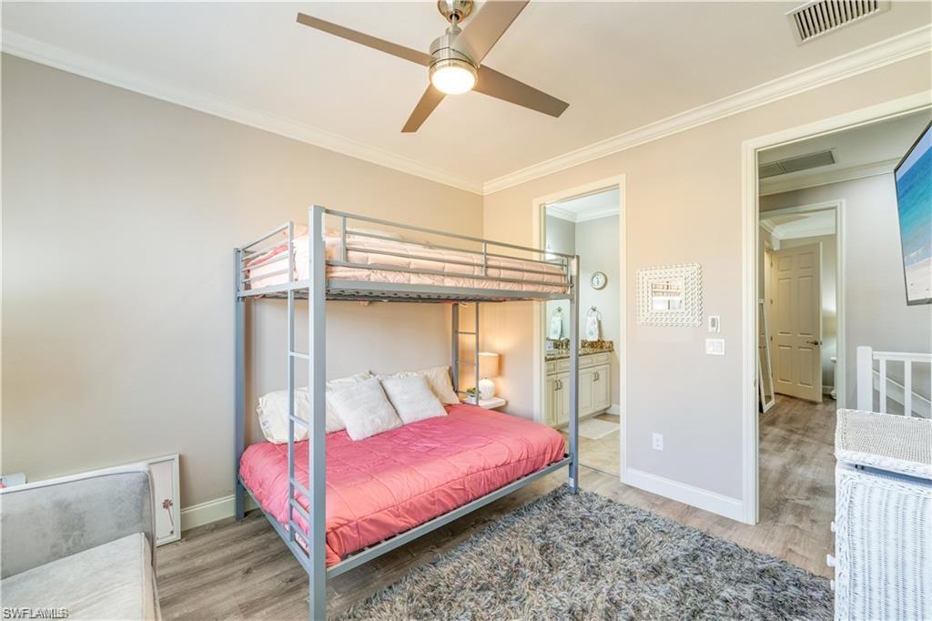 Welcome to your turnkey-furnished retreat in the award-winning, resort-style community of Paseo in Fort Myers, Florida. This delightful two-story casita offers the perfect blend of comfort and convenience, ready for you to move in and start enjoying immediately. The home features a private entrance that leads into the main living area, as well as an attached two-car garage with a large storage area for all your extra storage needs.The first floor boasts a functional layout with a cozy living room, a formal dining area, and an eat-in kitchen dining space. The well-appointed kitchen includes granite countertops, stainless steel appliances, and a large walk-in pantry, offering plenty of storage and functionality. A convenient half-bathroom is also located on the main floor. Step outside to your private screened lanai, an ideal space for unwinding after a busy day or dining alfresco under the stars. Upstairs, you'll find three spacious bedrooms and two full bathrooms. The primary suite serves as a serene haven, complete with a king-size bed, television, and an en-suite bathroom that includes dual sinks, a luxurious soaking tub, a glass-enclosed shower, and a spacious walk-in closet. The second bedroom is outfitted with a full-over-full bunk bed, while the third bedroom offers a queen-size bed, and both are joined by a shared Jack-and-Jill bathroom, providing comfort and privacy for family or guests. An additional cot is also available for use. Residents of Paseo enjoy access to a wealth of resort-style amenities, including a 26,000-square-foot village center with a resort-style pool, a separate spa, private cabanas, and a tiki bar serving light fare. Fitness enthusiasts can take advantage of the state-of-the-art fitness center, aerobics and Pilates studio, and facilities for tennis, basketball, bocce, and pickleball. Dining and entertainment options include The Paseo Pub, The Bistro for fine dining, an old-fashioned ice cream parlor, a 90-seat movie theater, an internet cafu00e9, and a coffee shop. The luxurious full-service spa offers the perfect place to unwind. Conveniently located in South Fort Myers, Paseo is just minutes from shopping, dining, and entertainment options, and less than a 20-minute drive from the beautiful beaches of Sanibel, Captiva, and Fort Myers. Don't miss this opportunity to experience resort-style living in this charming, fully furnished home. Schedule a viewing!