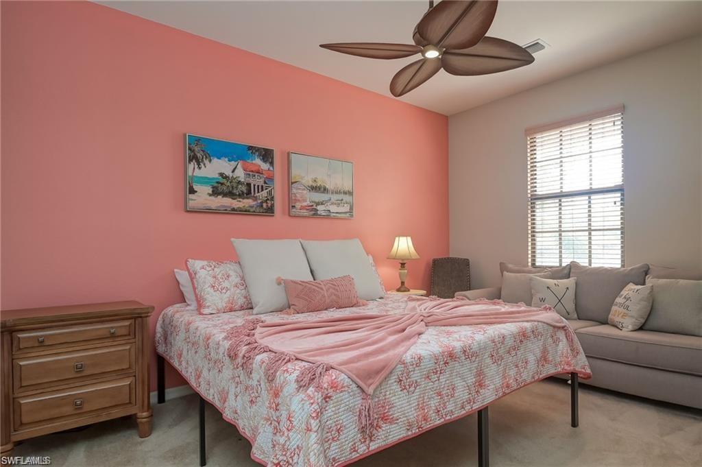 Very well-appointed Capistrano Casita available for seasonal rental. This casita offers 2 bedrooms with a loft, which is set up with a bed and a partition for privacy for extra guests. It also has a relaxing lanai area, 2 car garage and equipped with anything you would need. One of the perks of living in a Casita is no common shared walls. Paseo features resort-style activities including a town square with a gorgeous resort-style pool, lap pool, spa, fitness center, full-service salon, ice cream/coffee shop, business center/library, movie theater, tennis courts, pickle ball, restaurant, tiki bar, fishing pier & social/musical entertainment. Vibrant colors on buildings surrounded by tropical mature landscaping with unique Spanish architecture. Perfectly located near RSW airport, I75, shopping, restaurants and right between the Red Sox & Twins spring training facilities. Your paradise awaits!