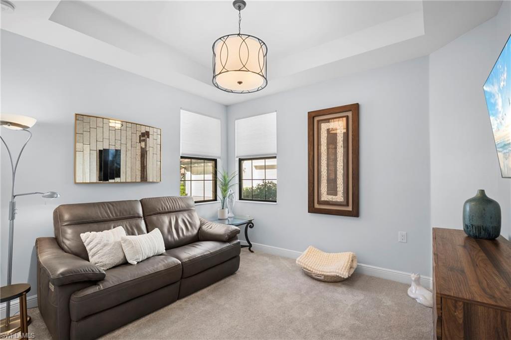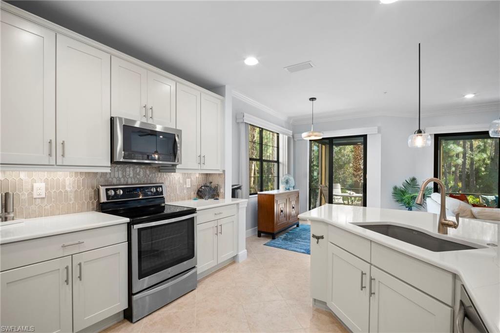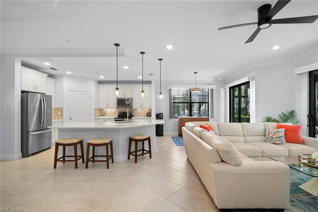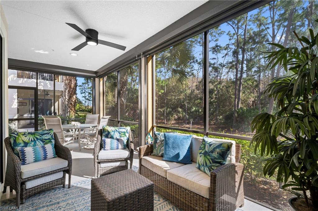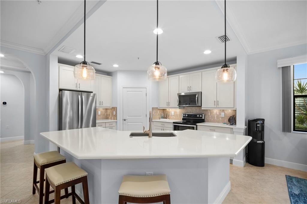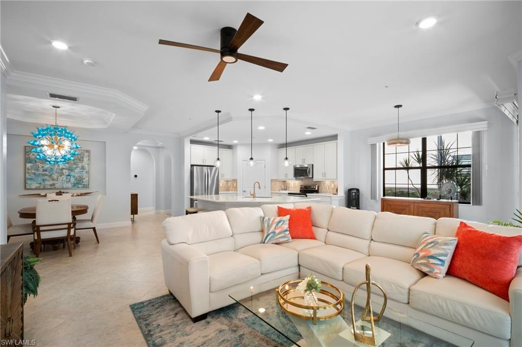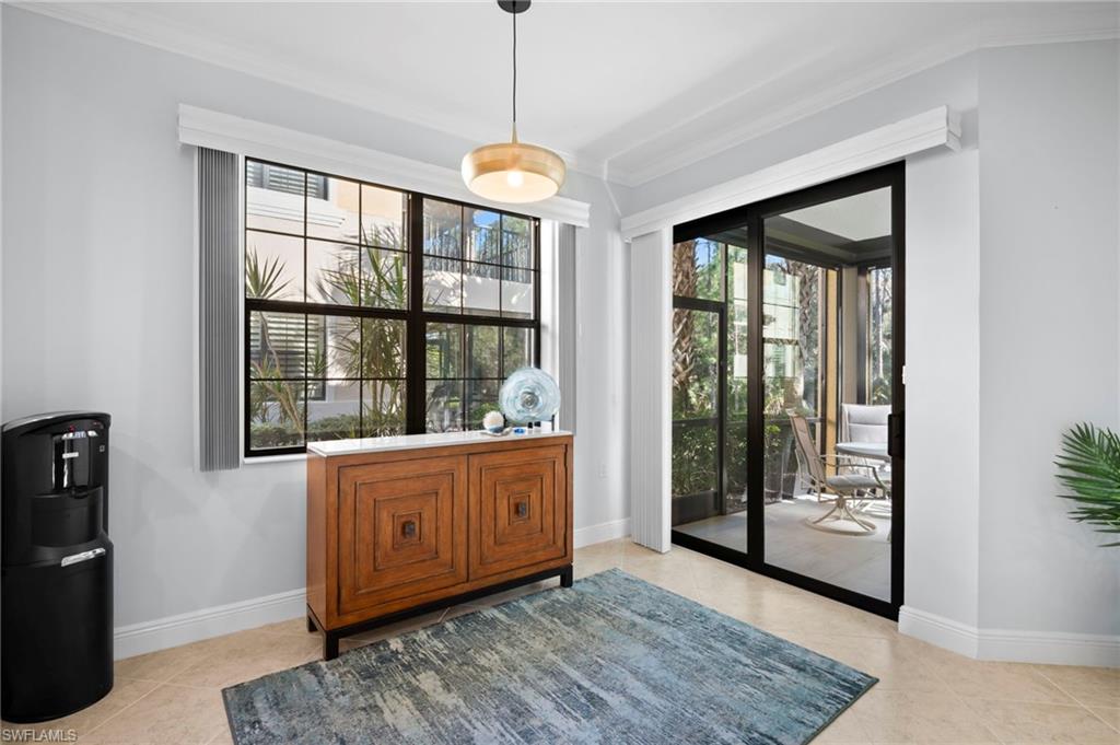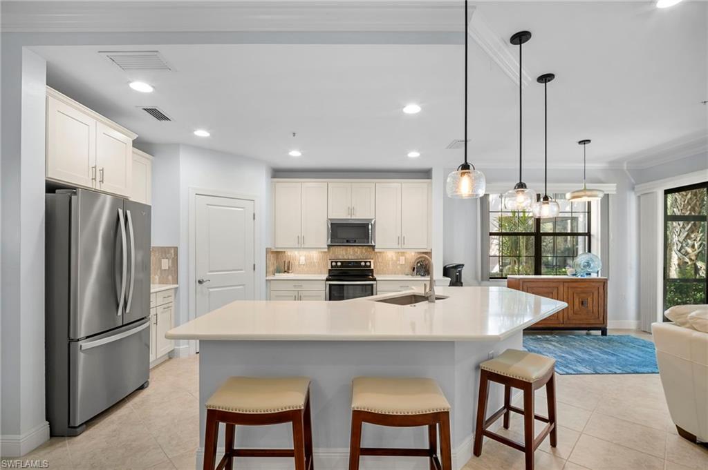 Stunning carriage home located in the sought-after Casella neighborhood of Pelican Preserveu2014one of the nationu2019s top premier 55+ communities. This beautifully updated residence offers peace of mind with impact-resistant windows and doors, along with Storm Smart electric roll-down shutters on the expansive tiled and freshly painted lanai, complete with a no-see-um screen for year-round enjoyment. Inside, youu2019ll find thoughtful upgrades and refined finishes throughout, including 18` tile flooring, custom millwork, crown moulding, and larger baseboards that add a polished, upscale touch. The kitchen features 42` white cabinetry, new granite countertops, a new backsplash, and a Silgranit stone kitchen sink. Both primary bath and guest bath have new granite countertops. The home has been freshly painted and enhanced with new can lighting and elegant pendant lighting in the living room and primary bedroom. Additional upgrades include new carpet in the bedrooms, new ceiling fans throughout, USB/USB-C outlets, an Ecobee smart thermostat, and whole-house Eaton surge protection, offering both modern convenience and efficiency. Casella residents have access to their own private community pool. Pelican Preserveu2019s Town Center is the heart of the community, delivering an unmatched resort-style lifestyle with endless opportunities to stay active and social. Amenities include an indoor fitness pool, walking track, outdoor resort-style pool and lap pool, organized tennis and pickleball, wood shop, arts and crafts studio, billiards, a 99-seat movie theater, two restaurants with outdoor dining, a tiki bar, live entertainment, an outdoor concert pavilion, and miles of scenic walking and biking trails. Conveniently located near shopping, dining, the airport, and beautiful beaches, this exceptional home truly has it all. A must-see opportunity to enjoy resort-style living at its finest.