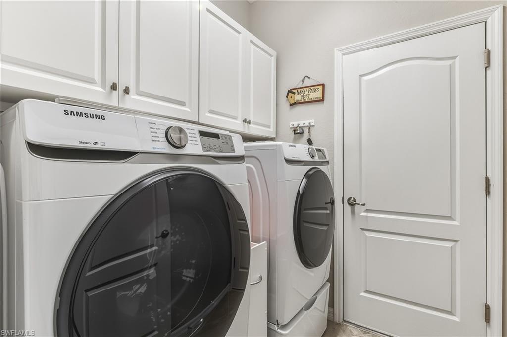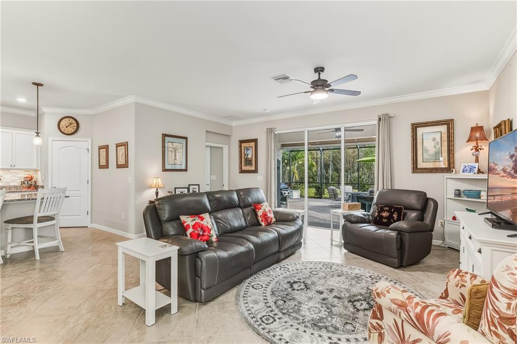 Experience the best of Florida living in this almost-new, completely upgraded 3-bedroom, 3-bath furnished home in the resort-style community of Pelican Preserve. Step outside to your oversized 20x23 screened lanai overlooking a serene cypress preserve. The lanai is beautifully framed by lush Christmas palms and holly, creating a private tropical oasis complete with a firepit for relaxing evenings under the stars. A welcoming front porch adds extra charm. Inside, the open floor plan flows seamlessly with tile floors, crown molding, and plantation shutters throughout. The upgraded kitchen features tile backsplash, granite countertops, white wood kitchen cabinets with wood pullouts, walk-in pantry and new dishwasher. The primary suite with private views of the preserve boasts dual closets with built-in organizers, spacious ensuite bath with dual sinks, huge walk-in shower with dual shower heads and bidet. The 2nd guest bedroom has an ensuite bath perfect for visiting family and friends. Both guest baths have newer glass shower doors. The 3rd bedroom is light and bright an is adjacent to the 3rd bath. Laundry room has new cabinets plus a front-load Samsung washer and dryer. The home is wired for a generator. Other features include motorized hurricane screens for the lanai and invisible screens front and back. Pride of ownership shows with this home, the owners have even proactively upgraded their tile roof with metal flashing in the valleys to be watertight for years. This home is truly move-in ready. Pelican Preserve offers the ultimate Florida lifestyle with resort-style amenities: lap pools, resort pools, several restaurants, attended fitness center with state-of the art equipment and fitness instructors, full-service spa, yoga and exercise classes. spa, active tennis and pickle ball programs, walking/jogging paths through the preserves. Meet your friends at yoga class, sitting by the pool or on the golf course. Golf carts welcome; optional golf membership is available at The Club at Pelican Preserve with 27 Holes of Championship golf. Pelican Preserve is conveniently located near RSW International Airport, the historic district of downtown Ft. Myers, Coconut Point Mall or Gulf Coast Town Center. Enjoy a quick trip to Bonita Beach, Sanibel or Ft. Myers Beach. Living in Pelican Preserve will make every day feel like a vacation!