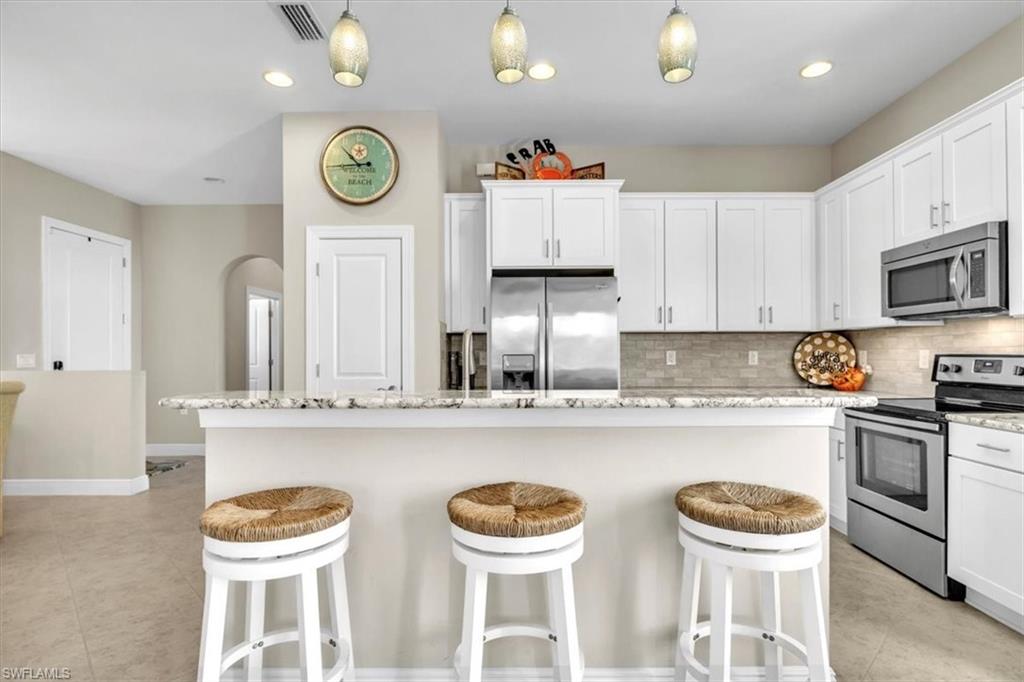 UNBELIEVABLE PRICE on this stunning home in Pelican Preserve. This home is impeccably maintained and shows like a model. The spacious lanai with no-see-um screens offers a serene setting to enjoy the expansive view and privacy of the large yard (with room for a pool). Watching the sunsets from the lanai while sipping on your favorite beverage will make every evening special after a full day of activities.Rest assured, the air conditioning and water heater are both new, and all windows are equipped with storm protection. The lanai and entry feature remote storm smart technology for added convenience. The guest bedroom is equipped with a Queen Murphy bed system for flexibility when guests are not present. Luxury vinyl plank flooring in the bedrooms and den, along with plantation shutters and upgraded lighting, enhance the beauty of this home. Closets are have built-ins. The garage even boasts epoxy flooring.Furniture is negotiable, allowing for a seamless transition into this lovely home. Pelican Preserve is a 55+ award-winning community with a plethora of amenities including walking trails, pools, restaurants, pickleball, tennis, fitness facilities, an amphitheater, indoor theater, spa, dog parks, card rooms, and more. Golf is available with memberships offered. Don't miss the opportunity to own this charming home in Pelican Preserve and start living the dream.