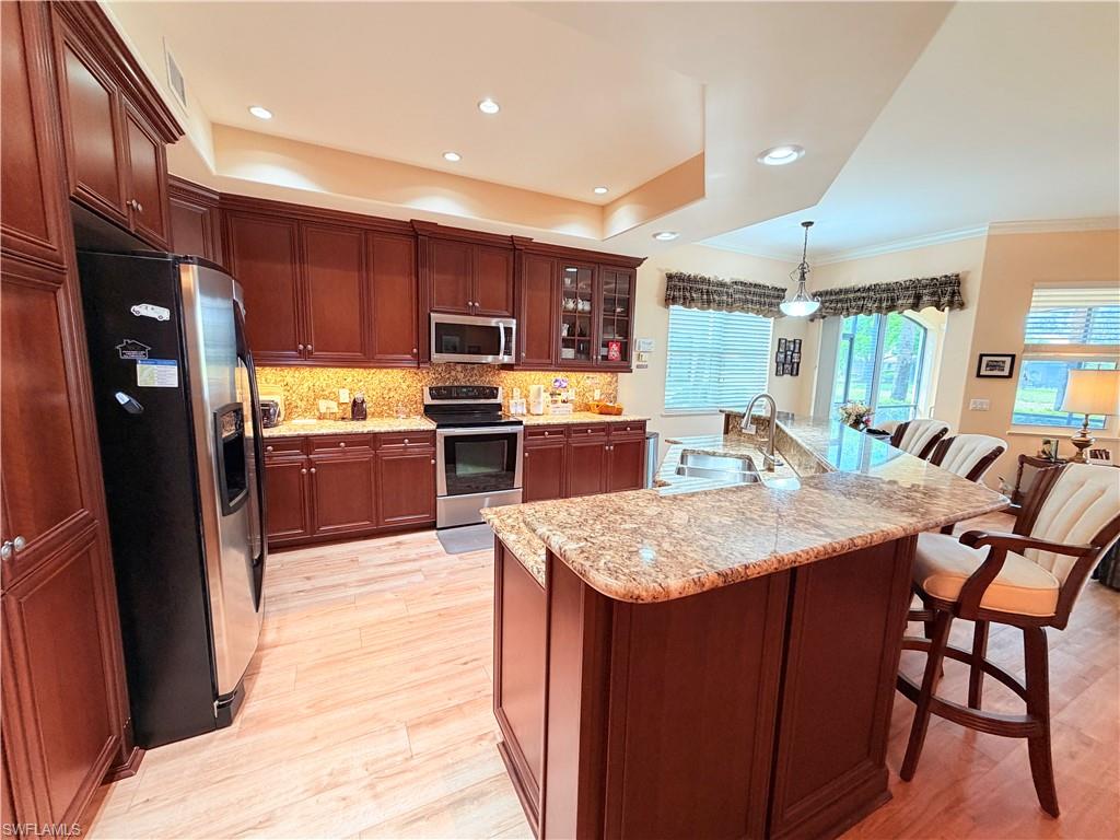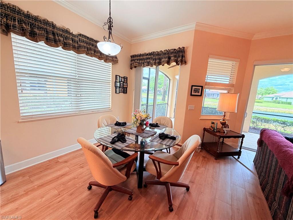 Step into paradise with this immaculately maintained first-floor carriage home that truly stands outu2014not just for its features, but for its exceptional value in todayu2019s market!Boasting 3 LARGE bedrooms, 2 bathrooms, and a spacious 2-car garage, this residence welcomes you with a bright, totally open-concept design that feels both elegant and inviting.From the moment you enter, youu2019ll be captivated by the gorgeous entryway and stunning luxury vinyl plank flooring that flows seamlessly throughout the main living areas. Enhanced by newer hurricane-impact windows and doors, this home offers both beauty and peace of mind.The chef-inspired kitchen is a standout feature, showcasing ultra-rich cabinetry, updated stainless steel appliances, and high-grade countertopsu2014perfect for entertaining or everyday living. Even better, the beautiful barstools and charming breakfast table with chairs are included, making this space move-in ready from day one.Every detail has been thoughtfully designed, with crown molding, coffered ceilings, and updated fans with lighting adding a refined touch throughout. All three bedrooms are generously sized with plush, comfortable carpeting, while the primary suite features an incredible walk-in shower for a spa-like retreat. Furnishings in the guest bedroomsu2014including a full bedroom set and daybedu2014are also included, adding exceptional value.Step outside to your private lanai oasis, where you can enjoy peaceful mornings and relaxing evenings overlooking a serene lake view. Complete with privacy blinds and lanai furniture that stays, this outdoor space is perfect for unwinding in comfort.?? Unmatched Value in Pelican Preserve ??In a community where median home prices typically range around $400Ku2013$450K+ and many properties climb even higher, this home represents one of the most attractively priced opportunities currently availableu2014making it an incredible find for buyers seeking luxury, space, and lifestyle without overpaying.Located in the highly sought-after Pelican Preserve, one of the top-rated 55+ communities in the U.S., youu2019ll enjoy access to a beautifully maintained neighborhood featuring new roofs, scenic lake and preserve views, and optional golf. Plus, youu2019re just minutes from Southwest Florida International Airport, shopping, dining, and world-class beaches.Offered partially furnished (with most furnishings included!), this home is the definition of effortless Florida living.Welcome to paradiseu2014where value meets lifestyle, and your dream home awaits! ??