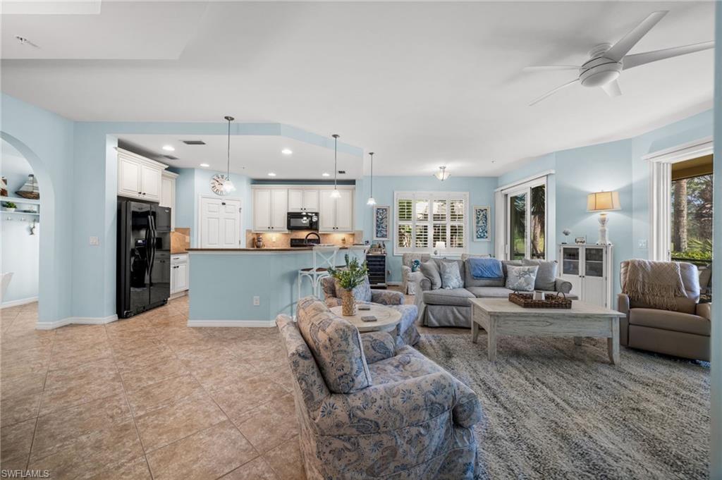 Welcome to effortless Southwest Florida living in this beautifully maintained first-floor coach home offering 1,739 sq ft with 3 bedrooms, 2 bathrooms, and an attached 2-car garage, perfectly positioned to enjoy peaceful golf course views. Enter through the inviting glass front door, and youu2019ll immediately appreciate the bright, clean feel of the homeu2014enhanced by plantation shutters throughout for timeless style, privacy, and light control. Added peace of mind comes from impact windows and doors along with fire sprinklers, creating a secure, storm-ready feel. The home features tile flooring throughout and a layout designed for comfortable everyday living and easy entertaining.Thoughtful upgrades elevate organization and convenience, including California Closets in the bedrooms and an upgraded pantry system for exceptional storage. The home is also equipped with tankless hot water on demand, plus a water filtration system and booster pump for improved water pressureu2014details that make a noticeable difference day to day. Enjoy indoor-outdoor Florida living with an oversized screened lanai space to relax and take in the view from sunrise to sunset.Pelican Preserve is one of Southwest Floridau2019s most celebrated gated 55+ communities, known for its vibrant social scene and resort-style amenities centered around the Plaza del Sol Town Centeru2014shops, dining, a weekly Farmers Market, clubs, and an endless calendar of activities. Wellness and recreation abound with a resort-style pool & spa with poolside dining, a state-of-the-art fitness center (indoor track, lap pool, classes, sauna/steam), a full-service spa, arts and hobby studios, theater, and more. Golf enthusiasts will love the 27-hole championship course (golf memberships optional), along with tennis, pickleball, and additional sports options. Conveniently located just a short drive to Southwest Florida International Airport (RSW).Schedule your private showing and come experience why Pelican Preserve is a destination community.