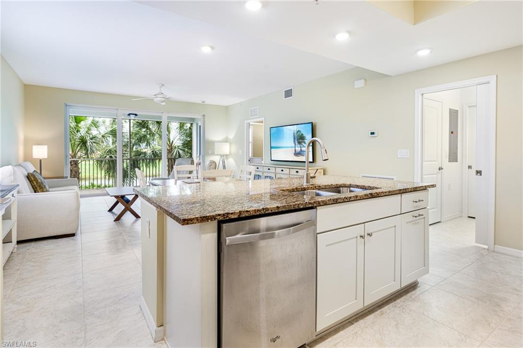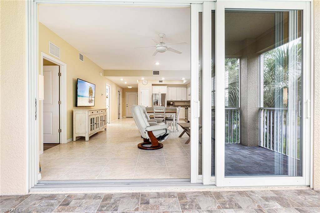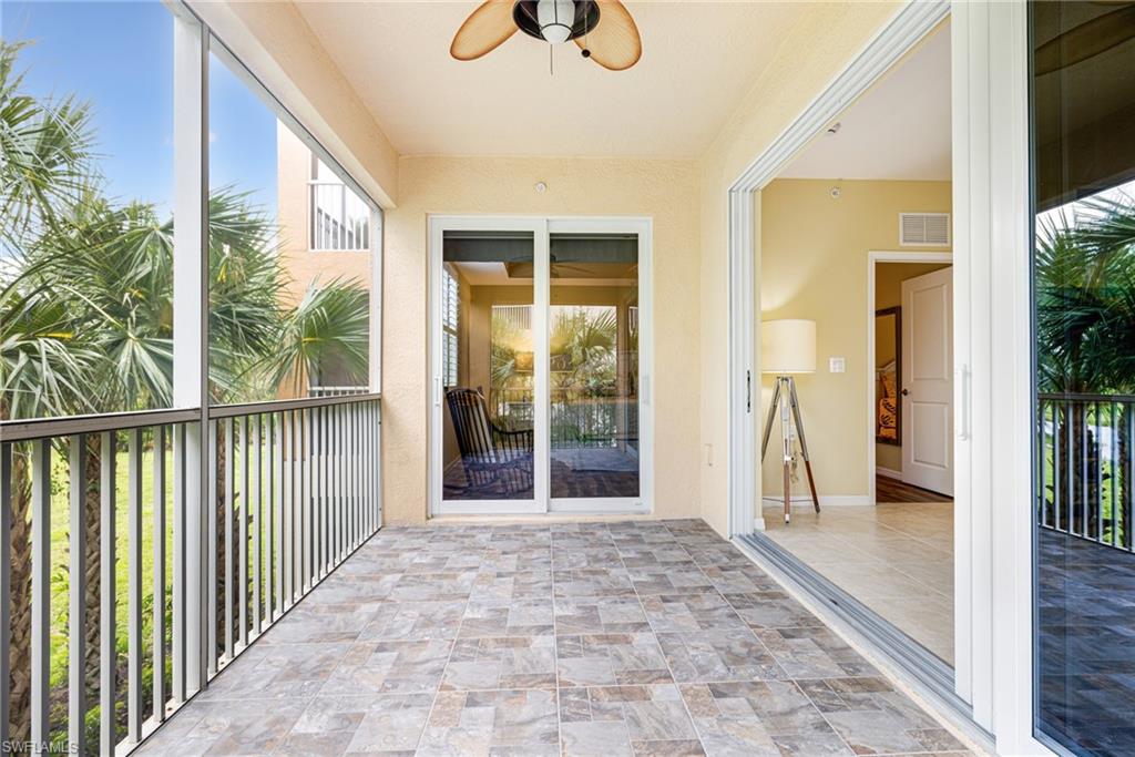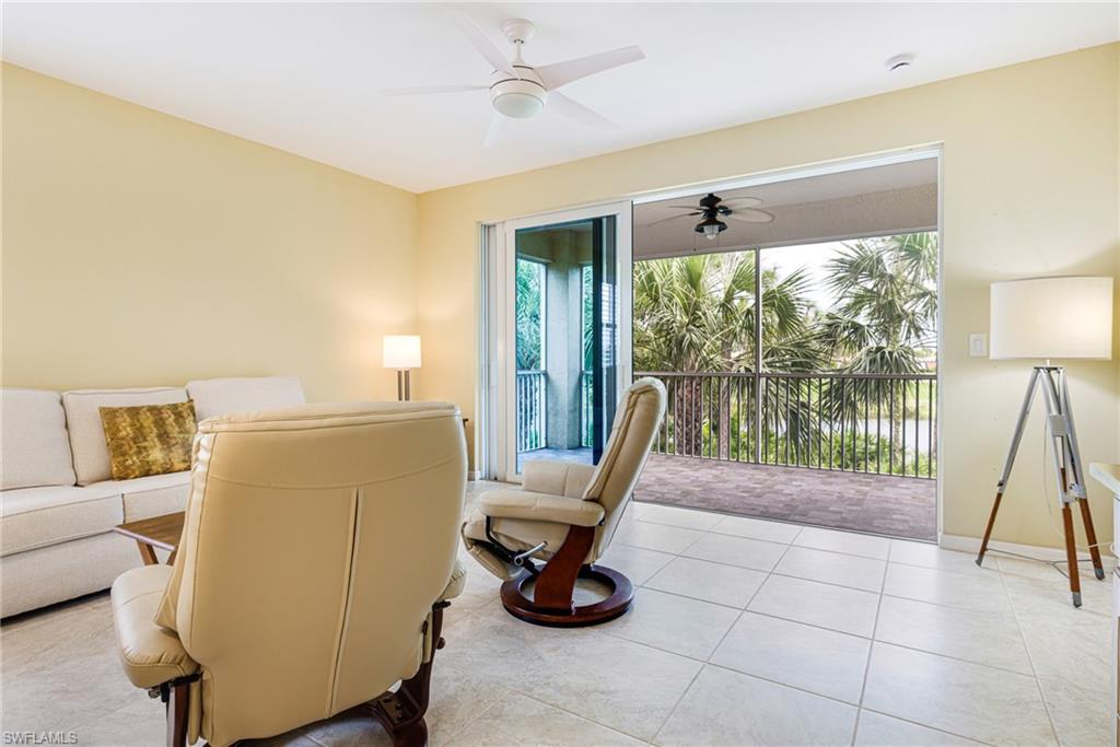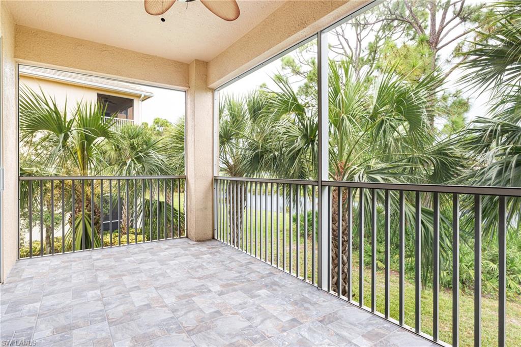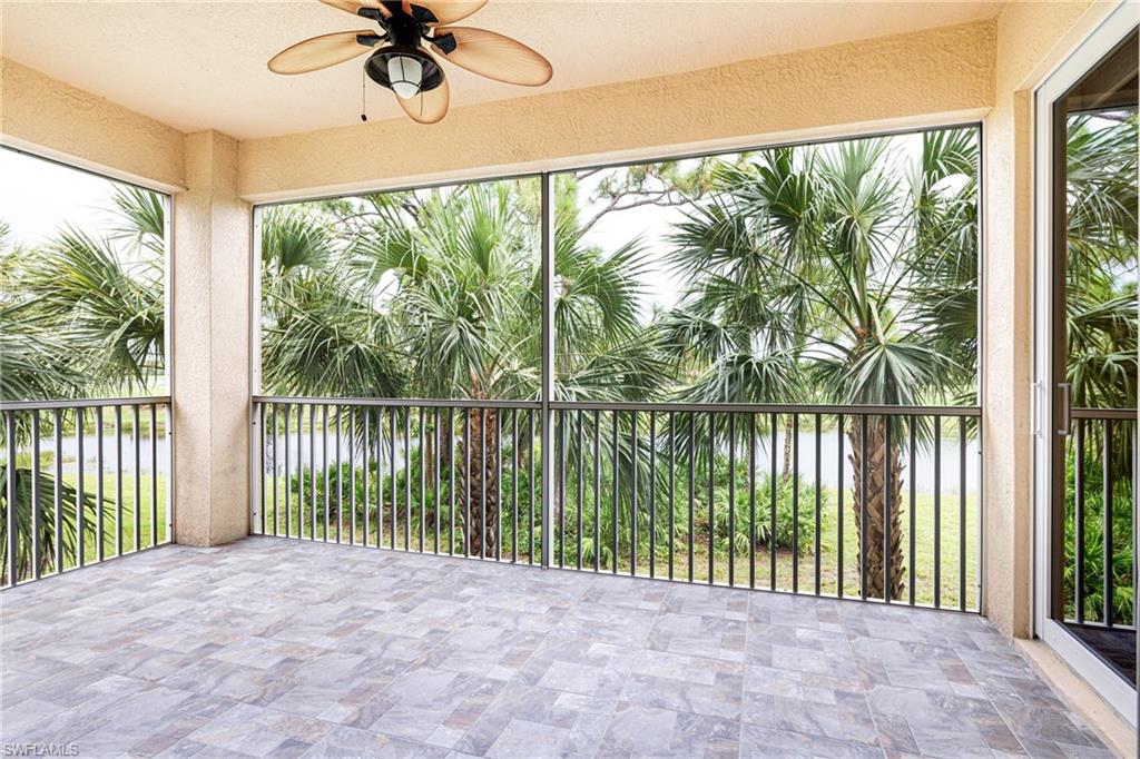 This nicely appointed, well maintained, end unit in the desirable Palazzo neighborhood is offered FURNISHED. Nicely located just a few steps away from the community pool and spa. Shaker cabinets, granite countertops, large center island - nice for entertaining. Refrigerator is brand new, remaining appliances are fairly new. This unit also offers IMPACT WINDOWS and DOORS, a tiled lanai with lovely tropical views of the lake beyond. Quiet and serene. Den has glass enclosed French doors. Separate private storage for your bikes and clubs is located by the elevators. Pelican Preserve is an active award-winning adult community offering lots of activities to keep you entertained. Tennis, Golf, Pickleball, Bocce, Spa services, Restaurants, multiple pools, Staffed Fitness center. Close to RSW International airport, Great restaurants, Beaches, Hospitals and lots of shopping just a few miles away.