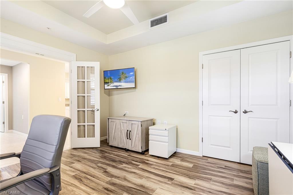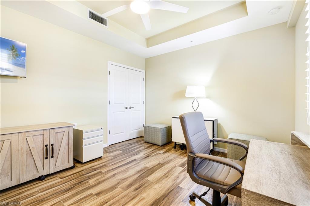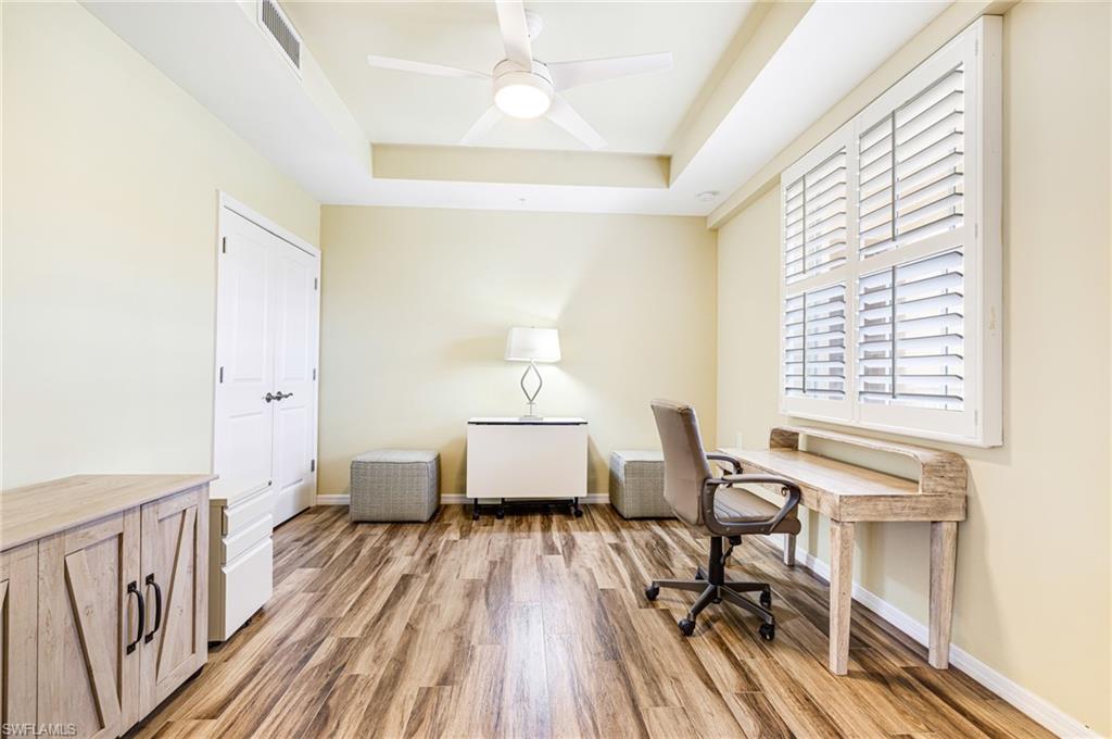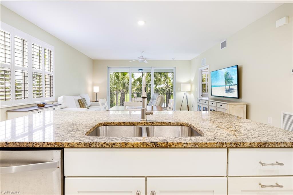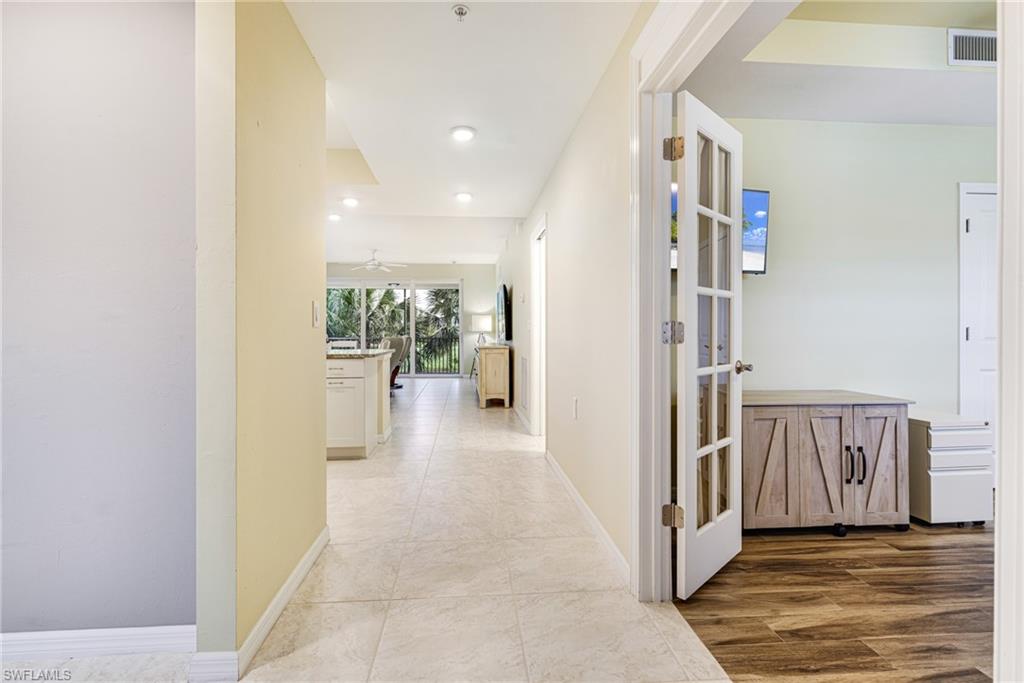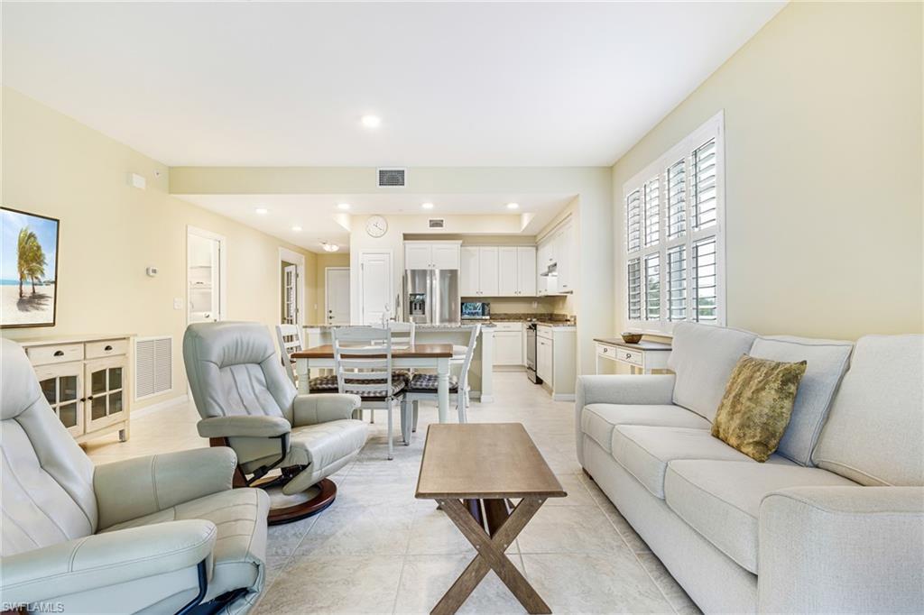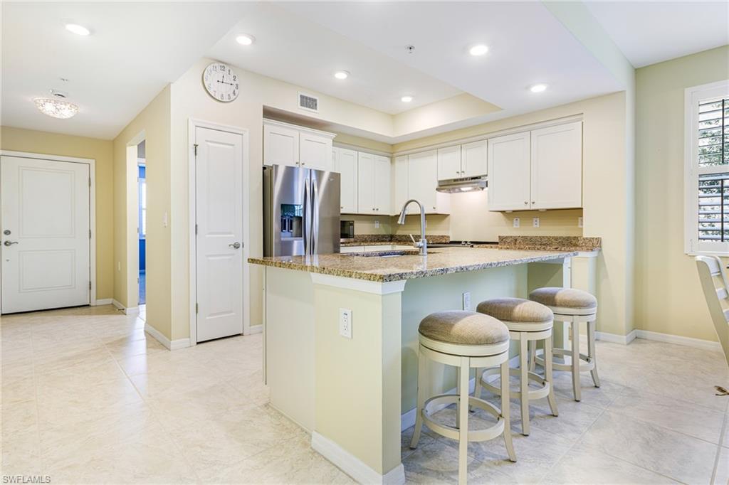 This nicely appointed, well maintained, end unit in the desirable Palazzo neighborhood is offered FURNISHED. Nicely located just a few steps away from the community pool and spa. Shaker cabinets, granite countertops, large center island - nice for entertaining. Refrigerator is brand new, remaining appliances are fairly new. This unit also offers IMPACT WINDOWS and DOORS, a tiled lanai with lovely tropical views of the lake beyond. Quiet and serene. Den has glass enclosed French doors. Separate private storage for your bikes and clubs is located by the elevators. Pelican Preserve is an active award-winning adult community offering lots of activities to keep you entertained. Tennis, Golf, Pickleball, Bocce, Spa services, Restaurants, multiple pools, Staffed Fitness center. Close to RSW International airport, Great restaurants, Beaches, Hospitals and lots of shopping just a few miles away.