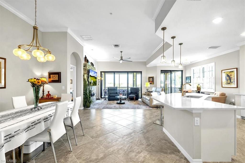 Welcome to your dream home in the prestigious 55+ community of Pelican Preserve! This stunning 2nd floor carriage home is located in one of the newest neighborhoods in Pelican Preserve and boasts its own neighborhood pool just across the street. This home is truly better than new, with numerous upgrades that will leave you speechless. Upon entering, you'll be greeted by a spacious interior with vaulted ceilings and your very own elevator for added convenience. The entire home features 18` tile flooring, with wood and laminate in the bedrooms and den - no carpet! The living room is a focal point of the home, featuring a stone wall entertainment center with a fireplace for ambiance or warmth on cooler nights. The windows are all high impact, and storm smart shutters on the lanai provide added security and protection. The lanai itself is tiled and overlooks a serene pond with beautiful sunsets. The kitchen is a chef's delight, equipped with a new Bosch dishwasher, GE stove with induction cooktop, Samsung refrigerator, pullouts in the cabinets, and cabinets in the pantry. The Quartz island is welcoming gathering area. Plantation shutters adorn the windows throughout the home. The laundry room has upgraded washer and dryer, cabinets, and a sink. Additionally, there is a whole house water system and an EV charger in the garage. The association covers all expenses except electricity and contents insurance. The guest bedroom furniture and lanai furniture are included in the sale. Living in Pelican Preserve offers a wide range of amenities to suit all interests, including pickleball, bocce ball, tennis, fitness classes, social clubs, spa, dog parks, entertainment, theatre, amphitheater, walking trails, and card groups. The community also boasts 27 holes of golf with several membership options available. Don't miss out on the opportunity to make this stunning home yours - schedule a showing today and experience the luxury and convenience of living in Pelican Preserve!