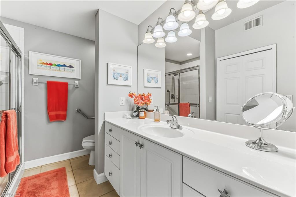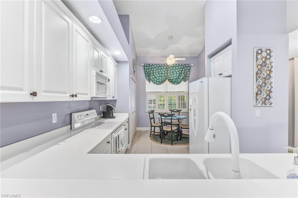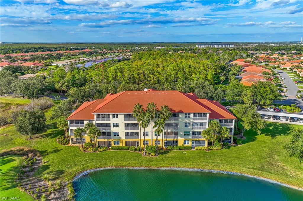 Pelican Preserve, Top-Floor Condo with Breathtaking Views: Welcome to the Florida lifestyle! This top-floor, in Pelican Preserve is an absolute gem. Meticulously maintained and sold completely turnkey furnished, this residence is ready for you to move in and start enjoying the good life. Step inside and be captivated by the stunning views of the golf course and a tranquil lake. The condo features beautiful tile flooring throughout and tasteful designer touches. The kitchen boasts white cabinets with solid-surface countertops, perfect for whipping up your favorite meals. Natural light streams in through elegant Plantation shutters and custom window treatments, creating a bright and inviting atmosphere. The large screened lanai is the perfect spot to unwind, sip your morning coffee, and watch the local wildlife or take in the spectacular sunsets shimmering over the water. This two-bedroom, two-bathroom unit also includes a dedicated, secure storage space for your bikes and golf clubs. Just a short walk from the award-winning Town Center, youu2019ll have easy access to the vast array of amenities Pelican Preserve has to offer. The community features a 27-hole golf course (optional membership), a state-of-the-art fitness center with personal trainers, indoor and outdoor pools, tennis and pickleball courts, saunas, steam rooms, and a woodworking shopu2014just to name a few! Located just ten minutes from the airport and a short drive to Floridau2019s beautiful beaches, this home is also conveniently close to shopping, dining, and hospitals. This desirable unit won't last long, so don't miss your chance to experience the very best of Pelican Preserve.