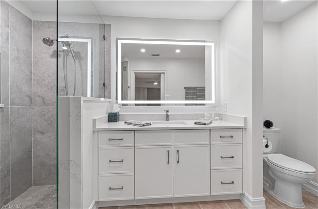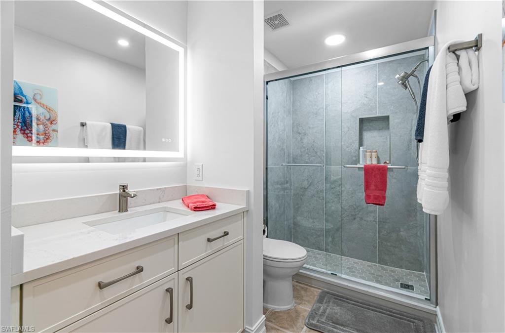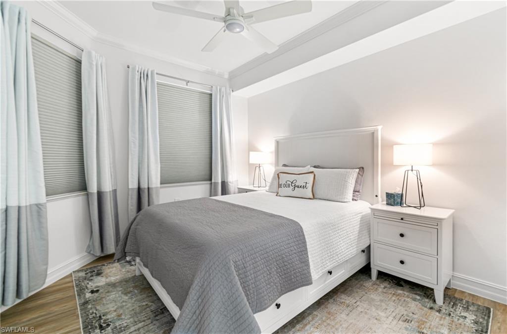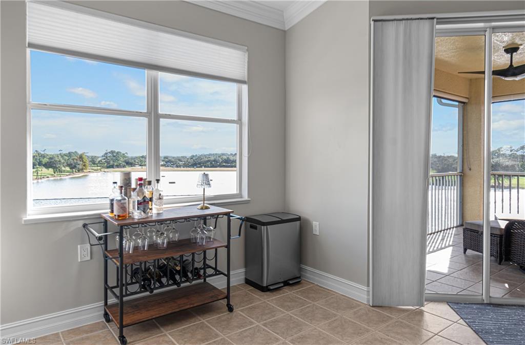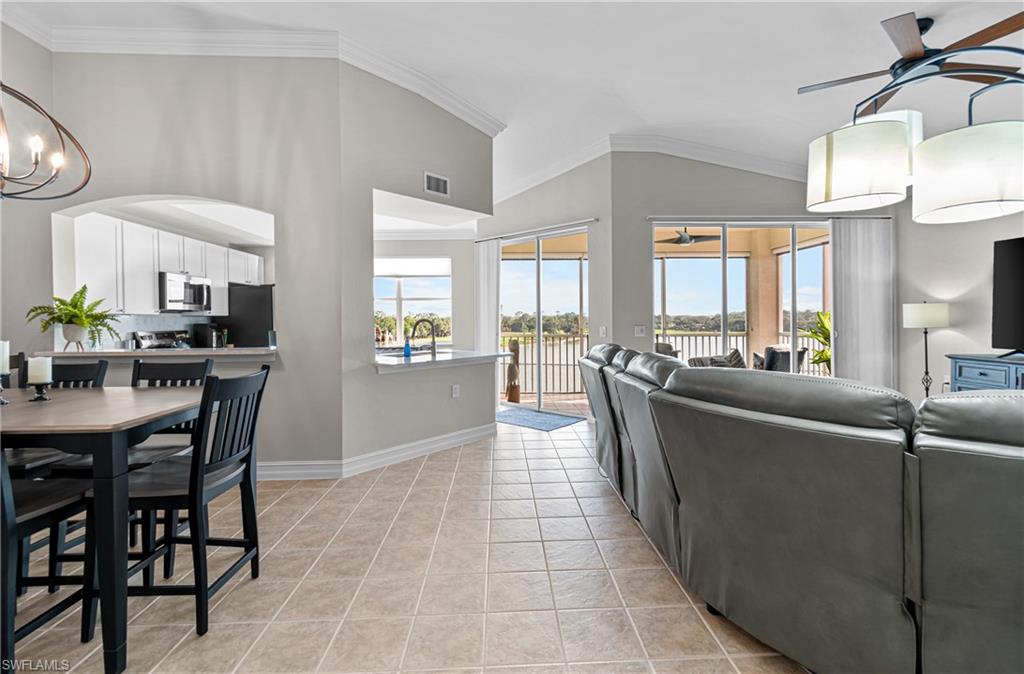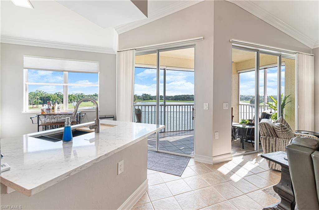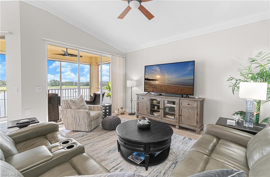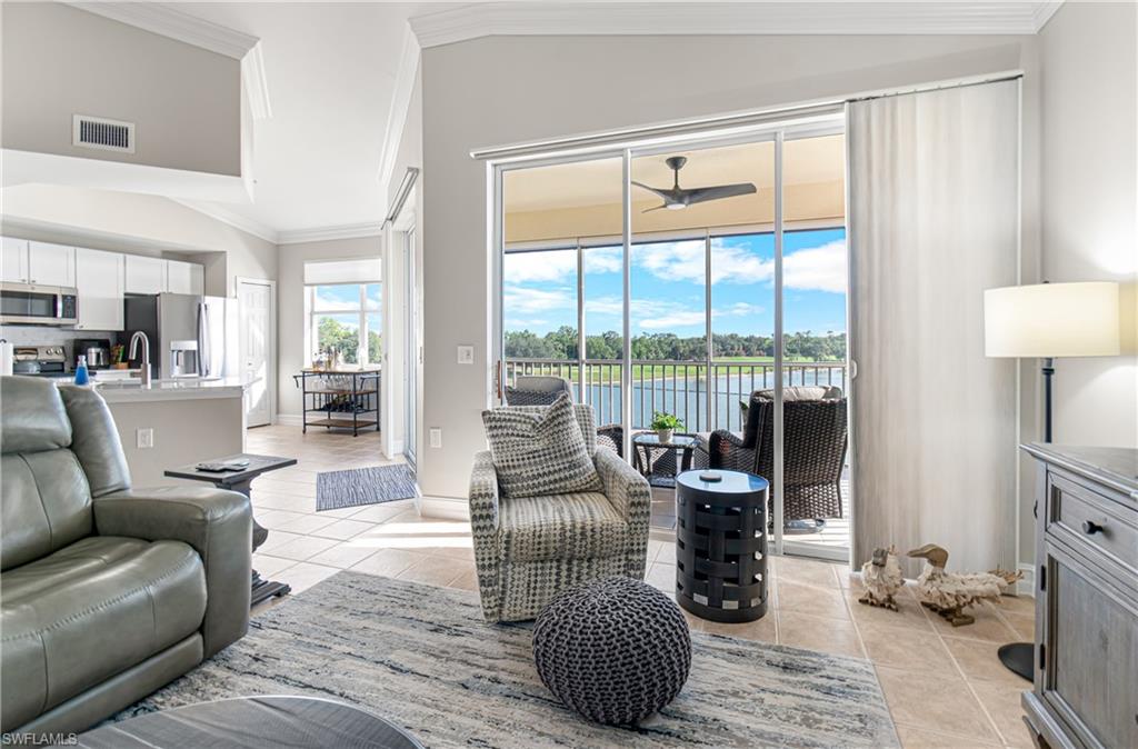 TURNKEY Ravenna 4th Floor `PENTHOUSE` Condo with the Absolute Best View in Pelican Preserve. 180 Degree View of the Best Morning Sunrises & those Amazing S.W. Florida Sunsets! Plus, perfectly located with a Middle of the `Lake Driving Range` with views of the Clubhouse & Fairways on each side of the Lake! LOCATION! LOCATION! LOCATION! AMAZING LAKE VIEW FROM YOUR PENTHOUSE 4TH FLOOR CONDO {ON THE TOP FLOOR W/NO ONE ABOVE YOU & AN END UNIT W/ TOTAL PRIVACY ON ONE SIDE } PLUS LOCATED IN PELICAN PRESERVE ONE OF THE TOP 55+ COMMUNITIES IN THE U.S. Totally Open Floor Plan with Vaulted Ceilings! You truly feel like you're in a Single Family Home with the High Ceilings! TONS of UPGRADES: (1.) FURNITURE: All Furniture is `High-End` & was purchased @ Haverty's Fine Furniture=$32,000. (2.) KITCHEN REMODEL: Countertops, Backsplash, Cupboards & Sink Taps=$21,000. (3.) NEW APPLIANCES: (Refrigerator, Stove, Microwave, Dishwasher, Washer & Dryer=$5,800. TOTAL UPDATES =$58,800. LIKE BUYING A NEW HOME! A.C. with Bacteria Filtration System & Hot Water Heater are 2018. Master Bedroom has a King Bed & Luxury Vinyl Plank=NO CARPET! QUARTZ COUNTERTOPS throughout the Home plus SOFT-CLOSE DRAWERS throughout the Home! 70` T.V. for your Entertainment in the Living Room! Laundry Room has LG Washer & Dryer about 1 1/2 years old plus White Cabinets. The Lanai has Tile Flooring & Sun Shades! Come & See this Beautiful Home in Person so You can see for Yourself why this is the Perfect Home For YOU! WELCOME TO PARADISE! YOUR FUTURE HOME IS LOCATED IN PELICAN PRESERVE ONE OF THE TOP 55+ COMMUNITIES IN THE U.S. LOCATED NEAR SWFL INTL. AIRPORT, SHOPPING & THE BEACHES!