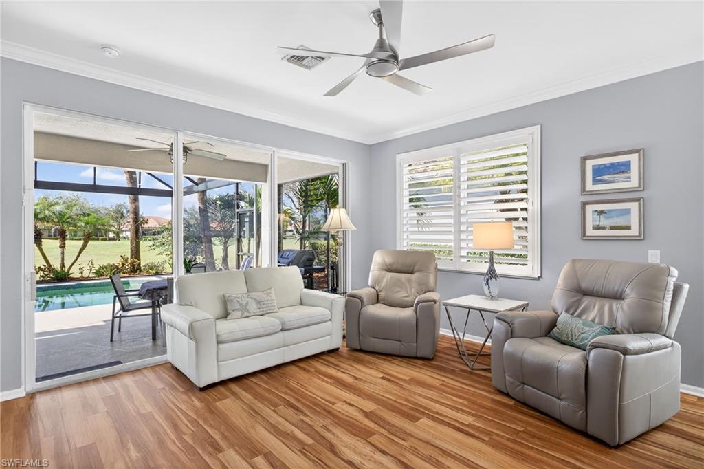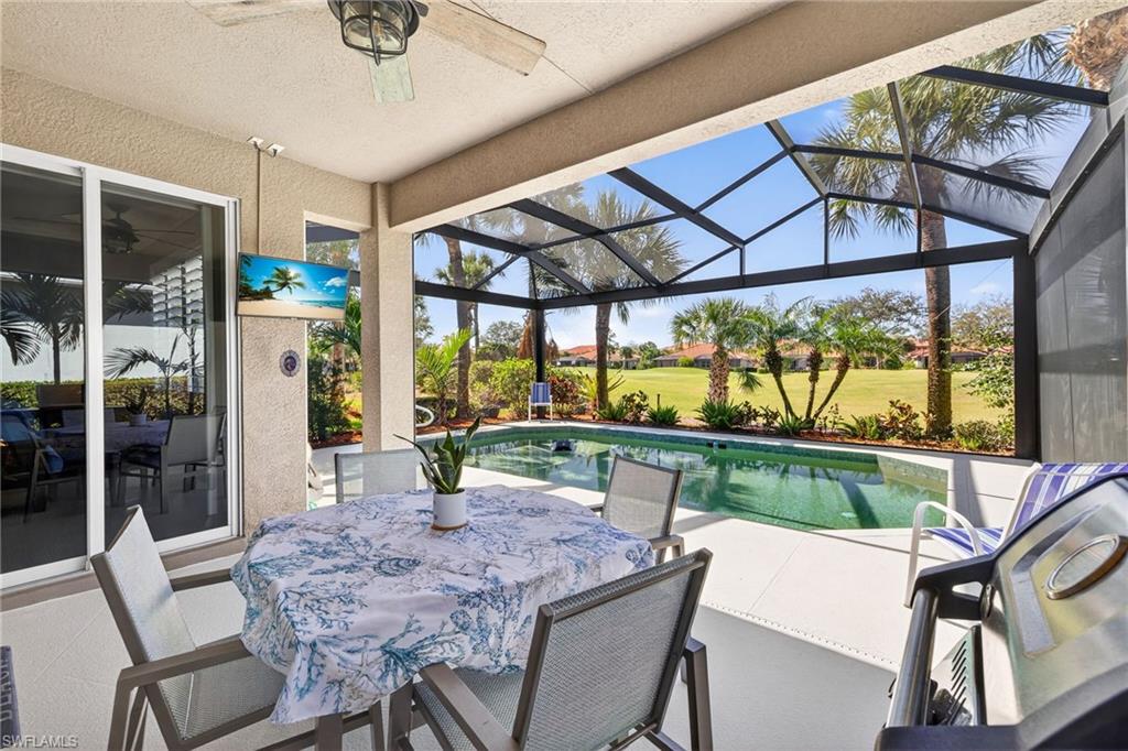 Welcome to effortless luxury living in Trieste at Pelican Preserve, where this exceptional single-family residence is offered turnkey with upgraded designer furnishings and finished to the highest standards.Over 100k invested in this completely updated home, thoughtfully curated for comfort, style, and peace of mind. The open-concept living space flows seamlessly to the outdoors, where a private heated saltwater pool overlooks panoramic golf course views, creating a stunning backdrop for everyday living and elegant entertaining.This home is equipped with natural gas, a whole-home generator, and premium upgrades throughoutu2014delivering both luxury and reliability. Every detail has been carefully selected, from the high-end finishes to the furnishings that elevate the home into a true move-in-ready retreat, new roof, A/C, panoramic pool screen, crown molding, plantation shutters, and guest room Murphy bed add to this maintenance free move in ready residence. Located in one of Pelican Preserveu2019s most desirable neighborhoods, Trieste offers a refined residential setting with access to world-class amenities, championship golf, dining, wellness, and an active lifestyleu2014all within a beautifully maintained, gated community.This is turnkey living at its finestu2014ideal for seasonal or full-time enjoyment with no compromises.
