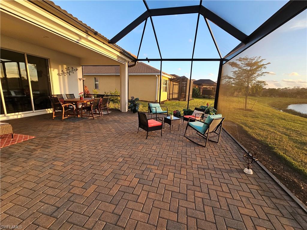 Why are you still in the snow?? Get out of the cold and come to sunny Florida for the Holidays with this HOLIDAY SPECIAL! Pet Friendly and 2 King beds. Can NOT beat this picture lake view!! Voted one of top 55+ communities in the country. Beautiful Furnished 2 Gorgeous bedrooms + den, 2 Bathroom. 2 Car Garage. Kitchen has Granite Countertops, Large center island, Stainless steel appliances, Separate dining area. Carpeted bedrooms Large Master Bedroom with king bed. Master Bathroom includes dual sinks, roman shower & large walk in closet. Guest bedroom with king bed. Den has desk and French doors with futon. Enjoy the tranquil sounds and gorgeous lake and preserve views from the extended paver lanai with picture screen and pocket sliders from living room and extra patio dining furniture for entertaining or peaceful relaxation. Home is meticulously kept. Pelican Preserve offers community additional 70,000 sq ft. Town Center 2 outdoor pools, indoor lap pool & walking track, pickle ball, tennis, spa, fitness center, 2 restaurants, craft, sewing, woodworking room, billiards room, theater, exercise classes bingo nights, card rooms, outside amphitheater, nature walk with preserve boardwalk & more. Availability November Prorated $2400 per month plus taxes and fees, utilities included. December $4500 or April 2026 $5000 per month plus taxes and fees includes utilities. Rental includes electric w/cap, cable & internet, tenant to pay 11.5% tax. Go swimming instead of skiing!!