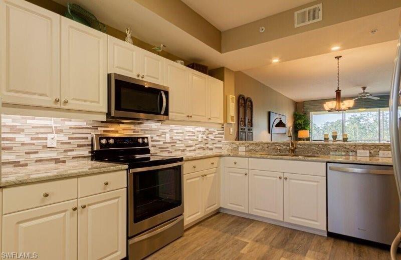 FULLY FURNISHED - Beautifully decorated 2 Bedroom 2 Bath condo with fantastic views located in a prestigious 55+ Pelican Preserve community that offers luxury lifestyle community.Rent includes WIFI, WATER AND CABLE.Completely renovated and upgraded condo comes with new appliances, new ceiling fans, new kitchen backsplash, new sink, faucet, new toilets, under cabinet lighting, new flooring, new furniture, beautifully decorated.Pelican Preserve is the Premier 55+ socially active community and is centrally located to shopping, grocery stores, sports, both Minnesota Twins and Boston Red Sox are close by for spring training, facilities also include, tennis, pickleball, 2 outdoor and one indoor pool, outdoor bar/restaurant plus indoor dining restaurant, theater, wood-working shop, cardio gym and separate exercise building for classes, lounge, library, internet cafe, numerous social activities and clubs, billiards room and card rooms, indoor walking/running track, walking paths, dog parks, baseball/softball field and much more.