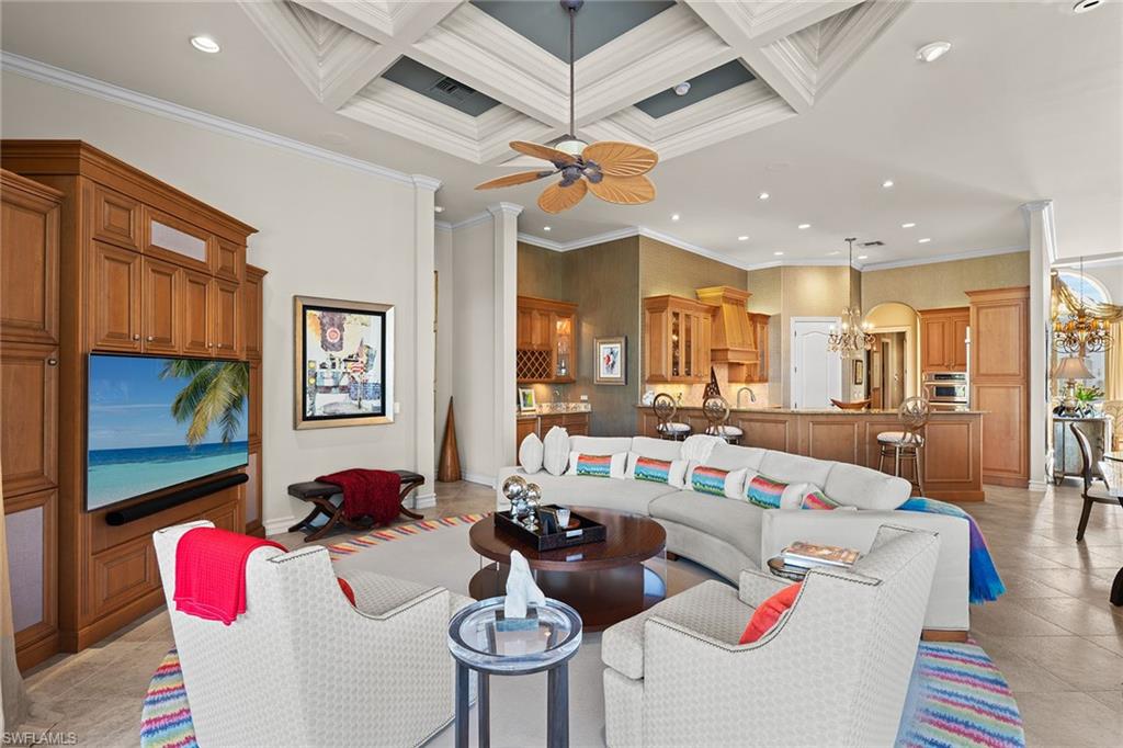 Step into this beautiful, custom-designed Harborside grand estate home in the Terabella neighborhood of Renaissance. On a magnificent half-acre lot, this home features an impressive long view of the lake and hole #9 on the Arthur Hills championship golf course. This breathtaking residence showcases suburb design and craftsmanship and offers an expansive open floor plan. As you enter the home, you are greeted with an abundance of natural light and views from every angle. The living space flows ideally from the gourmet kitchen to the outdoor oasis, creating a wonderful indoor/outdoor lifestyle. The gourmet kitchen features custom wood cabinetry, luxury stainless steel appliances and granite countertops. The adjacent dining area and breakfast bar ensure effortless hosting, while the temperature-controlled 400-bottle wine cellar is a connoisseuru2019s dream. Each of the spacious bedrooms has been thoughtfully designed for privacy and comfort, offering en-suite baths. The oversized primary suite is a sanctuary, boasting golf course views, a spa-like en-suite bath with a soaking tub, dual vanities and a walk-in shower. Step outside to discover an unparalleled outdoor retreat. The expansive lanai is a showpiece, featuring a resort-style pool, oversized spa and serene water features, all positioned to take in the breathtaking views. The outdoor kitchen and dining area provide the ultimate setting for entertaining, while the covered lounge space offers a tranquil escape. Additional features include an expansive three-car garage, whole-home generator for peace of mind, newer roof and paved drive, Sonos sound system, upgraded landscaping with added lighting and two new HVAC units. The Renaissance lifestyle offers an Arthur Hills championship golf course with golf memberships available immediately, a lavish resort-style pool and pavilion, a children's play area, a full-service spa and fitness center, six red clay tennis courts, two pickleball courts and two bocce courts.