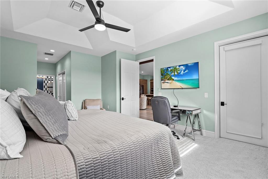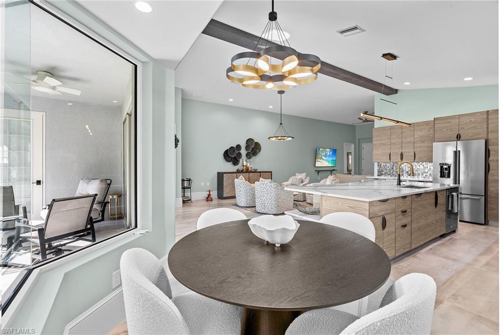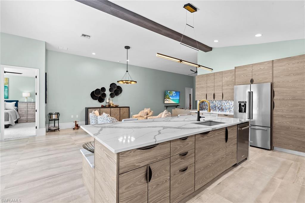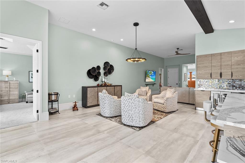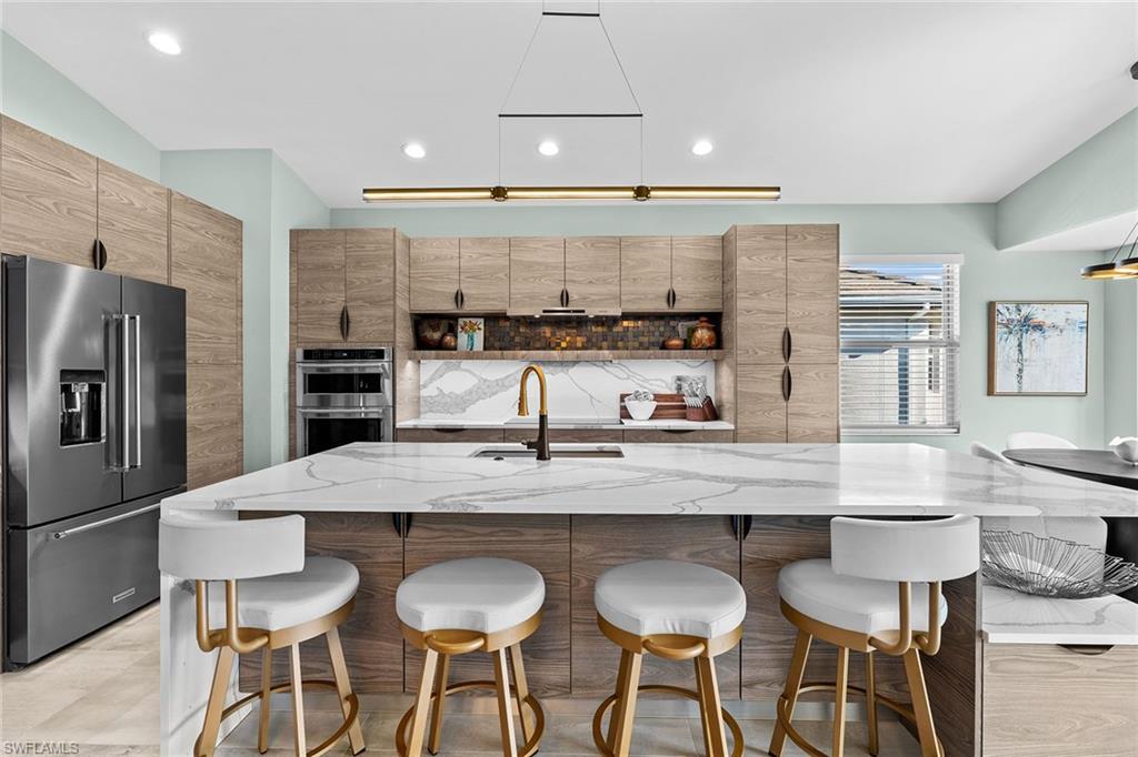 Experience unparalleled elegance in this meticulously reimagined residence in the Triana neighborhood of Renaissance. This spectacular property offers three spacious bedrooms, three exquisitely remodeled baths, and a sophisticated, versatile office space. Upon entry you are welcomed into a gorgeous foyer featuring a private elevator. The expansive open concept living area accented by designer selections and luxury upgrades features soaring ceilings, multiple seating areas and an oversized great room layout. The gourmet kitchen is an entertainer's dream, showcasing quartz countertops, bespoke cabinetry, luxury appliances and an oversized waterfall island. The primary suite, complete with a lavish en-suite bath features a dramatic walk-in shower, dual vanities adorned with custom cabinetry, and exquisite modern tile work. Each additional bedroom and bath continues the designer theme with meticulous attention to detail and luxurious appointments throughout. Embrace indoor-outdoor living on the private lanai, offering serene, sweeping views of the lush green golf course and lake. This immaculate residence combines exceptional craftsmanship with modern luxury. The Renaissance lifestyle offers an Arthur Hills championship golf course with golf memberships available immediately, a lavish resort-style pool and pavilion, a children's play area, a full-service spa and fitness center, six red clay tennis courts, two pickleball courts and two bocce courts.
