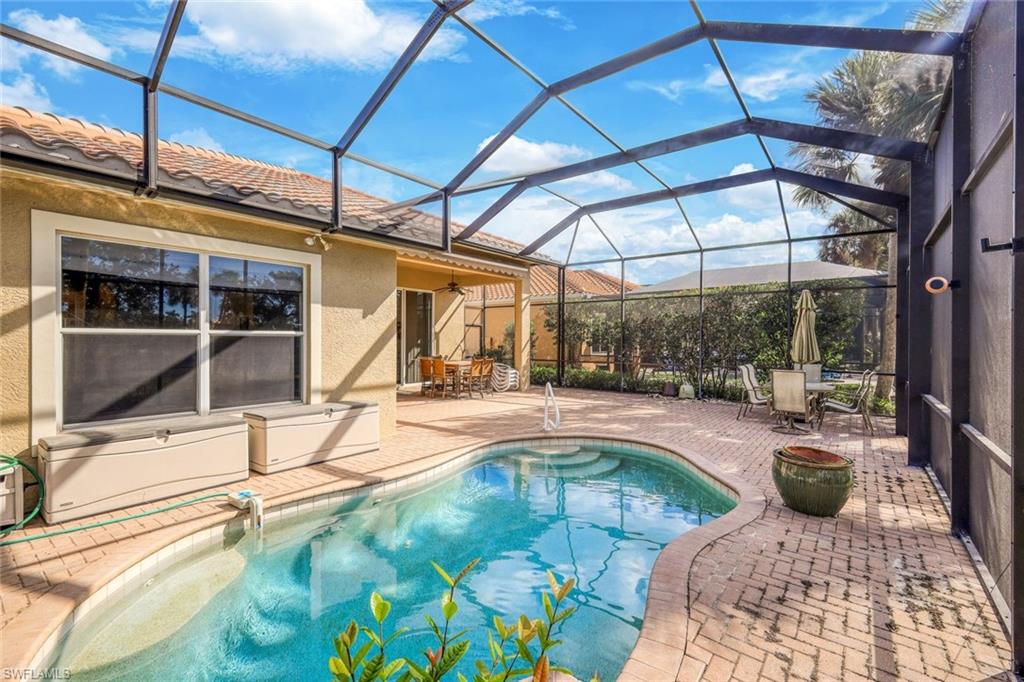 Nestled in the heart of Southwest Florida, this exquisite home offers a lifestyle of unparalleled luxury and serenity. Imagine waking up to enchanting lake views and spending your days exploring the community's array of amenities including pickleball, tennis and bocce courts, as well as fishing and kayaking adventures. For those who seek exclusivity, optional memberships at the distinguished Shadow Wood Country Club and the private Beach Club await. Inside, the home boasts state-of-the-art Kitchenaid appliances, and upgrades like a new roof and a solar system, which underscore a commitment to modern elegance and sustainability. Step outside to your personal paradise featuring a glistening pool and a serene water feature, both perfectly complementing the breathtaking lake views. Convenience is at your fingertips, with premier shopping at Coconut Point Mall and Gulf Coast Town Center just a stone's throw away, and effortless travel connections via RSW International Airport. Whether you're seeking relaxation or adventure, this property promises a harmonious blend of both in a friendly, gated community setting. Paradise Awaits...