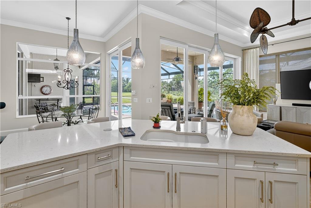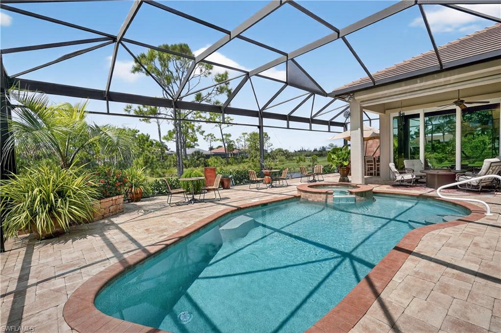 SPECTACULAR $1,000,000 SHADOW WOOD PRESERVE LAKEFRONT-FAIRWAY VIEWS! THIS FORMER MODEL HOME IS STUNNING & COMPLETELY REMODELED ($650,000+/-) 4 BEDROOM, DEN, 3.5 BATH HOME DEFINES CLASS, BEAUTY AND LUXURY, NO EXPENSE WAS SPARED. Enter the home to soaring 14` volume ceilings, all tray and crown molding finishedu00a0 Home has all tile floors throughout for ease of maintenance. MOST ALL WINDOWS AND SLIDERS ARE `IMPACT` STORM RESISTANT AND ADDITIONAL STORM SAFETY FOLLOWS THROUGH WITH THE REAR LANAI AREA HAS ALL KEVLAR `STORM RESISTANT` ELECTRIC ROLL DOWN HURRICANE SCREENS AND OWNER HAS ALSO NOW ADDED ADDITIONAL STORM SURGE PROTECTION FOR ADDED SECURITY. `CHEFS` kitchen with level 5 granite tops, all custom wood cabinetry, high end BOSCH steel appliances, an induction cook-top, wall oven, warming drawer and pop up electrical/charger outlets are just some of the top of the line finishes you will find here and a walk-in pantry. A breakfast bar and breakfast nook with views of the lanai gives you plenty of seating for guests or family. MASTER BEDROOM HAS SOARING 14' TRAYED CEILINGS, HIS & HERS WALK-IN CLOSETS, DUAL GRANITE VANITIES, SOAKING TUB AND FLOOR-TO-CEILING GLASS AND TILE WALK-IN SHOWER. This expansive Master Bedroom, opens to the lanai, has added additional space for an in bedroom office, work area, or a quiet refuge for relaxing or reading. MODEL HAS SPLIT BEDROOM PLAN FOR ADDED PRIVACY FOR YOU AND ANY GUESTS! THE EXTENDEDu00a0 PAVER POOL DECK AND LANAI HAS SOOTHING VIEWS FROM A NEW `PICTURE WINDOW` SCREEN ENCLOSURE. The expansive lanai, with picture screen enclosure offers plenty of room for time in the sun or relaxing under cover. THE ROOF IS 5 YEARS NEW, A/C'S ARE 2 YEARS NEW AND VERY LOW ($2000) ASSIGNABLE FEMA INSURANCE.The westerly view makes this lanai the perfect place to be for watching the sunset after a day at the beach or on the golf course. An outdoor bar helps make this the place to entertain! Shadow Wood Preserve is a low density community designed to preserve the natural beauty of southwest Florida. SHADOW WOOD COUNTRY CLUB is a member owned club with 3 Championship Courses and two Club Houses. The Preserve is an Arthur Hills course with Robert Cupp designs on the other two courses. Shadow Wood Preserve community amenities include pickle ball, tennis, fitness trail, fishing pier with canoe and kayak launch on the HISTORICAL MULLOCK CREEK. This community is close to shopping and fine dining and minutes from RSW airport. You wonu2019t want to let this one get away! HOME COMES WITH A COMPLETE ONE YEAR `HOME WARRANTY` FOR TOTAL BUYER COMFORT! DO NOT MISS THIS EXCEPTIONAL HOME: IT IS A PREMIER GROUP `BEST VALUE` COUNTRY CLUB HOMEu00a0 PROPERTY!