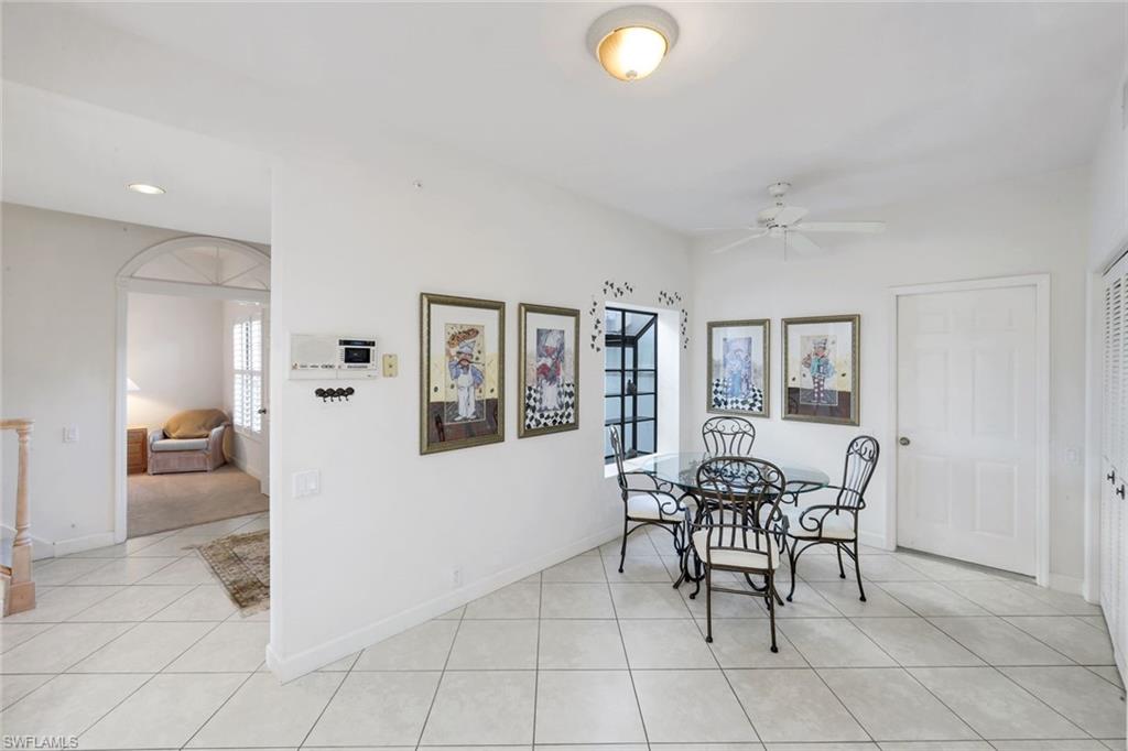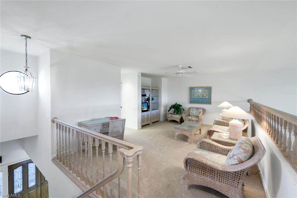 Western Rear View- Light Bright Aberdeen Model 2962 Sq Ft. Of Air Conditioned Living! Charming Colorful Decor. Plantation Blinds and Professional Window Treatments. Wood Burning Fireplace. Furnished. Ready to Enjoy! 4 Bedroom, 3 Bath, 2 Full Bath, Plus 1 Half Bath, Spacious 2 Car Attached Garage! Lovely Bobcat Golf Course Views. Tropical Breezes Carry From The Double Front Door to the Rear Lanai. Lanai is Tiled & has is Screened with Exit Door, This Residence is Being Sold Turnkey! Great Room Floor Plan with Cathedral Ceilings, Sliding Doors Pocket to the Lanai. Living Family Dining Combination. Built In Wet Bar with Storage. Roomy Eat In Kitchen with Ample Counter Space, Pantry and Storage Cabinets. Laundry- Washer & Dryer Are Located in The Kitchen Closet. Stainless Steel Appliances. Primary Suite is Located On the First Floor Complete with a King Bedroom Set- Spa Bathroom, Dual Sinks Raised Cabinetry, Storage, Adjoining Walk In Closet. Large Tiled Step In Shower. SPA Bath Tub. First Floor 4th Bedroom Can be used as a Den/Office. Spacious 2 Car Garage has a Kitchen Entry Service Door. Walk to The Pool and Spa. COA carries Master Flood Policy. HOA Fee included in COA- H/W Heater 2024, Sq D Breaker Box, A/C 2024- New Tile Roof-Fresh Paint & Landscaping. Rear Western Exposure. Membership In the Forest Country Club is Optional- Currently Memberships Available. The Forest Community Has Lighted Sidewalks, Natural Lakes, Wonderful Greenspace- No Hidden Fees! Bring Your Bike! Please Note: Some Amenities Listed Require Membership in the Country Club. Community Children's Park, Bike to Lakes Park for Market Day. RSW Airport Just 15 Min, Sanibel 20 Min, FMB 25 Min. Restaurants and Shopping Everywhere! Golf, Tennis, Pickleball, Bocce, Cards, Wine Club and More! Our Golf Courses Are Audubon Certified! Wildlife Everywhere! Come Live & Play In The Forest! Walk to the Country Club!