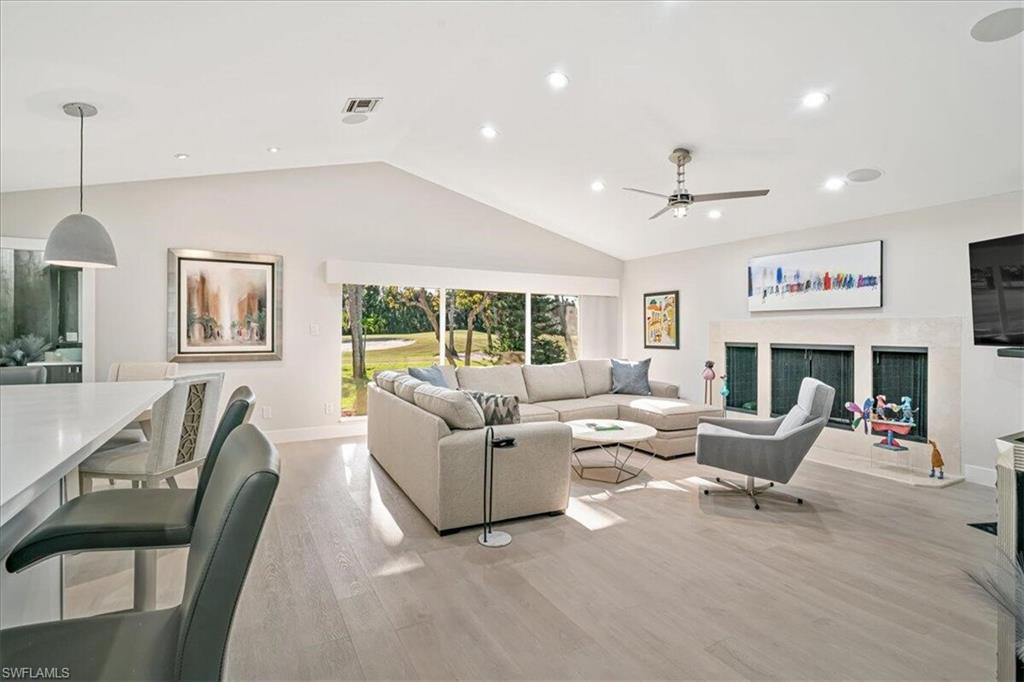 1st time offering and a must see! Located in South Fort Myers, in The Forest. 5 bedrooms, 3 full and 1 half bath. The primary suite has 2 walk-in closets with built ins, primary bathroom has soaker tub and huge shower with multiple shower heads. Double french door entries on 2 bedrooms which also can be used as offices. Home was completely renovated in 2023. Full house generator installed 2024, wood burning fireplace, gourmet kitchen with 2 pantries, large wet bar with refrigerator. New solar heated pool (2023), outdoor kitchen with 2 refrigerators. An unobstructed golf course view and your own personal backyard putting green and 2 chipping areas. Sustained 2022 Hurricane Ian damage, NO DAMAGE FROM HURRICANES HELENE AND MILTON (2024).The Forest Country Club memberships are optional. The Forest has been voted `Best of Golf & Tennis` by Gulfshore Life for the past 6 years in a row (2019-2024). Sidewalks, Playground, 2 Attended Gate Entrances, 15 Minutes to RSW Airport.