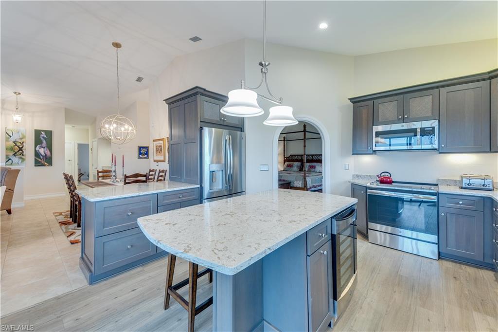 THE FOREST COUNTRY CLUB--THE HERON COACH HOMES. AMAZING LONG VIEWS OF GOLF COURSE & LAKES! TASTFULLY APPOINTED, DESIGNED TO PROVIDE THE OPTIMUM IN ESPANSIVENESS & EFFICIENCY. 2ND FL. 3BED/2BATH//1956#FT.LIV/2594#FT.TOTAL + GARAGE. IT HAS BEEN TOTALLY UPDATED WITH HIGH END CABINETRY, QUARTZ COUNTERS, FAUCETS, FIXTURES, APPLIANCES, DOORS, MOLDINGS & FLOORING THROUGH-OUT. THE KITCHEN HAS BEEN RE-DESIGNED--NOT ANOTHER ONE LIKE IT. ALL WINDOWS ARE HURRICANE RATED + Elec. HURRICANE SHUTTERS FOR LANAI. FURNITURE & FURNISHINGS ARE OF HIGH QUALITY, PLANTATION SHUTTER WINDOW COVERINGS, ALL UPDATES DONE IN 2020. ONE OF THE BEST VIEWS IN THE FOREST LOCATED ON THE BOBCAT HOLES 7,8,9. THE HERON HAVE TILE-LIKE METAL ROOFS WITH 40YR WARRANTY. CONDO WAS RE-PLUMBED IN 2018. THE HERON HAS HIGHER ELEVATION & DID NOT FLOOD DURING IAN. IT HAS ONE OF THE LOWEST QTRLY FEES IN THE FOREST(Inc. hazard, hurricane & flood Insurance on buildings). THE FOREST C.C. OFFERS (2) CHAMPIONSHIP GOLF COURSES, ACTIVE TENNIS/PICKLE BALL CLUB,BOCCE,FITNESS CENTER, DINING, OUTSIDEBAR/GRILL. THE CLUB IS OPTIONAL MEMBERSHIP, NOT MANDENTORY. Close To RSW AIRPORT, Gulf Coast Mall, Gulf Coast University, Restaurants (5 min.). Lakes Park (5 min.) Beaches & Sanibel Island (20 min.),