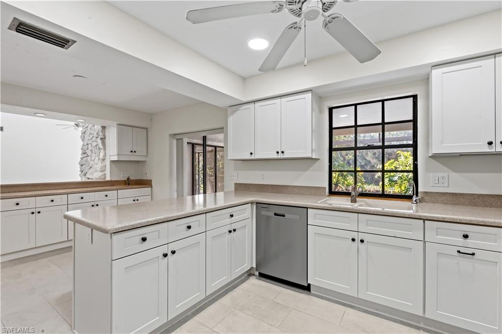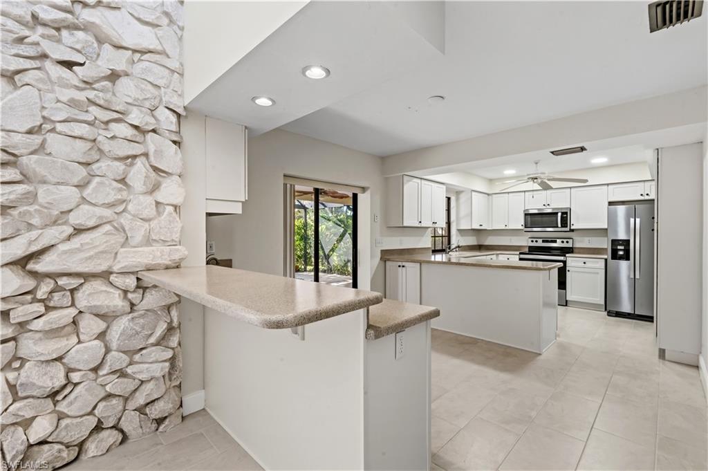 Welcome to one of the sweetest homes in the highly sought-after Forest Country Club! This beautifully maintained 3-bedroom, 3-bath residence offers a rare and flexible layout featuring two spacious primary suites, perfect for guests or multigenerational living.Lovingly cared for by the same owners for 27 years, this home reflects true pride of ownership with thoughtful updates throughout. Step inside and experience an exceptional sense of openness and airiness, where soaring volume ceilings and expansive sightlines create a truly uplifting living environment. The light-filled great room concept seamlessly connects the living, dining, kitchen, and foyer spacesu2014ideal for both everyday living and entertaining.A dramatic floor-to-ceiling granite fireplace anchors the space, while a series of large clerestory windows invite natural light to pour in from above. These elevated windows not only enhance privacy but also draw the eye upward, emphasizing the homeu2019s lofty architectural design and creating a bright, open ambiance that evolves beautifully throughout the day.The kitchen features stainless steel appliances, water filtration, and a cozy breakfast bar/nook, all flowing effortlessly into the main living areas. Recent updates include wide plank tile flooring, a new lanai cage, a 4-ton Carrier AC (15.2 SEER) with UV light fresh air system, and a 50-gallon water heater. The roof was replaced in 11/2017, the AC very recently--11/2025, patio cage--2023, garage door--last year. The home also has outdoor security lights that are sensor activated for evenings and night time. Outside, enjoy lush tropical landscaping, a long driveway, and a spacious 2-car garage. Set back from the street, the home offers wonderful curb appeal with a welcoming entry and gracious foyer.Located in The Forest, residents enjoy low HOA fees of just $3,100/year and the option to join a premier club featuring:Two 18-hole championship golf courses (The Bear & The Bobcat),Tennis and bocce programs,Restaurant and tiki bar,Putting green and driving range,Fitness center and pro shop,Bonus: Assumable flood insurance at $3,341/year!This light, bright, and airy home is truly a joy to showu2014and an even greater joy to call home.