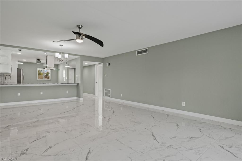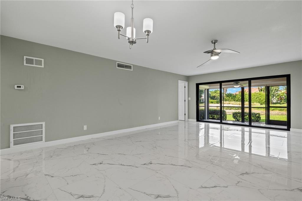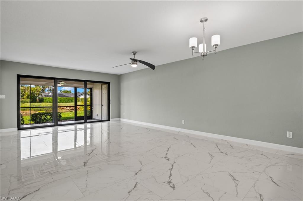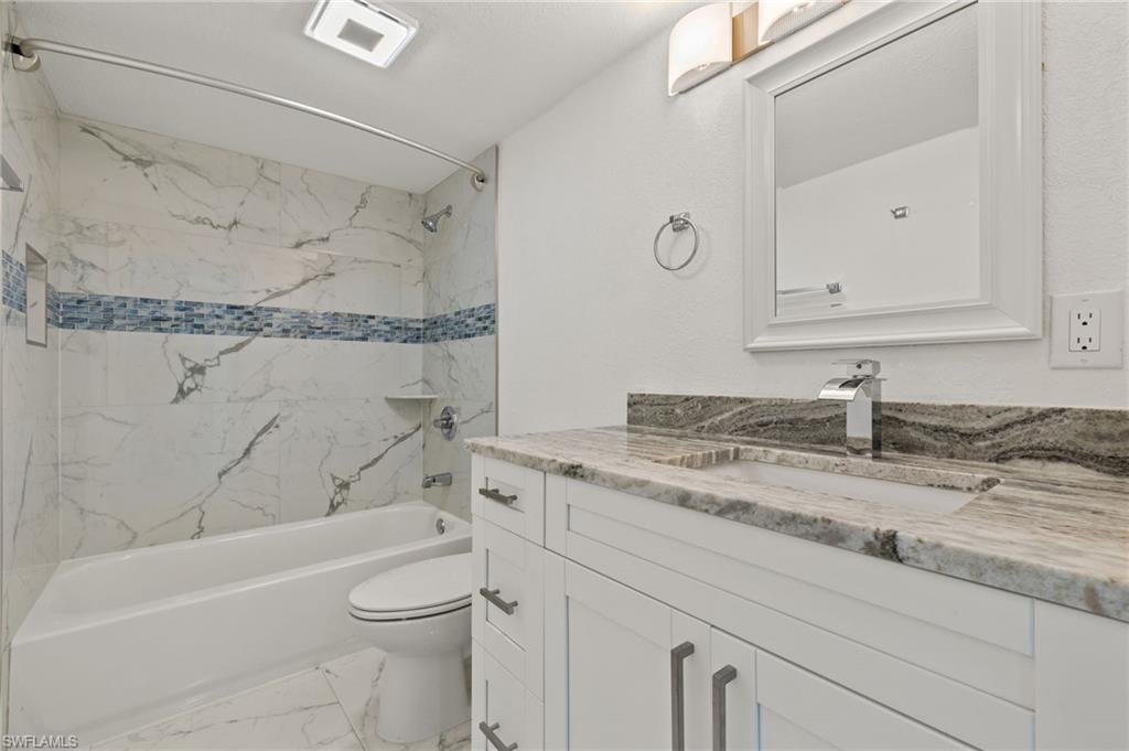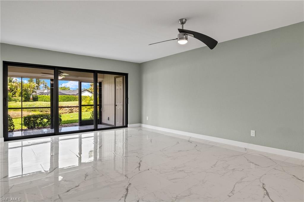 Indulge in the tranquility of this completely refurbished 2 bedroom, 2 bath end unit condo. As you step inside, you'll be greeted by a charming open-concept living space that flows seamlessly from the kitchen to the living room and dining area. The kitchen is fully equipped with stainless steel appliances, double shaker cabinetry and granite countertops. Impact rated sliding glass doors opens up to the screened in back patio, in which you can enjoy boasting views of the beautiful golf course within the sought-after The Forest community. Nestled just off US 41, this condo's prime location ensures effortless reach to Southwest Florida International Airport, FGCU, I-75 and a plethora of shopping and dining options.