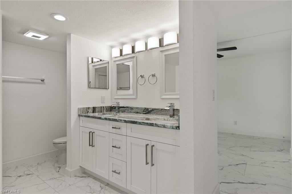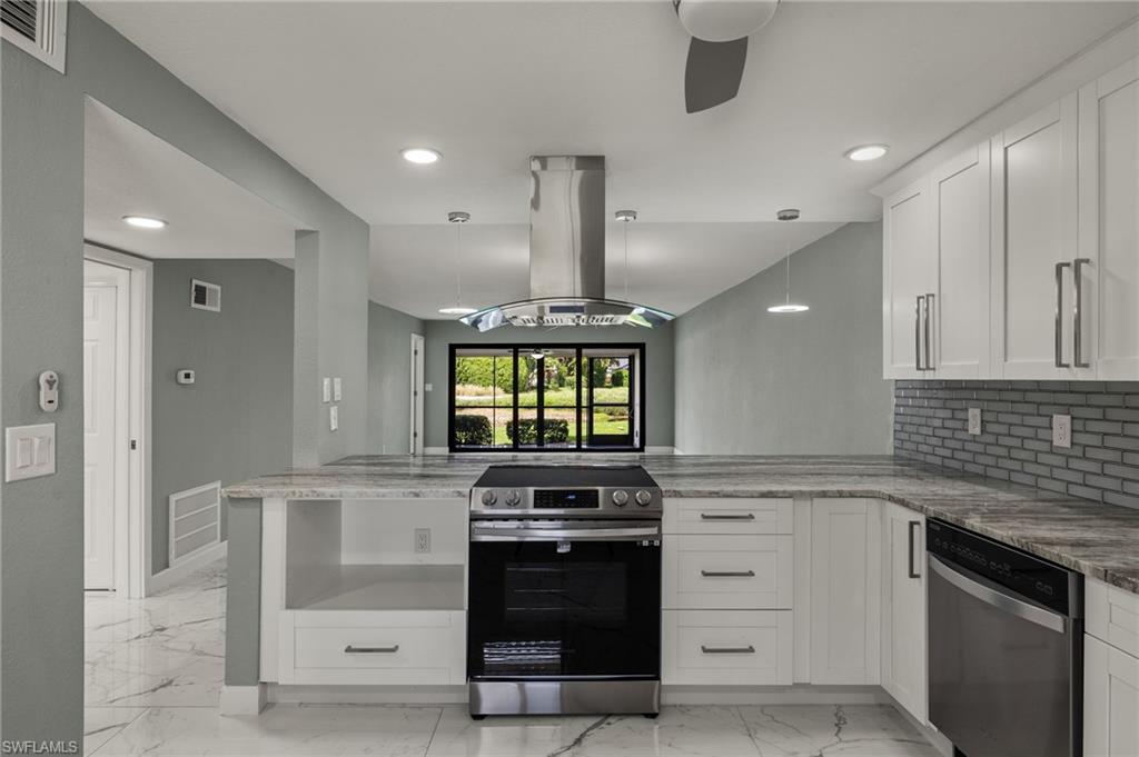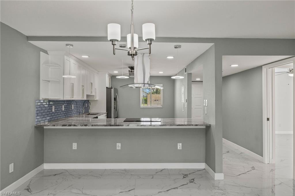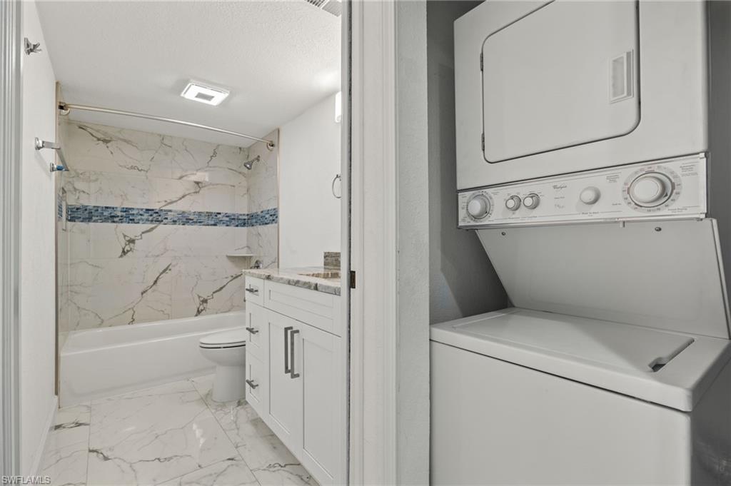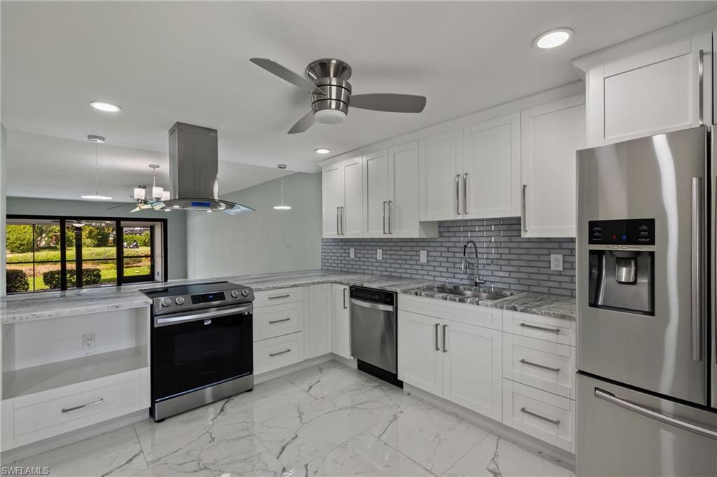 Indulge in the tranquility of this completely refurbished 2 bedroom, 2 bath end unit condo. As you step inside, you'll be greeted by a charming open-concept living space that flows seamlessly from the kitchen to the living room and dining area. The kitchen is fully equipped with stainless steel appliances, double shaker cabinetry and granite countertops. Impact rated sliding glass doors opens up to the screened in back patio, in which you can enjoy boasting views of the beautiful golf course within the sought-after The Forest community. Nestled just off US 41, this condo's prime location ensures effortless reach to Southwest Florida International Airport, FGCU, I-75 and a plethora of shopping and dining options.