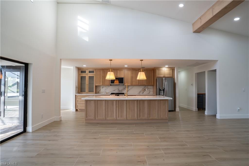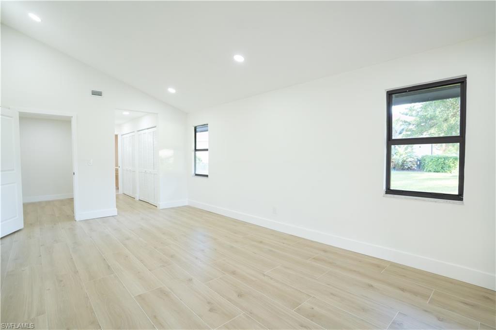 Step inside this freshly remodeled 3-bed, 2-bath pool home with sweeping golf-course and sunset views. Every inch has been updated! Sleek porcelain tile floors, and impact windows and doors for your comfort and peace of mind. The open layout transitions seamlessly to the screened pool area, where lush fairways and radiant sunsets create your daily backdrop. Just minutes from US41, abundant dining options, and shopping centers, with the gated community entrance positioned right across from your home. Featuring a newer roof (2022) and remarkably low HOA fees despite a brand-new championship golf course in your backyard, this home brings together elegance, value, and lifestyle in one standout package. Ready to relax, entertain, and enjoy the serene setting? This Fort Myers gem awaits you.