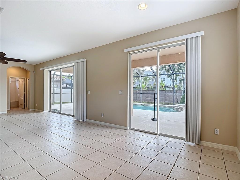 Welcome to 2798 Via Piazza Loop, a spacious and energy-efficient 5-bedroom, 3-bath pool home offering over 3,200 square feet in the desirable Promenade West at The Forum in Fort Myers. Built with concrete block construction and a tile roof, this two-story residence combines quality craftsmanship with modern comfort.The main floor features a formal dining room, a den/office, and a guest bedroom with a full pool bath, providing flexible living options for guests or multi-generational households. The open-concept kitchen and family room are ideal for entertaining, showcasing granite countertops, wood cabinetry, stainless-steel appliances, a breakfast bar, and a walk-in pantry.Upstairs, youu2019ll find the primary suite, three additional bedrooms, and a spacious bonus room perfect for a media room, playroom, or fitness space. The primary suite offers dual walk-in closets and a spa-inspired bath with dual vanities, a soaking tub, and a separate shower.Enjoy outdoor living on the large screened lanai, featuring a heated pool and spa, generous deck space, and a covered dining or lounging area. Additional highlights include a three-car garage, a paver driveway, and a complete solar power systemu2014a valuable upgrade that boosts efficiency and reduces utility costs.Promenade West is a gated community offering low HOA fees, a community pool, clubhouse, fitness center, and playground, all just minutes from I-75, shopping, dining, schools, and Gulf beaches.This home combines space, sustainability, and an excellent locationu2014a perfect choice for enjoying the Southwest Florida lifestyle.Property comes with a one year home warranty.
