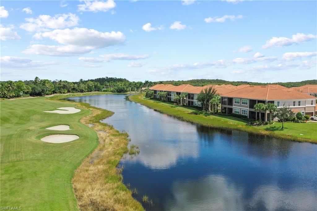 CHECK OUT THAT VIEW! Simply stunning by day with gorgeous sunsets in the evening. Move right in and start enjoying the best of SWFL living! This first-floor condo offers 2 bedrooms plus a den, 2 baths and a spacious covered lanai to enjoy the wide open and phenomenal lake and golf course view! Complete with a wall mounted TV to enhance your relaxation or entertainment. Sold FULLY FURNISHED TURNKEY, the interior boasts a calm, elegant du00e9cor, granite countertops throughout, a bright white kitchen with an open island. Beautiful plank tile flooring in the main living areas and new carpet in the bedrooms. Peace of mind comes with impact windows and sliders throughout. Located in an amenity-rich community with a full social calendar, youu2019ll enjoy endless opportunities to connect and unwind. Golf memberships are available but not required, giving you flexibility. Best of all, youu2019re just minutes from RSW Airportu2014off the plane and at your condo in 20 minutesu2014yet outside the traffic pattern so it stays peaceful and quiet. The Plantation is perfectly located in the center of SWFL close to I-75, shopping, restaurants, Jetblue Park, Hammond Stadium and so much more.