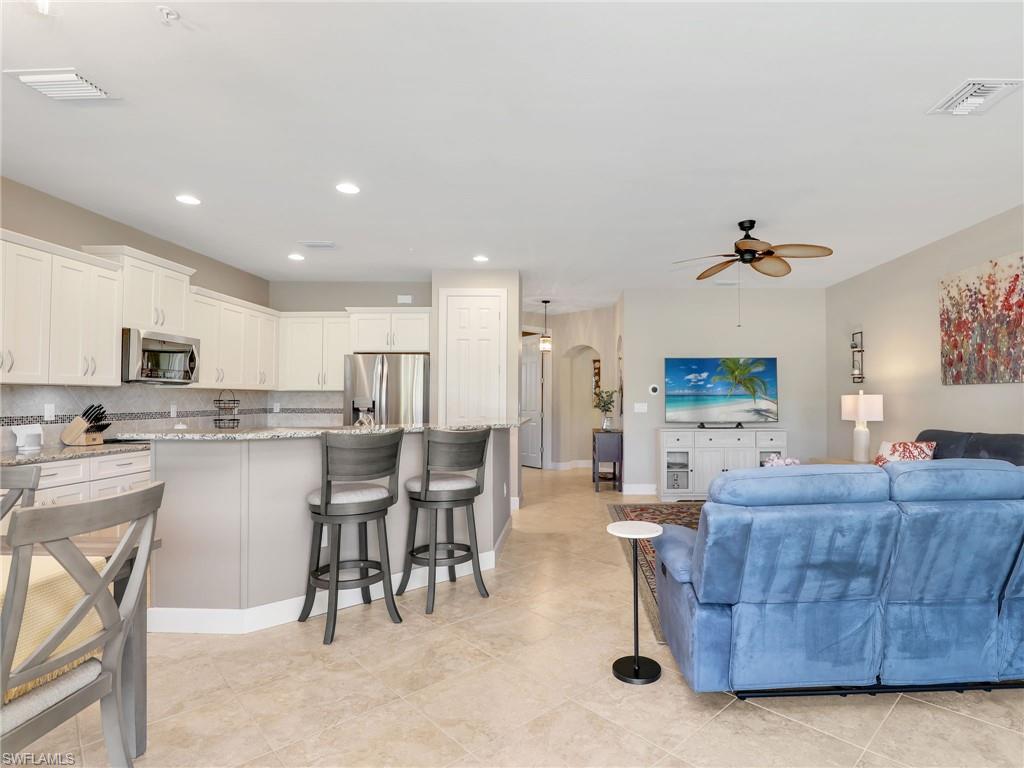 Panoramic Lake & Golf Views at The PlantationDiscover unparalleled, worry-free living in this meticulously maintained, first-floor carriage home, perfectly situated in one of Fort Myersu2019 most desirable gated communities. Offering a blend of elegance, security, and exceptional amenities, this residence is offered completely turnkey furnished, making your move to the Southwest Florida lifestyle seamless and immediate.The interior is defined by an expansive, open-concept design showcasing soaring 10u2019 ceilings, grand 8u2019 doors, and elegant tile laid on the diagonal, creating a bright and airy atmosphere. The floor plan includes two comfortable bedrooms, two full bathrooms, and a versatile den, which is perfect for a home office or can easily function as an optional third bedroom. For the home chef, the functional and stylish kitchen features gleaming granite countertops, stainless steel appliances, crisp white cabinetry, a custom tile backsplash, and a cheerful breakfast nook. The primary suite serves as a peaceful retreat, boasting a large walk-in closet and a spa-like bathroom with dual vanities, an oversized soaking tub, and a separate glass-enclosed shower.From the spacious, screened lanai, you can enjoy serene, panoramic views of the water and the rolling fairways, which are easily accessible via two sets of sliding glass doorsu2014ideal for relaxing or entertaining. This home is truly designed for peace of mind and low-maintenance luxury; it features hurricane-impact windows and doors throughout for superior protection, and key updates include a brand-new 2024 A/C unit for efficient cooling. Additional thoughtful details like plantation shutters, custom vertical blinds, a freshly painted interior, and a finished epoxy-coated garage floor enhance the overall value and appeal. Practical essentials are also included, such as an attached 2-car garage and a full laundry room complete with a utility sink.As a resident of The Plantation Golf & Country Club, you step into the ultimate lifestyle where the HOA fee delivers the true essence of maintenance-free living by covering essentials like cable, high-speed internet, water, landscaping, exterior insurance, and pest control. You also gain access to resort-style amenities including the pool and spa, state-of-the-art fitness center, tennis, pickleball, and bocce ball courts, clubhouse dining, social events, and an optional private golf membership. The prime location is just minutes from I-75, RSW International Airport, premier shopping centers, fine dining, and the stunning Gulf Coast beaches.This highly upgraded, worry-free carriage home wonu2019t last. Step directly into the luxurious Fort Myers lifestyle you deserveu2014the only thing missing is you. Contact us immediately to schedule your private tour and secure your spot in The Plantation today!