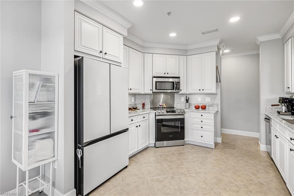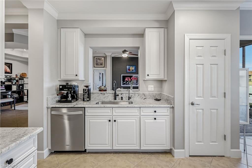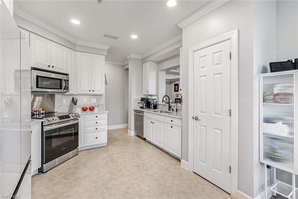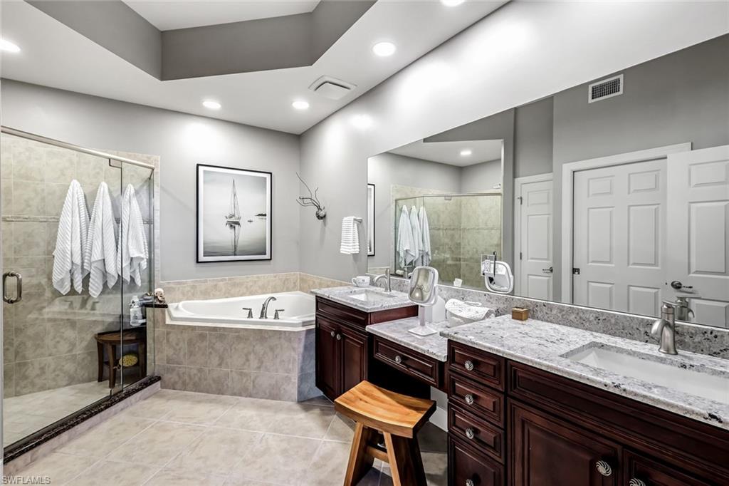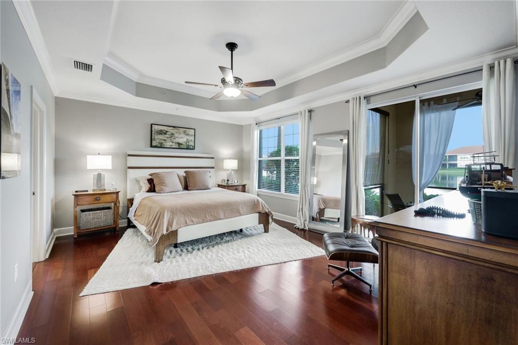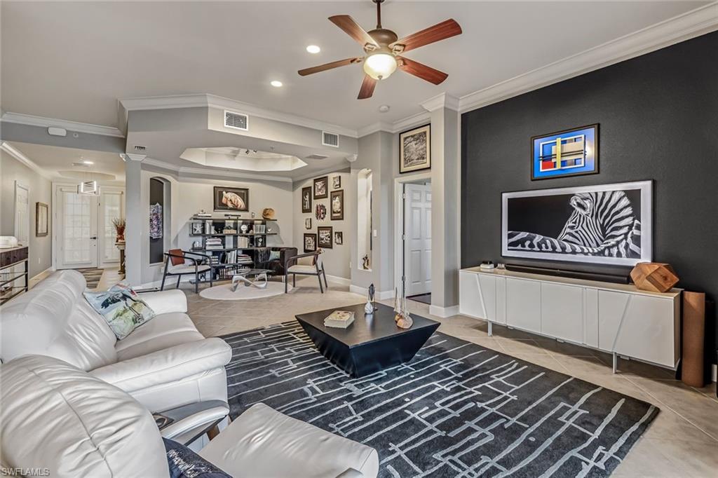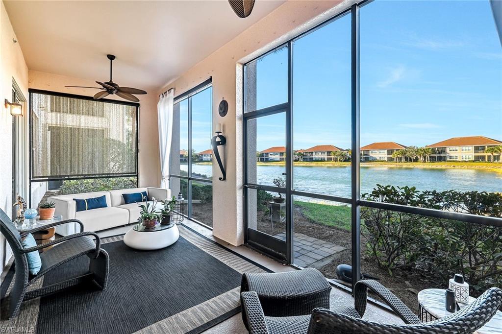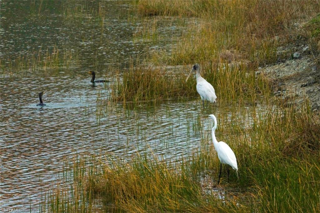 NEWLY UPDATED KITCHEN and PRIMARY BATH. Welcome to 10390 Glastonbury Circle #102, the largest first-floor coach home in Somerset at The Plantation, set in a quiet, private section of the community. This rarely available Ellington floor plan offers over 2,000 sq ft, no stairs, and peaceful lakefront wildlife views, away from road and interstate noise. Furniture is negotiable.This spacious 3BR/2.5BA home features soaring ceilings, crown molding, wood flooring in all bedrooms, plantation shutters, an updated half bath, and no carpet. The largest open kitchen in the floor plan includes new granite countertops, new stainless single-bowl sink and faucet, 2023 appliances, French-door refrigerator with auto-fill water pitcher, induction range, and three-drawer dishwasher. New designer LED lighting enhances the entry and dining area.The owneru2019s suite is a quiet retreat with serene lake views and a custom-designed oversized walk-in closet. The spa-style bath offers dual sinks, soaking tub, makeup vanity, and walk-in shower.Storm-smart for peace of mind, this home is located on the airport power grid with no flood damage history and no past power loss. The building features new exterior paint, roof cleaning with roof-icide, strong HOA reserves, and a north-facing lanai that stays cooler and quieter.Additional highlights include a private driveway, EV-ready 2-car garage with 240V outlet, SimpliSafe security with cameras, mature trees, and a calm, low-traffic neighborhood setting.Condo fees include cable, internet, water, landscaping, building insurance, and resort-style amenities. Enjoy pickleball, tennis, bocce, fitness center, spa, pool, clubhouse, and optional golf.Located just 10 minutes to RSW Airport, shopping, and dining, yet set back for peace, privacy, and quiet living.