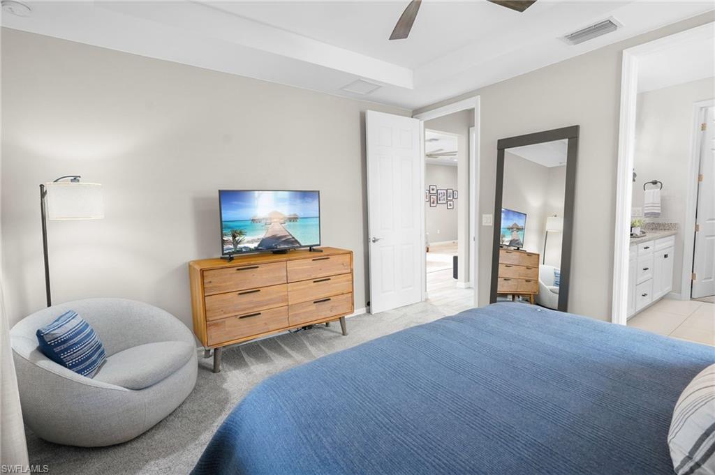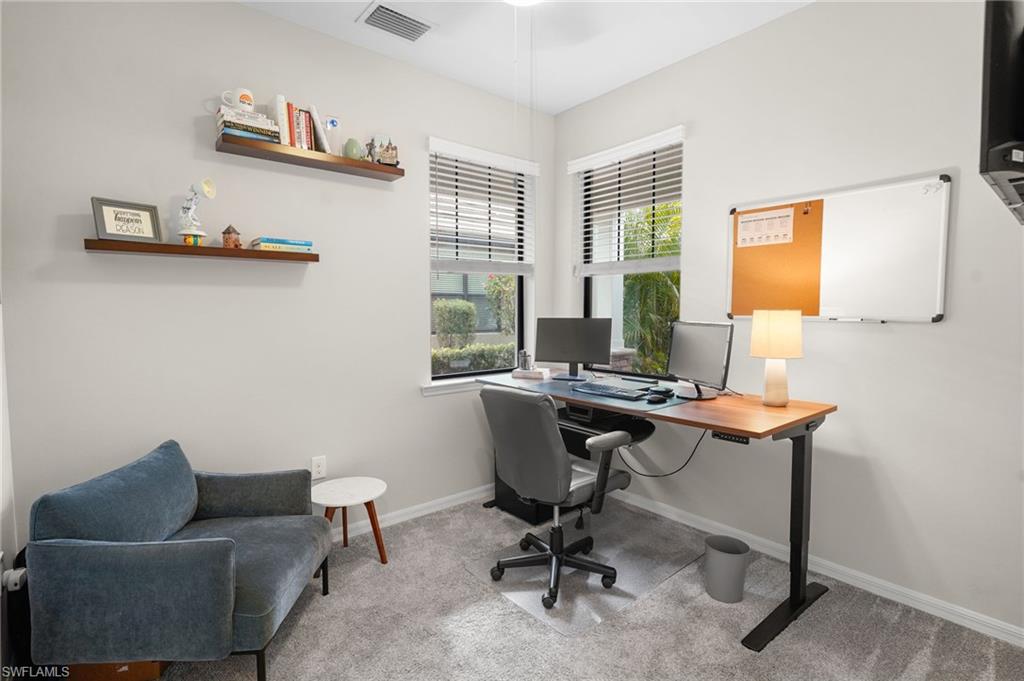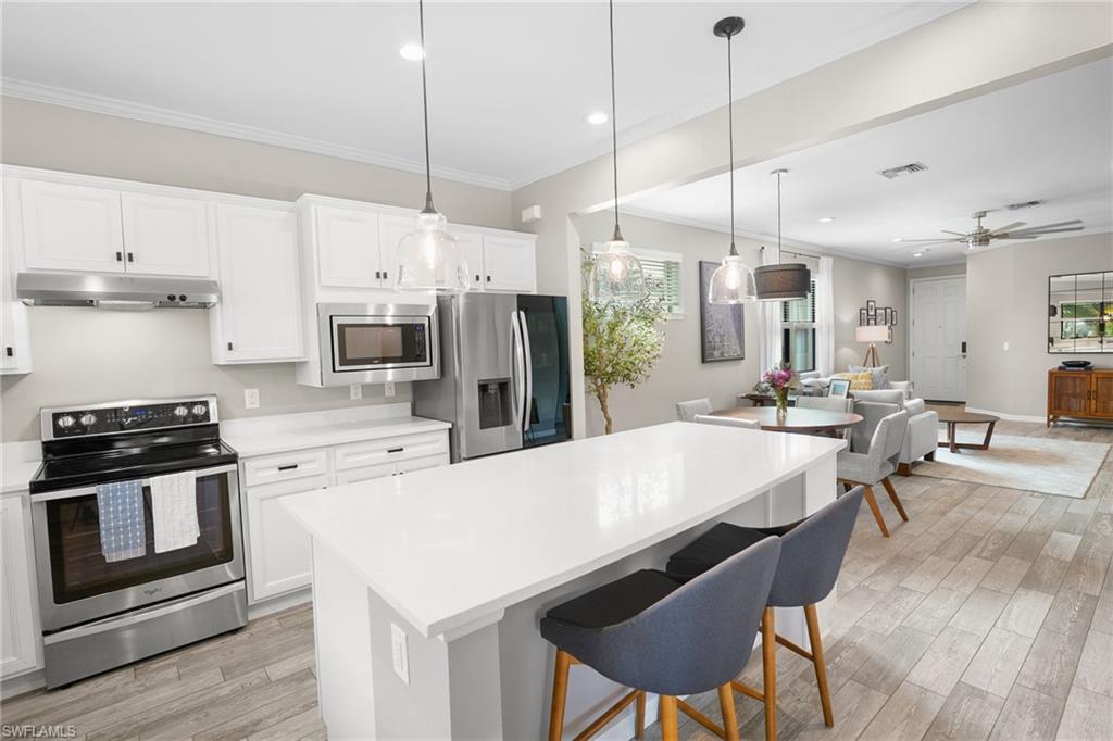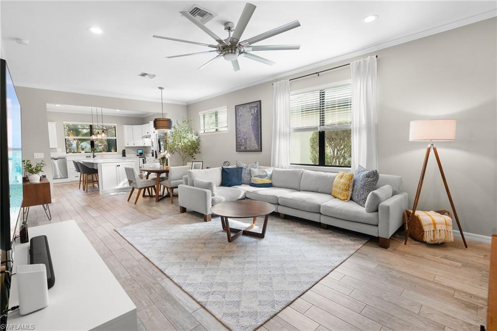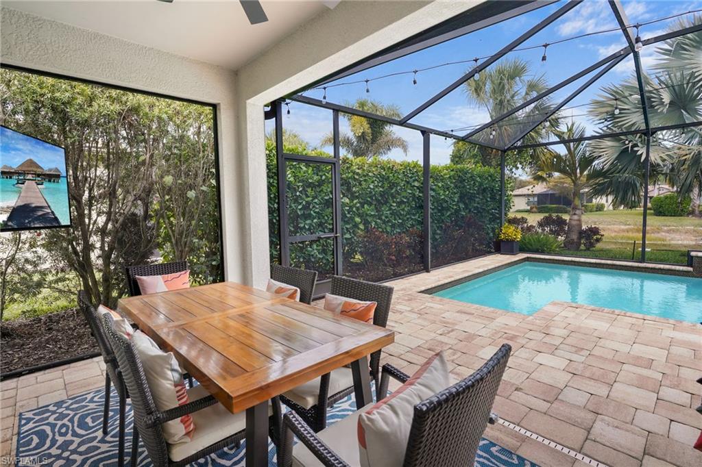 Did you think a beautiful pool home was out of reach? Think again. Experience refined Florida living in this impeccably maintained 2-bedroom + den, 2-bath residence, built in 2017 and perfectly positioned on a quiet cul-de-sac within an exclusive gated community. Offering modern open-concept design and exceptional upgrades throughout, this home seamlessly blends comfort, elegance, and privacy. Step inside to discover a freshly painted interior enhanced with crown molding, updated hardware, designer light fixtures, new faucets, and contemporary ceiling fans. The thoughtfully designed split-bedroom floor plan ensures maximum privacy, while the versatile den provides the flexibility for a sophisticated home office, media room, or easily converted third bedroom. At the heart of the home, the chef-inspired kitchen features an expansive island ideal for entertaining, complemented by a full appliance suite including range, microwave, dishwasher, and refrigerator. The kitchen flows effortlessly into the spacious living and dining areasu2014perfect for gatherings both intimate and grand. Outdoors, your tropical paradise awaits. The screened-in lanai showcases a heated saltwater pool with tranquil water feature, all overlooking serene lake views. Unmatched Resort-Style Amenities: Residents enjoy a gated community with a grand clubhouse, state-of-the-art fitness center, two luxury-style pools, spa, tennis, pickleball and bocce courts, fire pit, tiki bar, BBQ area, and scenic sidewalks throughout. Optional membership to the nearby Summerset Golf Courseu2014its sister communityu2014further enhances the lifestyle with expanded social and sporting opportunities. Prime Southwest Florida Location: Conveniently located just 16 minutes from Southwest Florida International Airport in Fort Myers, and moments from premier shopping and dining including Miromar Outlets and Whole Foods Market. Fine restaurants, malls, and everyday conveniences are all within easy reach. This exceptional property offers the perfect balance of luxury, security, privacy, and accessibilityu2014an extraordinary opportunity to embrace the very best of the Southwest Florida lifestyle.