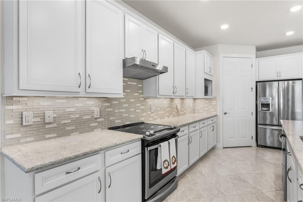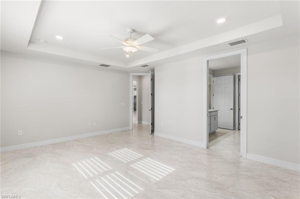 Gorgeous 2018 lakefront estate home in the gated community of Bridgetown offering resort-style amenities and an exceptional location. This 3 bedroom + den, 3 bath residence features a 3-car garage, Impact Windows and a whole-home generator for added comfort and peace of mind. Designed with an open floor plan and volume ceilings, the home feels light and spacious throughout. The beautiful kitchen showcases a large center island, stainless steel appliances, wine refrigerator, and ample cabinetryu2014perfect for entertaining. Sliding glass doors lead to a private outdoor retreat with an inground pool and spa overlooking tranquil lake views and protected/shaded by electric storm screens. The expansive primary suite offers a huge walk-in closet, dual vanities, and a large walk-in shower. Two additional guest bedrooms, one with a bay window and private ensuite bath provides ideal accommodations for family or visitors. Additional highlights include a versatile den with French doors and a large indoor laundry room. Bridgetown residents enjoy resort-style amenities including a clubhouse, pool, fitness center, tennis, pickleball and more. Conveniently located just minutes from shopping, dining, the airport, major highways, and Southwest Floridau2019s beautiful white sandy beaches.