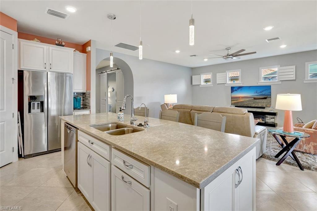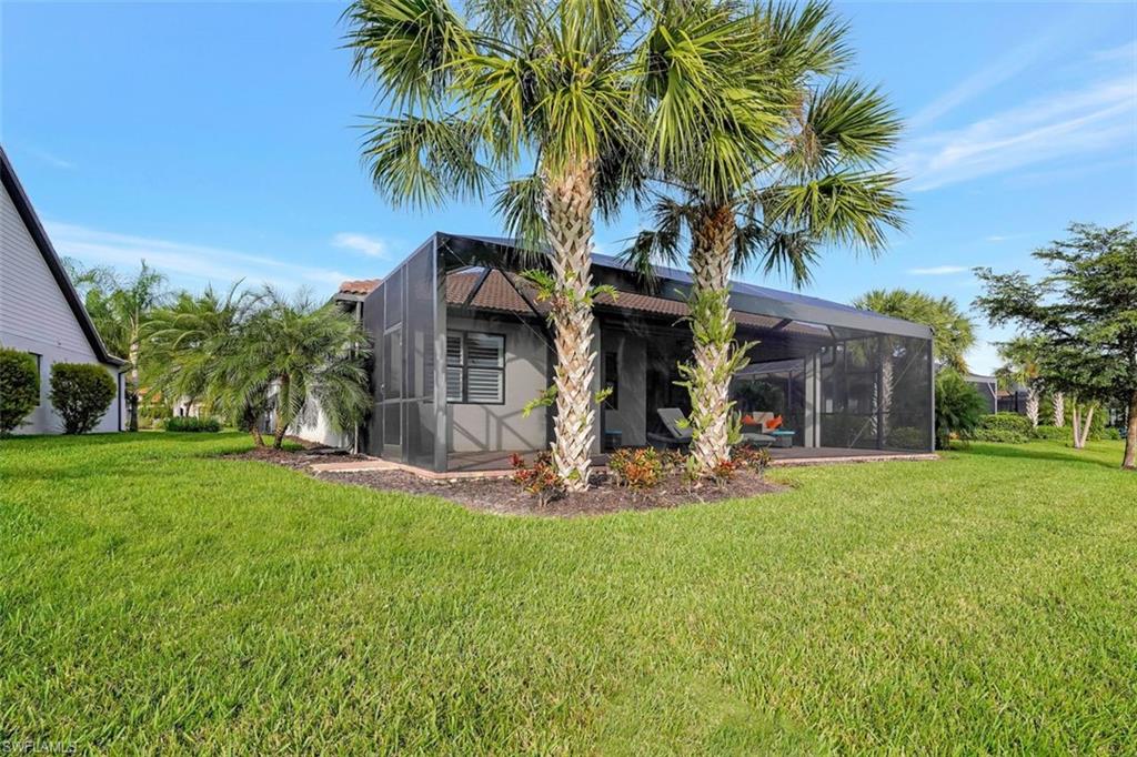 Stunning Waterfront Home with modern upgrades and exceptional design In the Gated community of Bridgetown at the Plantation! Discover luxury living at its finest in this beautifully appointed 2-bed +DEN, 2-bath home, boasting a 3-car tandem garage, built-in closets, and thoughtful architectural details that combine comfort with contemporary elegance. Perfectly situated on a quiet cul-de-sac with enormous, serene water views. Step inside to find elegant tile flooring throughout, designer color palettes, and custom touches that elevate every space. The heart of the home features a gourmet kitchen with quartz countertops, sleek cabinetry, and premium finishes that flow seamlessly into the open-concept living and dining areas. Zero-corner sliding doors create a true indoor-outdoor experience, leading to an extended screened lanai where you can relax and enjoy tranquil waterfront views from coffee to cocktails! The luxurious primary suite offers a peaceful retreat with water views, a spacious walk-in shower, dual sinks, and a built-out custom closet. The den provides the perfect space for a home office or guest area, while the laundry room features extra cabinetry for added storage and convenience. Enjoy the perfect blend of sophistication, functionality, and resort-style living all in a highly desirable location!