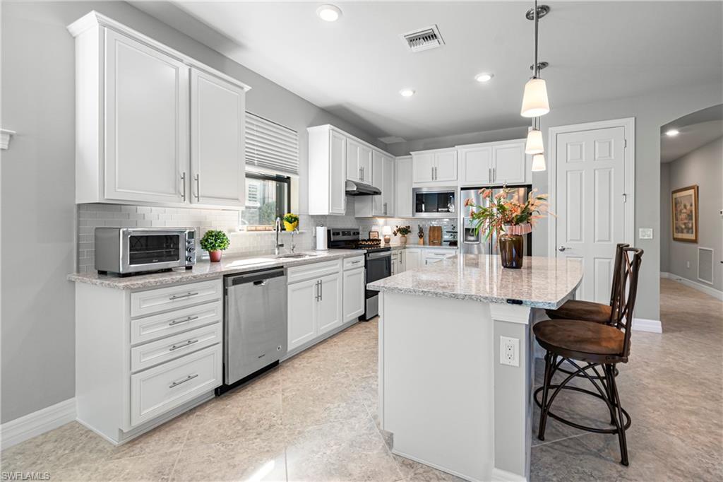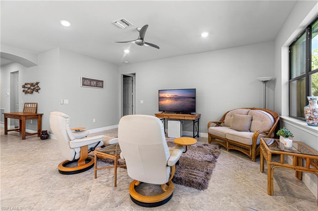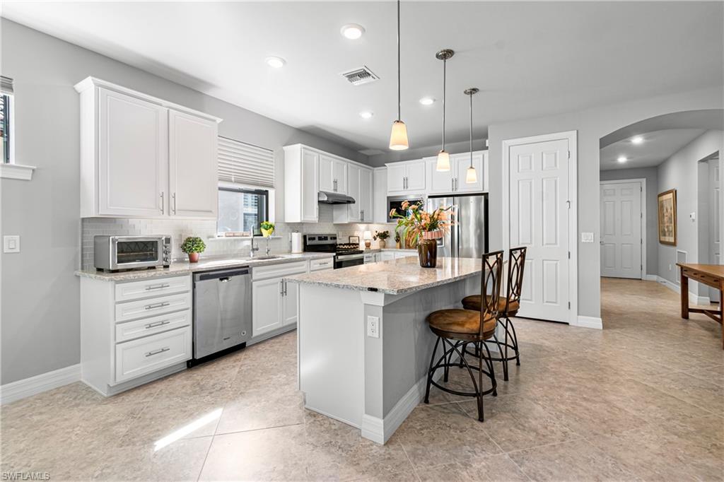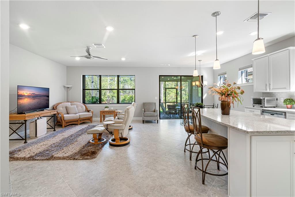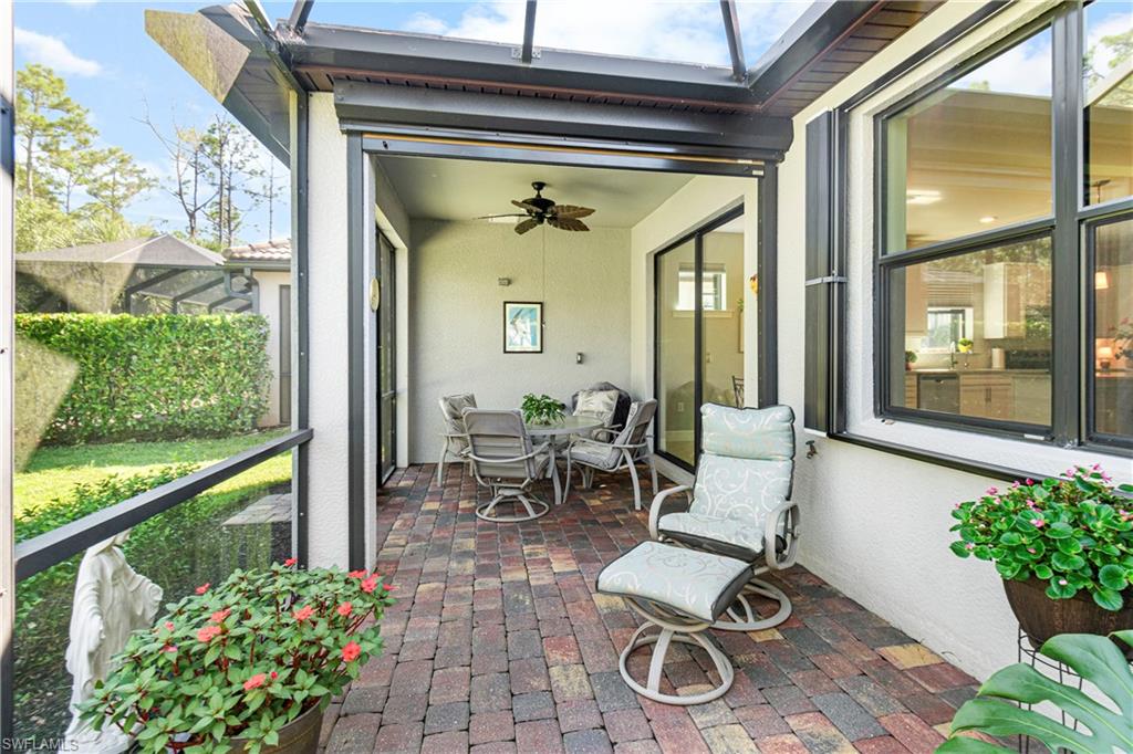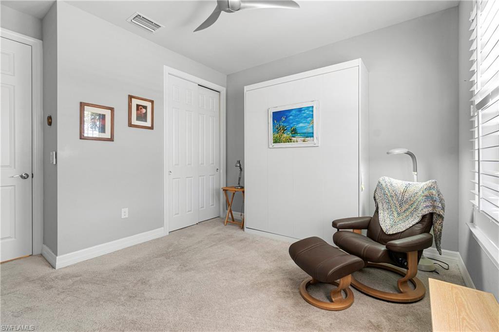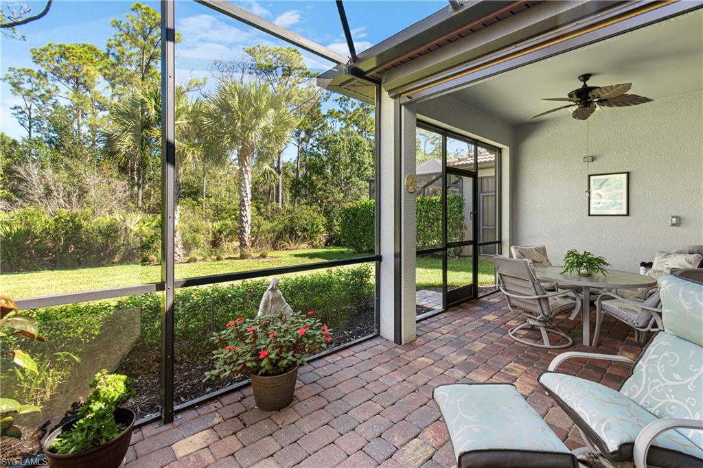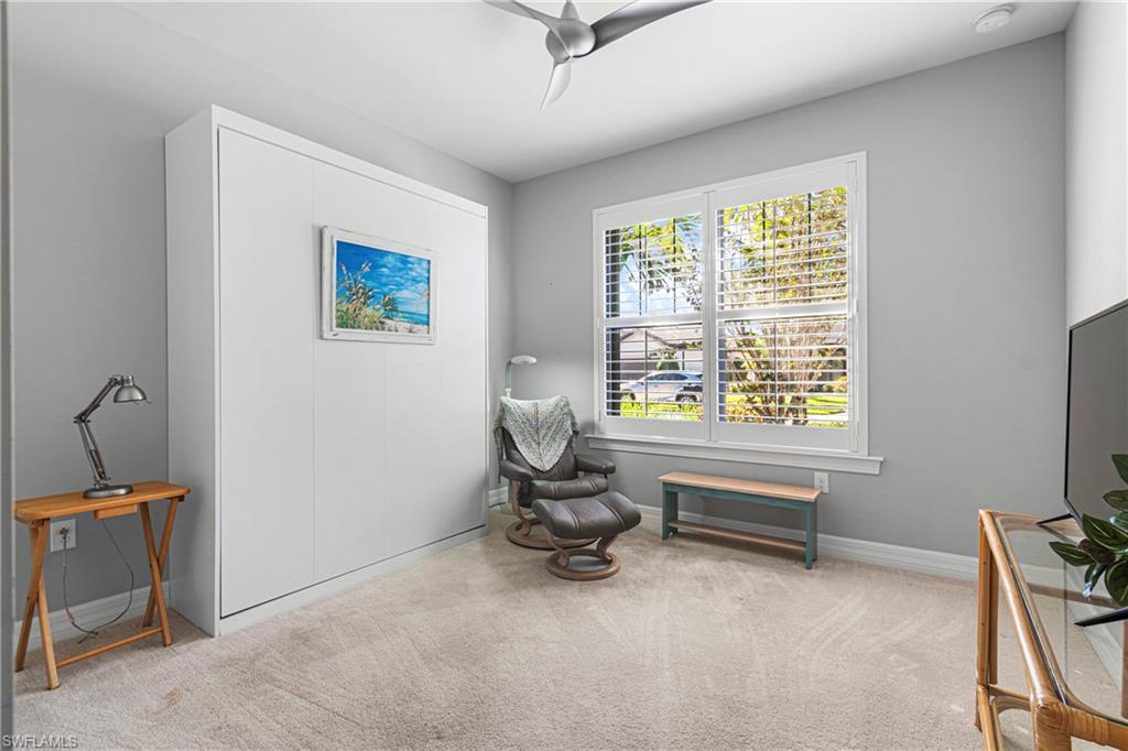We invite you to view this beautiful FURNISHED Abbeyville floorplan home on a perfect u00a0cul-de-sac street with a lovely private preserve view in the upscale gated amenity rich community of Bridgetown at the Plantation. Tucked away from the main streets, this perfect 2 bedroom plus a den offers a flexible layout for family time and entertaining. Quartz countertops and large kitchen island offer plenty of extra seating along with a separate dining area, stainless steel appliances (brand new stove and microwave) plenty of cabinet space and convenient storage, and large pantry. u00a0Plenty of bright light is offered in the main living areas. Primary bedroom offers a quiet preserve view, plantation shutters, tray ceiling. The master bathroom offers a large walk in shower, with beautiful granite countertops and dual sinks with plenty of room for shared space! along with a large closet. Upgrades are Plantation shutters, Life Source water treatment system, Storm Smart hurricane shutters, installed rain barrel for watering plants, u00a0Murphy bed in the guest bedroom allowing for conversion to extra space for guest, or sewing/ craft room. Installed stow away front screen door at front entrance offer a great breeze to flow through the home, during our cooler season, Newer water heater 2023, and 3 Kohler faucets. Lanai has plumbing and electric needed for an outdoor kitchen. The preserve view at the rear of the property affords opportunity for bird watching and on occasion owl watching. The clubhouse offers upscale resort style pool, spa, barefoot bar, fitness center, six tennis courts, pickleball, game room, cards, musical moments with local neighbors, bocce ball, playground, and activities director on site! Bridgetown offers quick access to I-75, Southwest Fla. International airport, Gulf Coast Town Center, and Florida Gulf Coast University , & downtown Ft Myers. Bourke Buddies organize street events 4 times a year for neighborhood get togethers. Schedule your showing to start living your best life! This home was well taken care of and is waiting for its new family!