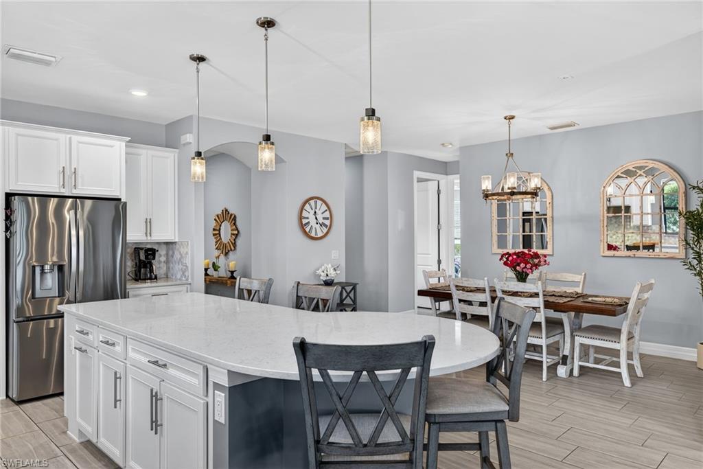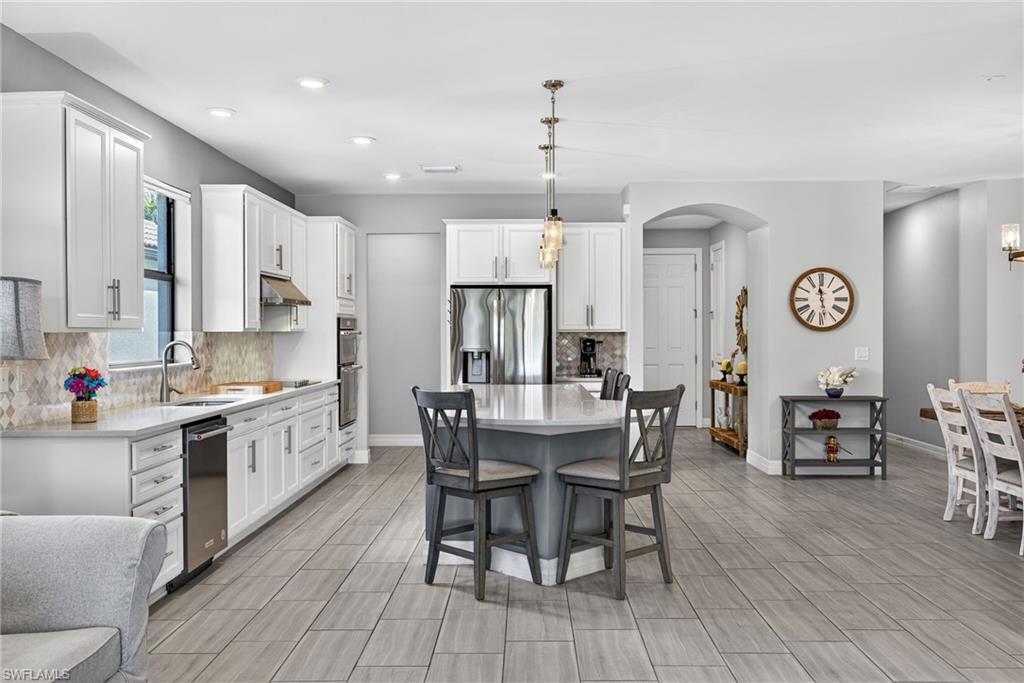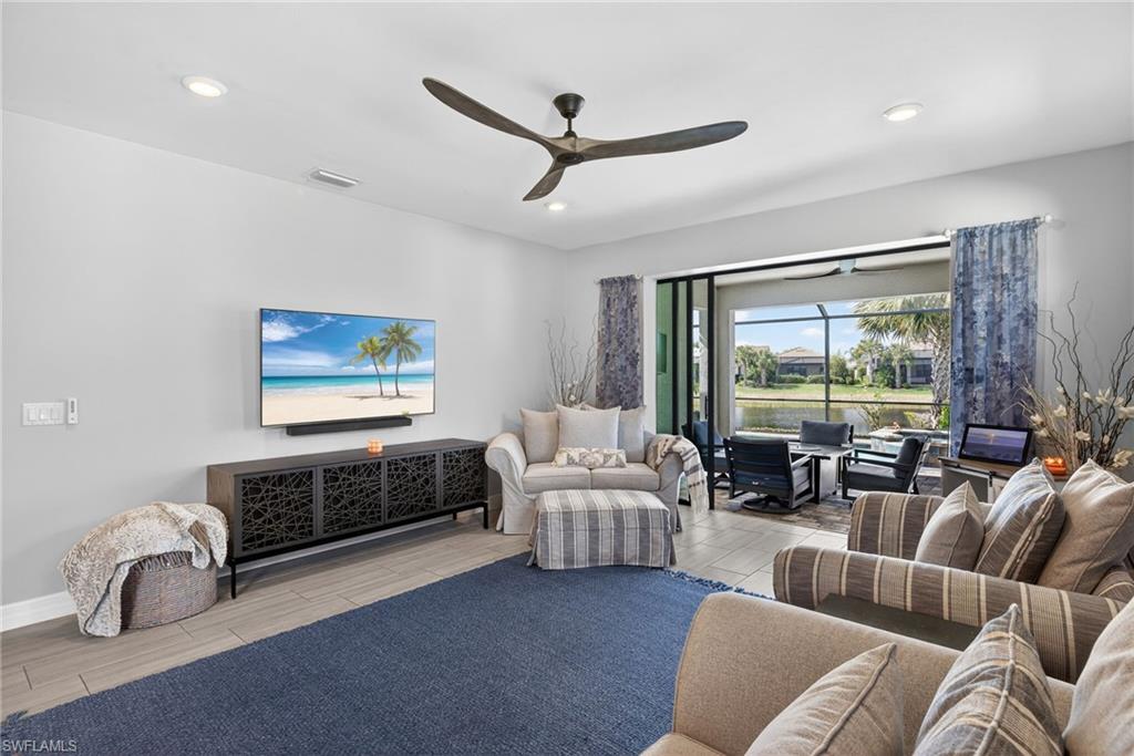 Welcome to resort-style living in Bridgetown u2014 where every day feels like a getaway. This vibrant 3 Bedroom + Den pool home delivers the Florida lifestyle you crave. Inside, youu2019ll notice the light-filled, open design and seamless flow to the outdoors through pocketing sliding glass doors that create an incredible indoor/outdoor experience. At the heart of the home is a show-stopping kitchen designed to impress. Outfitted with upgraded appliances, a sleek electric cooktop, wall oven, quartz countertops, recessed and pendant lighting, and convenient lower cabinet pull-outs, this space is equal parts style and function. A brand-new refrigerator, plus new washer and dryer, add everyday peace of mind. Tile flooring runs throughout the main living areas, while luxury vinyl plank flooring enhances all bedrooms u2014 absolutely no carpet anywhere. The private den, complete with French doors, offers the perfect flex space for a home office or quiet retreat. Step outside and youu2019ll understand what makes this home truly exceptional. The sparkling pool and spa overlook a tranquil lake view with preserve beyond u2014 a peaceful, private backdrop for sunset swims and relaxed evenings. The outdoor kitchen makes entertaining effortless, creating the ultimate setting for weekend gatherings, poolside dining, and year-round Florida living. And the lifestyle? Unmatched. Residents of Bridgetown enjoy premier amenities including a resort-style pool, lap pool, state-of-the-art fitness center, tennis, pickleball, bocce, and a vibrant social calendar. This is more than a home u2014 itu2019s your own private retreat in one of Fort Myersu2019 most sought-after communities.