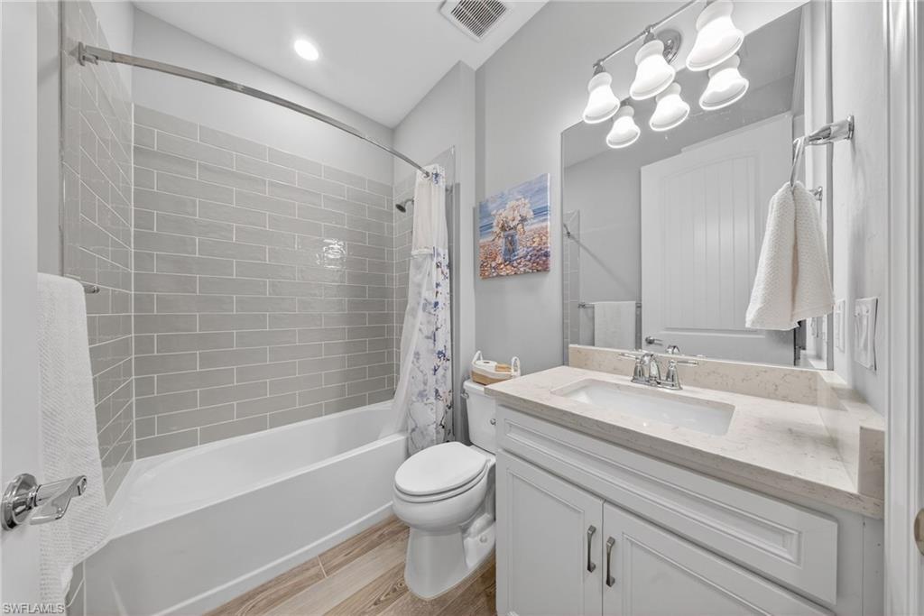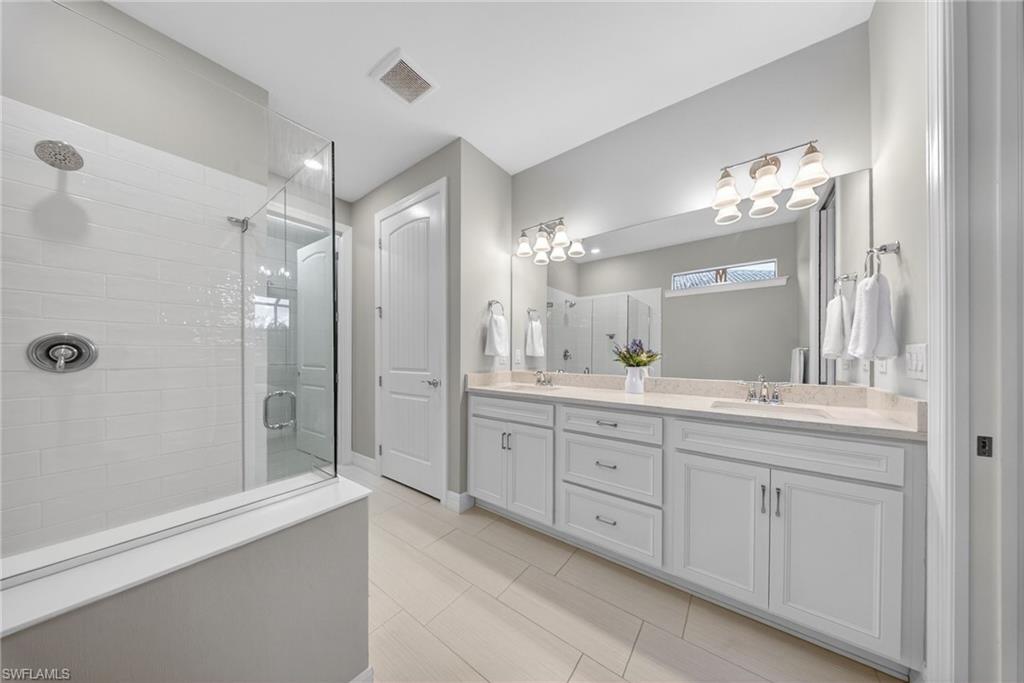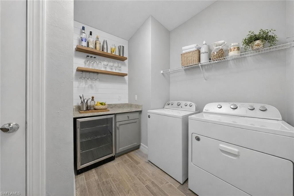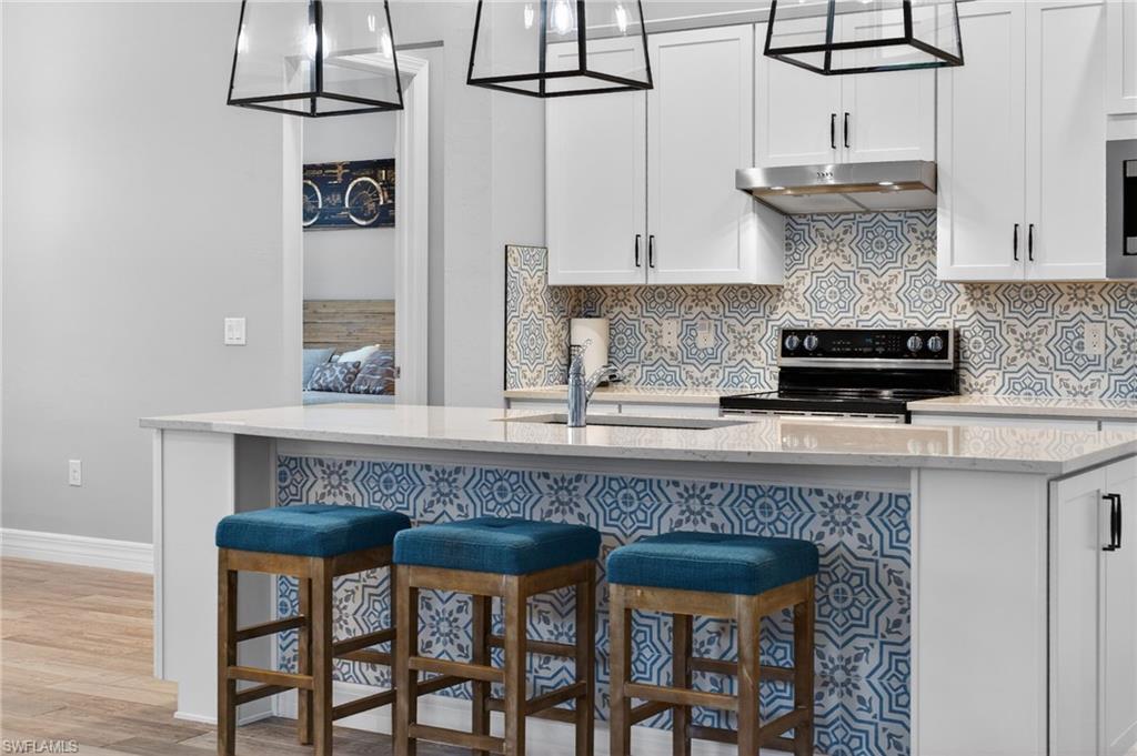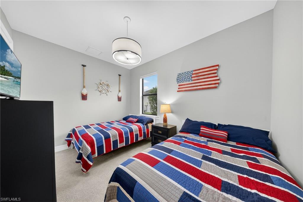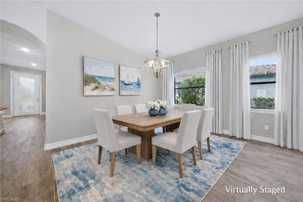 WESTERN LAKEFRONT SUNSETS, a CUSTOM SALTWATER POOL, and an EXTENDED SUMMERWOOD FLOOR PLAN with 11-FOOT CEILINGS and MODERN COASTAL FINISHES u2014 this home truly SHOWS LIKE A BRAND-NEW MODEL.Perfectly positioned on a PREMIUM LAKEVIEW HOMESITE in Bridgetown at The Plantation, this beautifully maintained residence offers 3 BEDROOMS + DEN, 2 FULL BATHS, & 2,177 SQFT OF OPEN SINGLE-STORY LIVING designed for both comfort and entertaining.A MODERN GLASS ENTRY DOOR welcomes you inside where natural light fills the foyer and SOARING 11-FOOT CEILINGS create an immediate sense of space. The main living areas and den feature WOOD-LOOK PLANK TILE FLOORING, while 8-FOOT INTERIOR DOORS WITH UPGRADED COASTAL TRIM elevate the homeu2019s clean, modern aesthetic. The EXTENDED GREAT ROOM provides additional living space beyond the standard model and is highlighted by a COFFERED CEILING WITH CUSTOM WOOD SHIPLAP DETAIL.The kitchen is designed for everyday living and entertaining, centered around a LARGE QUARTZ ISLAND WITH BUILT-IN CABINETRY. WHITE CABINETRY WITH MODERN BLACK HARDWARE, a STYLISH BACKSPLASH, and STAINLESS STEEL APPLIANCES including a BUILT-IN MICROWAVE and ELECTRIC COOKTOP WITH HOOD VENT complete the space. Additional highlights include a SINGLE-BASIN BLANCO SINK and STEP-IN CORNER PANTRY.The spacious PRIMARY SUITE features a TRAY CEILING, WATER VIEWS, and room for a king-size bedroom set. The ENSUITE BATH includes QUARTZ COUNTERS, DUAL SINKS, FRAMELESS GLASS WALK-IN SHOWER, and a LARGE WALK-IN CLOSET. Two guest bedrooms share a nearby bath with QUARTZ COUNTERS and a TUB-SHOWER COMBO.The DEN WITH SLIDING BARN DOORS offers a flexible space ideal for a HOME OFFICE, MEDIA ROOM, OR FLEX SPACE.Outdoor living is what draws people to Southwest Florida and this home delivers! The EXTENDED LANAI WITH TRAVERTINE PAVERS overlooks the lake and showcases a CUSTOM SALTWATER POOL WITH SUNSHELF & BUBBLERS plus a RAISED FEATURE WALL WITH WATER FOUNTAINS u2014 the perfect setting for relaxing evenings and unforgettable sunset views. The lanai is also equipped with STORM SMART HURRICANE SCREENS that close with the push of a button.Additional highlights include a LAUNDRY ROOM WITH WASHER & DRYER plus a BUILT-IN BEVERAGE BAR WITH GRANITE COUNTERS, SHELVING, & BEVERAGE COOLER, as well as a 2-CAR GARAGE WITH EPOXY FLOORING.Located in FLOOD ZONE X (LOWEST FLOOD RISK u2014 FLOOD INSURANCE NOT REQUIRED), this home is part of the highly desirable Bridgetown at the Plantation community known for RESORT-STYLE AMENITIES including a RESORT POOL & SPA, LAP POOL, FITNESS CENTER, CLUBHOUSE, TENNIS, PICKLEBALL, BOCCE, WALKING PATHS, & A POOLSIDE TIKI BAR. OPTIONAL MEMBERSHIPS are available at the nearby PLANTATION GOLF & COUNTRY CLUB.Ideally located just minutes from RSW International Airport, Gulf Coast Town Center, Costco, Target, and JetBlue Park u2014 with easy access to dining, shopping, and entertainment u2014 and only 30u201340 MINUTES TO SOUTHWEST FLORIDAu2019S BEAUTIFUL GULF BEACHES.