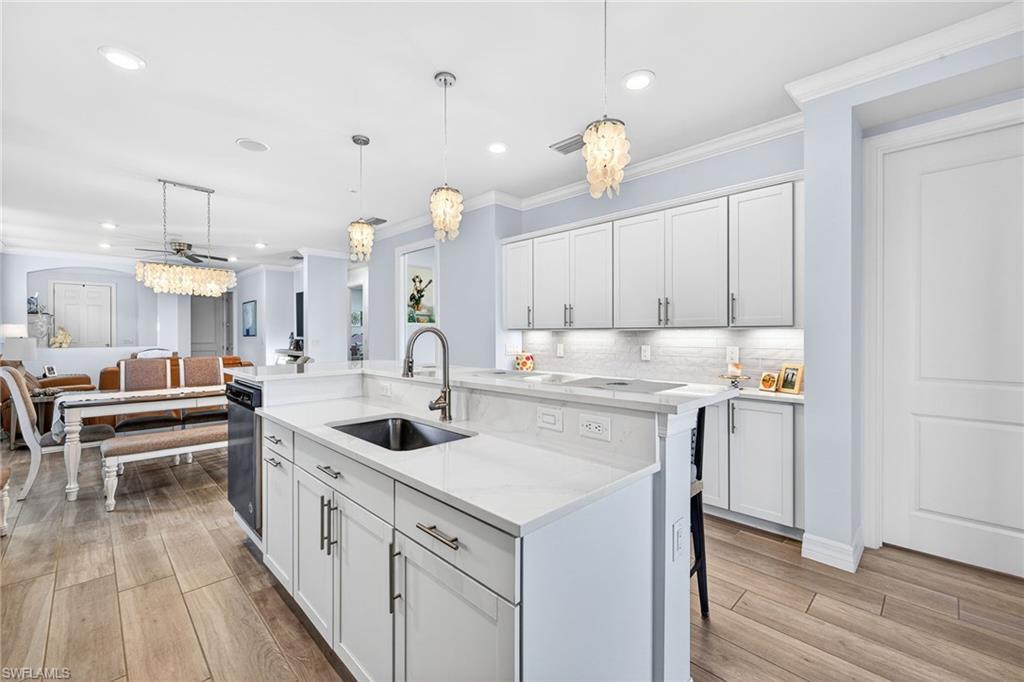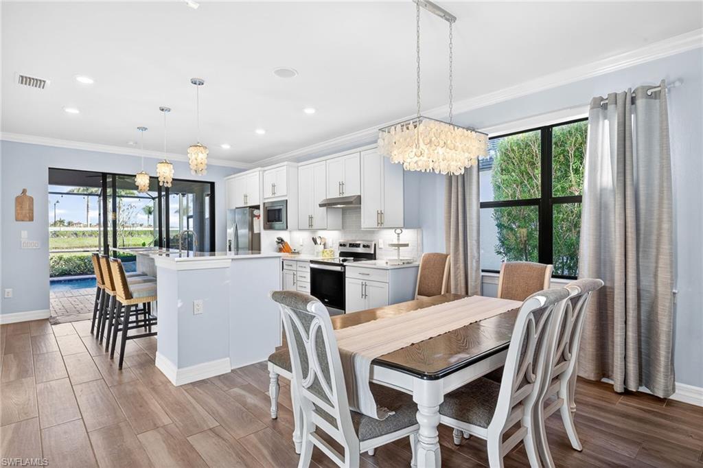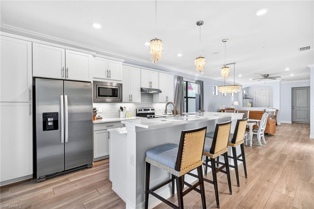 Welcome to this beautifully appointed 3 bedroom/2 bathroom pool home, perfectly situated on a quiet cul-de-sac for added privacy and peace of mind. Step inside and youu2019ll notice the attention to detail, including high-end tile flooring throughout, elegant crown molding, upgraded lighting, and desirable 8-foot doors that enhance the open, airy feel of the home. The kitchen is both stylish and functional, featuring 42-inch white cabinetry with an added wall of cabinets, convenient lower cabinet pull-outs, sleek quartz countertops, and a classic subway tile backsplashu2014perfect for everyday living and entertaining alike. A whole-house sound system adds to the homeu2019s modern comfort and entertainment appeal. Outside on your lanai, retreat to your private pool perfect for relaxing or hosting guests while enjoying the Florida lifestyle. This home seamlessly blends comfort, quality, and thoughtful upgrades in a sought-after setting. Residents of Bridgetown enjoy an impressive array of resort-style amenities, including a sparkling resort pool and chilled lap pool, state-of-the-art fitness center, clubhouse, fire pit, play area, and miles of sidewalks. Sports enthusiasts will appreciate the pickleball, tennis, and bocce courtsu2014making it easy to stay active and social in one of Fort Myersu2019 most sought-after communities. Schedule your showing today!