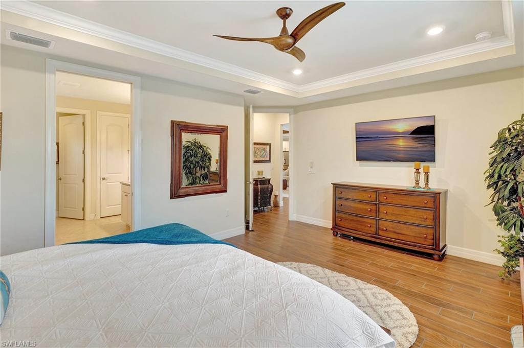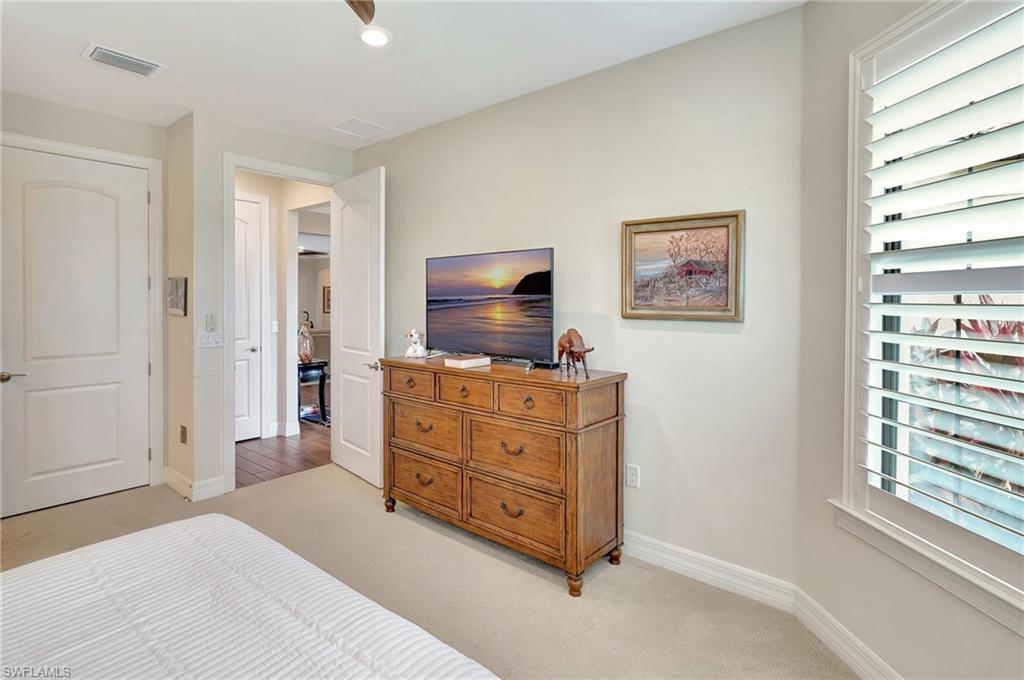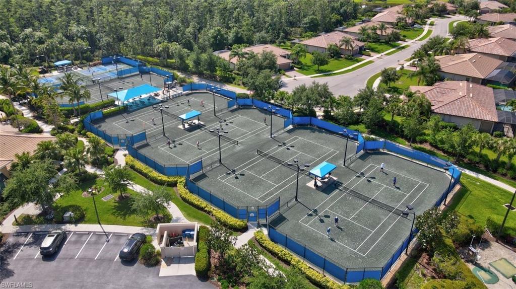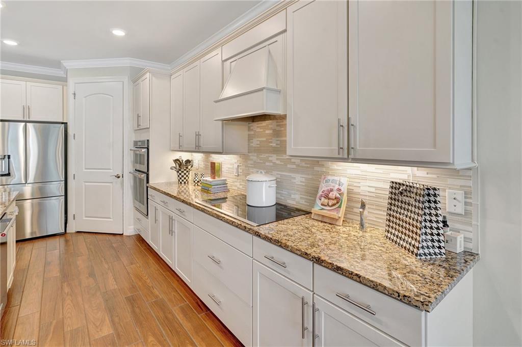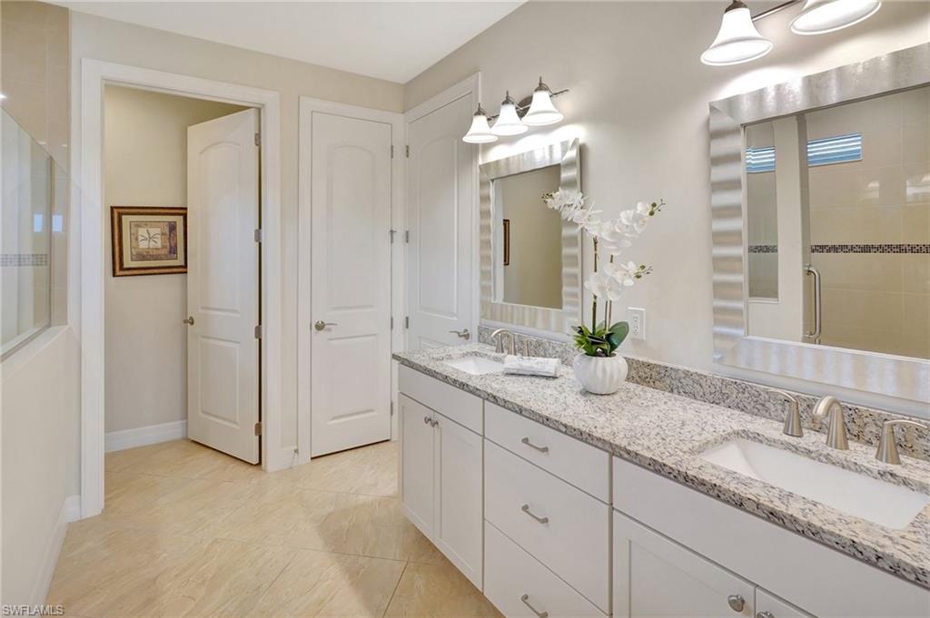 Ideal for multigenerational living or seasonal retreat, this elegant waterfront Pinnacle floor plan offers space, privacy, and resort-style comfort with three spacious bedrooms (including two en-suites), three full baths, a versatile den, and an extended three-car garage. The open-concept design features floor-to-ceiling pocket sliders that open to a private lanai with a custom heated pool and oversized spau2014perfect for relaxing or entertaining across generations. The gourmet kitchen boasts granite countertops, 42-inch off white cabinetry, a designer tile backsplash, premium stainless-steel appliances with wall ovens, a walk-in pantry, and a beverage bar with fridge. The luxurious primary suite includes a sitting area, spa-style bath with dual vanities and walk-in shower, and a custom-built closet. Additional upgrades include impact-resistant windows and sliders, electric roll-down Kevlar hurricane screens, a picture-frame lanai screen, coffered ceilings, crown molding, plantation shutters, and sleek plank tile flooring. Located in a vibrant, amenity-rich community with tennis, pickleball, bocce, a state-of-the-art gym, and a resort-style pool and spa, the HOA also covers cable, internet, lawn care, and exterior pest control. Conveniently located near I-75, RSW Airport, upscale shopping, fine dining, and Gulf beaches, this partially furnished home offers the perfect blend of luxury, flexibility, and Florida lifestyleu2014ready to welcome you home