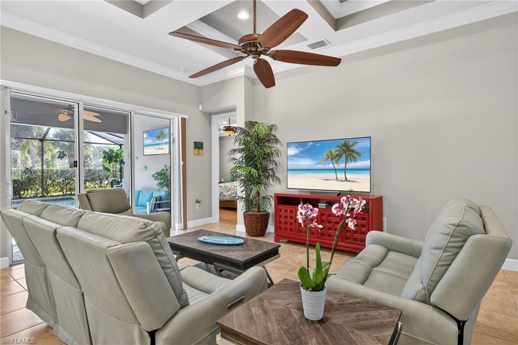 A Beautiful Pulte home in Plantation Somerset itu2019s loaded with UPGRADES! Custom pool & spa with amazing night lighting, hurricane shutters all windows with roll-down on lanai. Kitchen fully upgraded in 2024 from cabinets and Quartz counter tops to KitchenAid appliances. Other updates in 2024 include bathroom vanities, laundry room cabinets, custom pool lighting, solar panels, HD re-screen pool cage, wireless pool control, large lanai. More upgrades & NEW: hot water heater, ceiling fans all rooms & lanai, plantation shutters throughout, bonus den w/Murphy-bed, laminated floors all bedrooms, Tile floors all other. Garage has AC unit 2023, garage door insulated, new custom front entry door. Home sits on a beautiful large corner lot. Community includes an Amazing Amenity Center with: Racket Sports complex Pickleball & Tennis, Full 3-room Workout Center with locker rooms u2013 showers u2013 Sauna u2013 massage room, very large resort pool with lap area, outdoor kitchen/bar, large hot tub. Nestled in the vibrant Treeline Corridor - enjoy easy access to I-75, Florida Gulf Coast Town Center shopping & dining, local beaches, JetBlue Park, and RSW Airport. Optional Plantation Golf Club membership adds championship golf and lifestyle amenities.