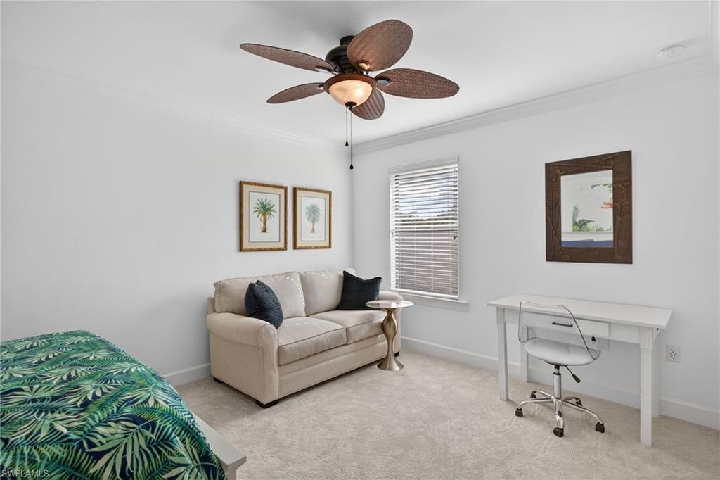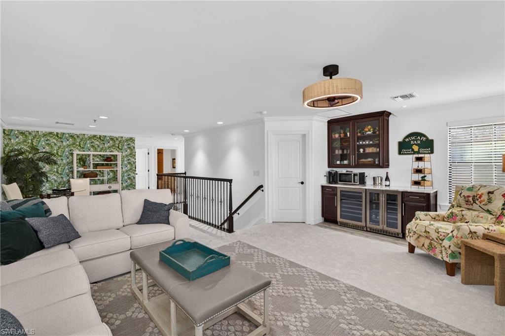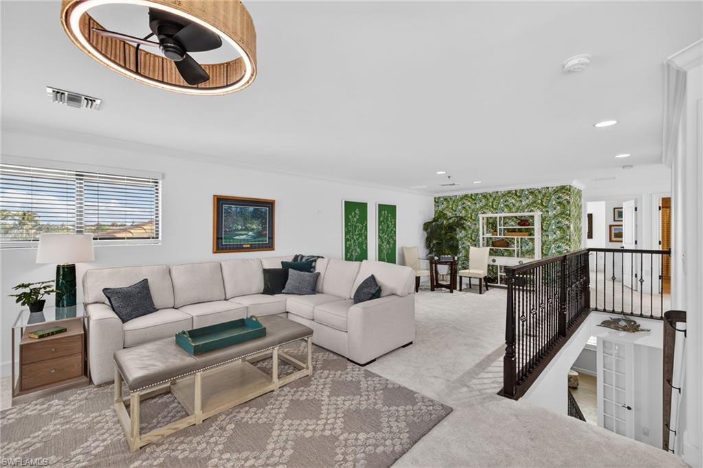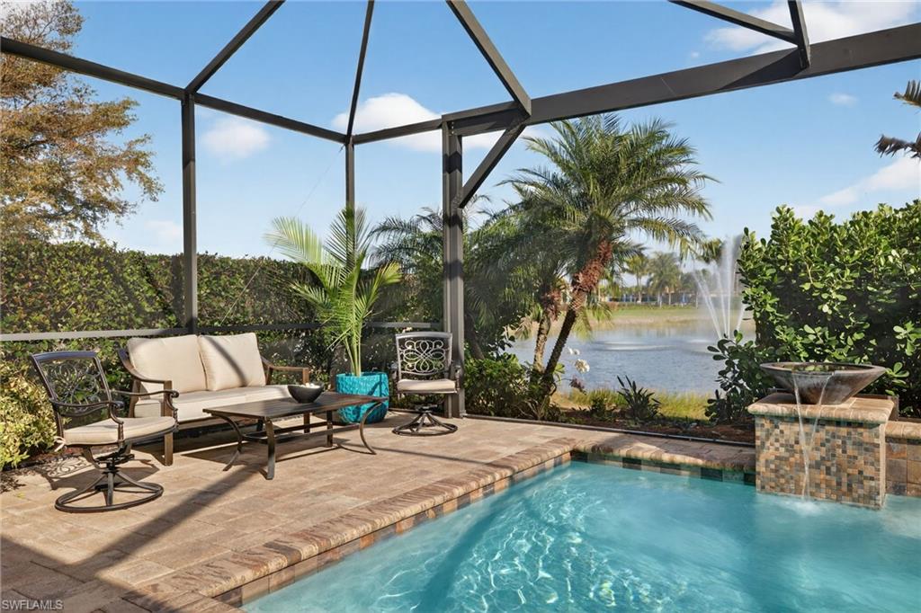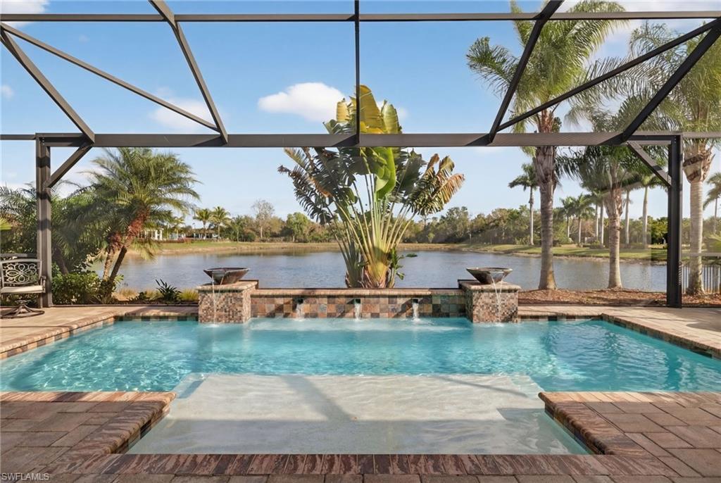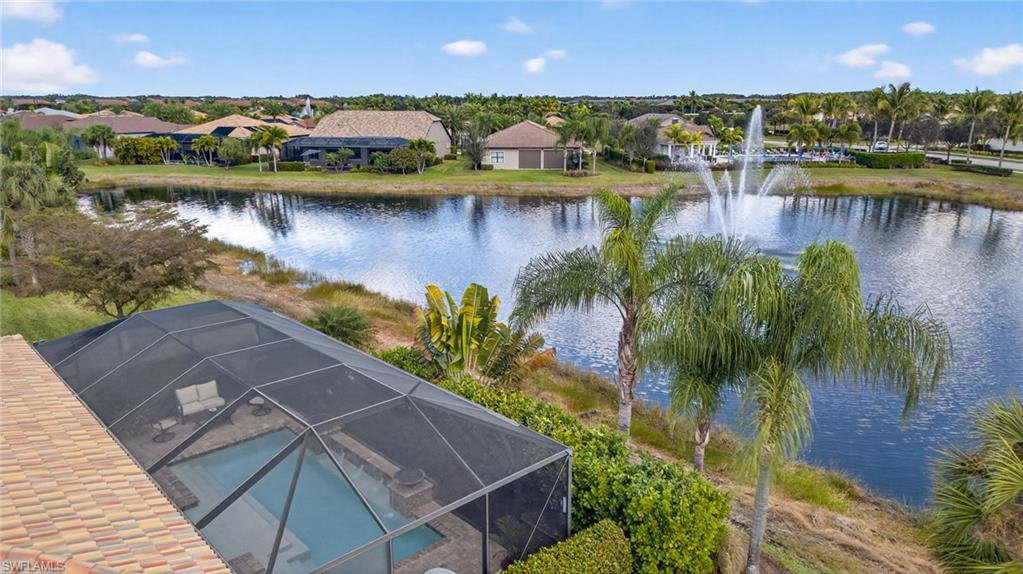 Experience elevated living in this Stonewater two story floor plan, with the option to secure immediate golf membership access to The Plantation Golf and Country Club. This 3,969 sq ft residence, built in 2017, offers four bedrooms plus a bonus room, four and a half baths including a pool bath, and a three car garage.The main level features three en suite bedrooms including the primary suite, a bonus room with French doors, an electric fireplace with recessed Frame TV, and wood look plank tile flooring. The kitchen is designed for both style and function with an oversized island, instant hot faucet, upgraded appliances, and a large walk in pantry with built in shelving and an electrical outlet.The primary suite provides a serene retreat with a custom walk in closet, double vanity, and an oversized walk in shower.The second level offers a private sanctuary complete with a spacious loft, a built in bar with beverage refrigerator, an oversized walk in storage closet, new carpet, and an additional en suite bedroom.Outdoor living is elevated by a saltwater pool with multiple water features and adjustable lighting, a sun shelf with umbrella holder, a climate controlled pool bath, a pool storage closet, a new pool pump, upgraded Pentair app enabled controls, landscape lighting, and lanai cage lighting. From the covered lanai, enjoy tranquil views of the community lake and its illuminated water fountainu2014an elegant backdrop for both daytime relaxation and evening entertaining.Hurricane protection includes remote operated shutters on all upstairs windows and the lanai, along with manual shutters on the first floor windows.Recent upgrades include two new air conditioners with app based controls (2024), a Halo whole home water purification system, and a new water heater (2025).Additional enhancements include upgraded garage flooring and cabinetry, professional exterior paint (2025), plantation shutters, an Arlo camera doorbell, and a central vacuum system.Somerset at The Plantation offers an exceptional amenity package including pickleball, tennis, two pools, sauna, massage and facial rooms, a fitness center, bocce ball, a library, and numerous social clubs. HOA services include Hotwire internet and cable, irrigation, lawn mowing, fertilization, landscape trimming, and mulching. Optional golf and social memberships are available at The Plantation Golf & Country Club, featuring an 18 hole Hurdzan Fry championship course, driving range, putting green, and on site dining.This home is ideally located near I 75, shopping, dining, RSW airport, and Gulf beaches.