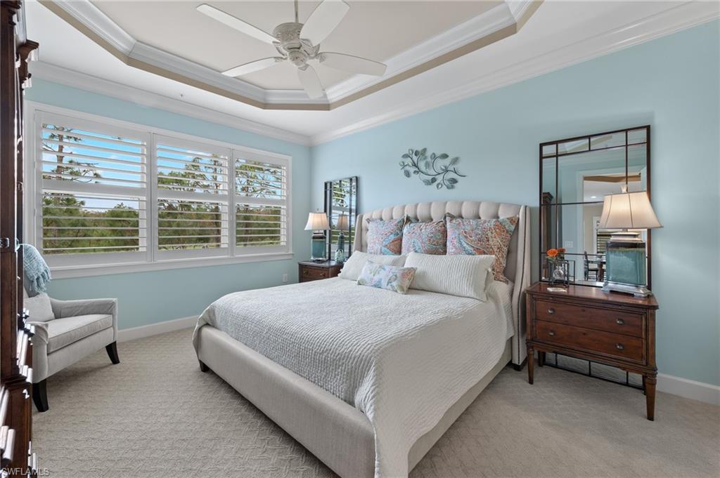 ESCAPE TO SUNSHINE & SWEEPING GOLF VIEWS! Wake up to panoramic views of the 8th green in this beautifully upgraded 2nd-floor carriage home in The Plantation Golf & Country Club. Offering 3 bedrooms + den, 2.5 baths, 2-car garage, and 2,297 sq ft, this home is the perfect seasonal sanctuary or year-round retreat. Step inside and feel the warmth of a gourmet kitchen with 42u201d white wood cabinets, granite countertops, tile backsplash, soft-close drawers, pantry, and new stainless-steel stove and microwave (2022). The spacious owneru2019s suite features two custom walk-in closets and a spa-like bath with soaking tub, walk-in shower, and split vanities. Two sets of sliders open to a tiled lanai with electric Kevlar hurricane screensu2014your private perch for morning coffee or sunset cocktails. Upgrades include: NEW HVAC (2024), NEW hot water heater (2022), epoxy garage floor, crown molding, custom light fixtures, plantation shutters, and a laundry room with washer/dryer and utility sink. Not in a flood zone and hurricane protected with electric roll-down shutters on the lanai and manual shutters on all other windowsu2014peace of mind whether youu2019re here or away. HOA fees cover cable, high-speed internet, lawn care, pest control, water, trash, exterior insurance, and maintenance. Enjoy resort-style amenities: tennis, pickleball, bocce ball, fitness center, two pools, spa, and vibrant social clubs. Golf and social memberships are optional. Located near I-75, shopping, dining, RSW airport, and Gulf beachesu2014everything you need for effortless seasonal living.