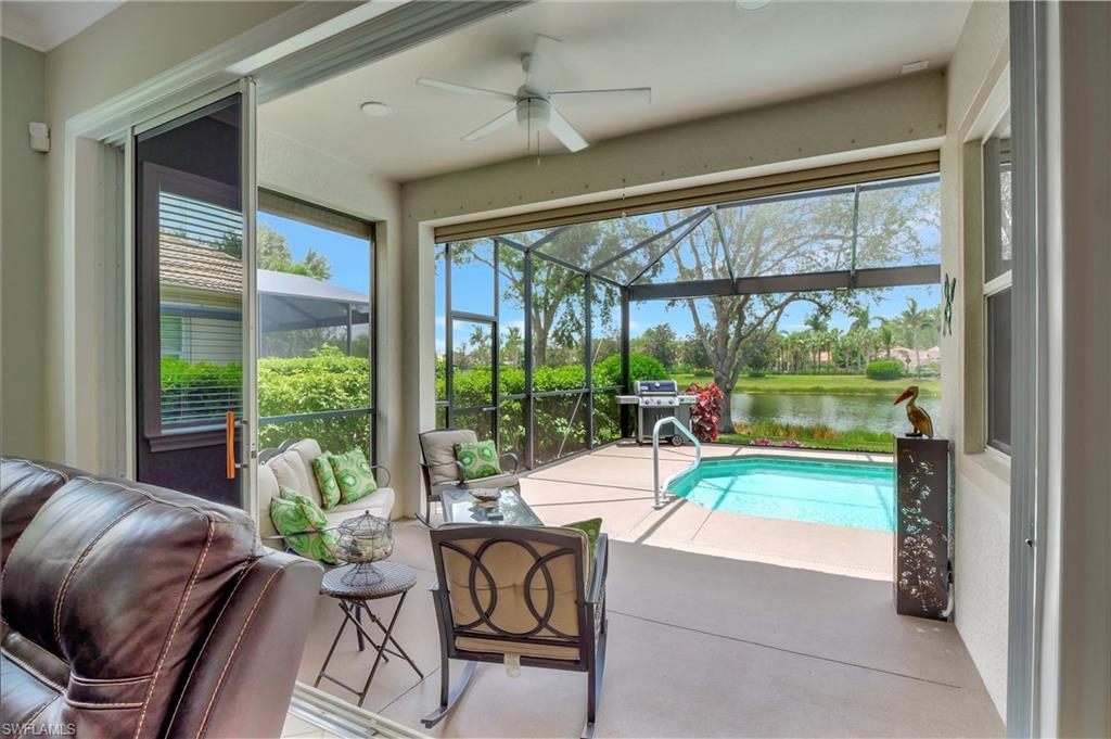 Rented until April 15, 2026. This 2+den/2bath furnished attached villa with a private pool is the perfect place to soak up the sun and relax. Inside there are 2 bedrooms, one with a king bed and one with a queen. Additionally, there's a den with a murphy bed that can serve as extra sleeping space if needed. Nestled within the gated community of Bridgetown, you are a short walk away from the amenity center that includes two pools, a hot tub, fitness center, pickle ball, tennis, bocce, and a playground. With preserve all around, there is so much to see as you stroll through the community. Bridgetown's proximity to the airport and I-75 makes it convenient for travel and exploring the greater Fort Myers area. You'll have easy access to shopping, restaurants, and multiple nearby beaches.