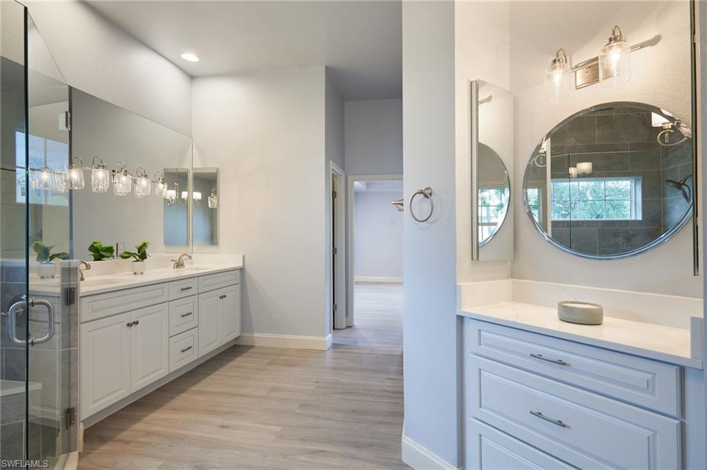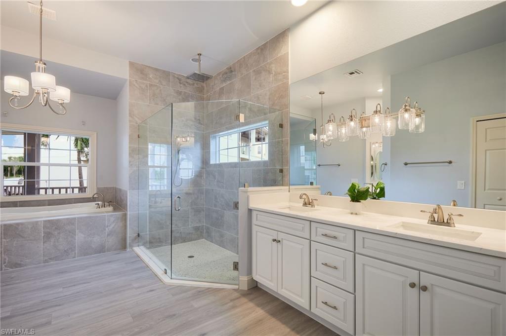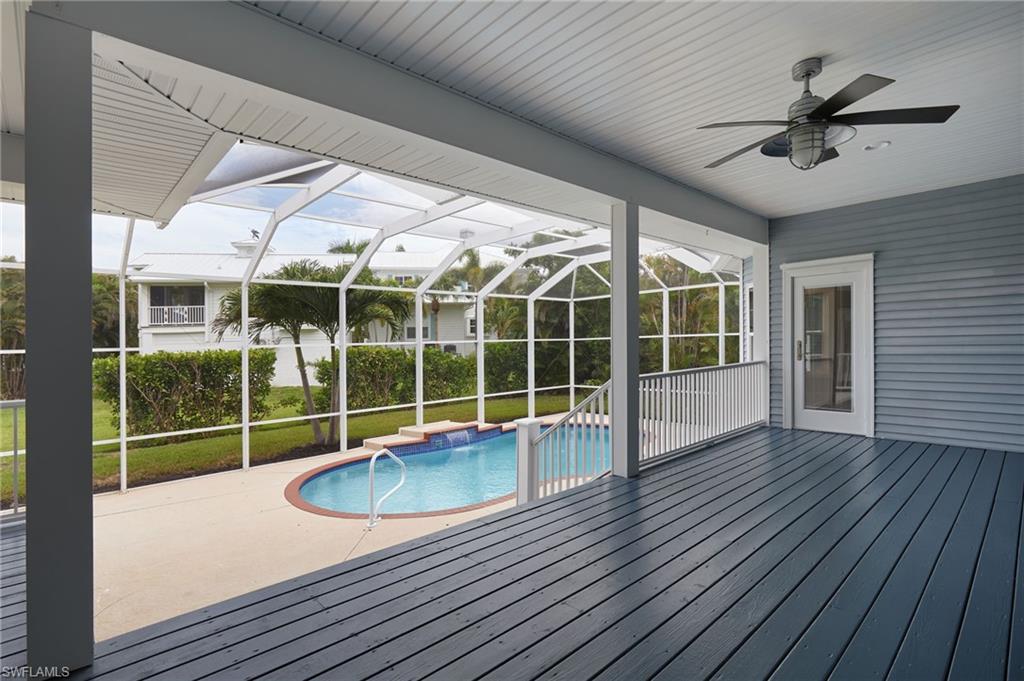 Step into coastal elegance at 18210 Chesapeake Court, a beautifully remodeled home nestled within the exclusive, gated community of Tidewater Island in Fort Myers. This spacious 3-bedroom plus den, 2.5-bath residence sits on an oversized lot and has been thoughtfully updated to blend charm, comfort, and modern convenience. From the welcoming front porch to the soaring volume tray ceilings and crown molding inside, this home offers a warm, inviting atmosphere that feels instantly like home. French doors lead out to a stunning two-tier screened lanai with a private pool, raised spa, and dedicated pool bath, creating the perfect outdoor retreat for entertaining or unwinding in peace.Inside, the kitchen has been completely renovated with stainless steel appliances, a walk-in pantry, and generous counter space ideal for everyday living and gathering with loved ones. The open floor plan flows effortlessly into a bright and airy living room, freshly painted in soft, neutral tones and filled with natural light. The primary suite is a true retreat, complete with a large walk-in closet and a beautifully updated en-suite bathroom featuring modern finishes and a walk-in shower. Two additional bedrooms plus a flexible den space offer endless possibilities for guests, a home office, or playroom.The home has been remodeled throughout in 2024, including a new water heater, new stainless appliances, updated bathrooms, new laminate flooring, and interior paint. A new A/C system was installed in 2022, and a reverse osmosis system adds extra peace of mind. The oversized garage provides ample storage, and the expansive rear yard includes a wood deck and plenty of room to enjoy the outdoors. Located on a quiet cul-de-sac street in a tranquil, non-cookie-cutter neighborhood, this property offers privacy and a sense of place, all just minutes from the beaches, shopping, dining, and the airport.Low HOA fees, no CDD. Homes in Tidewater Island rarely come available, and this one is truly special, offering refined upgrades, thoughtful design, and that rare feeling of u201cHOMEu201d the moment you walk through the door.