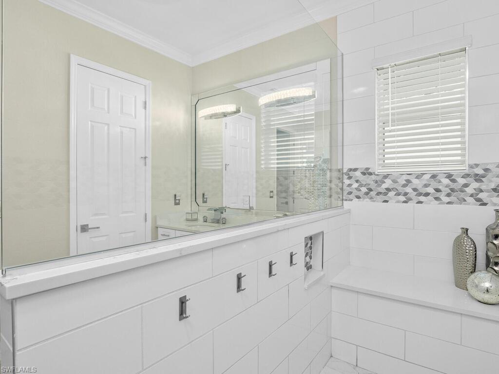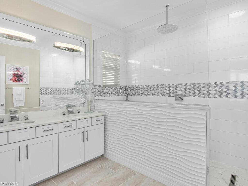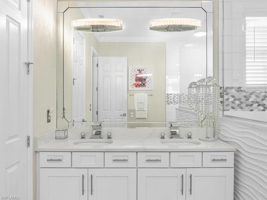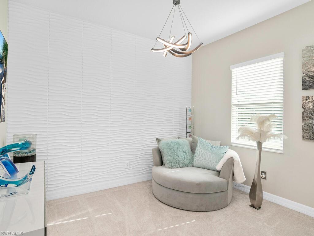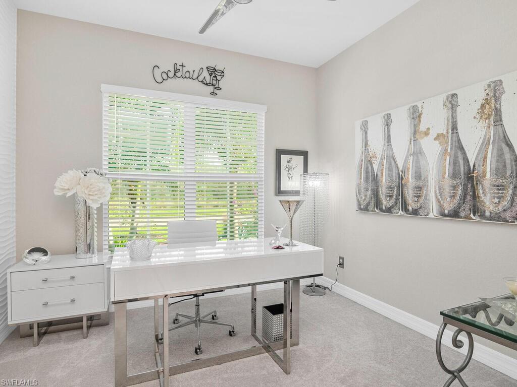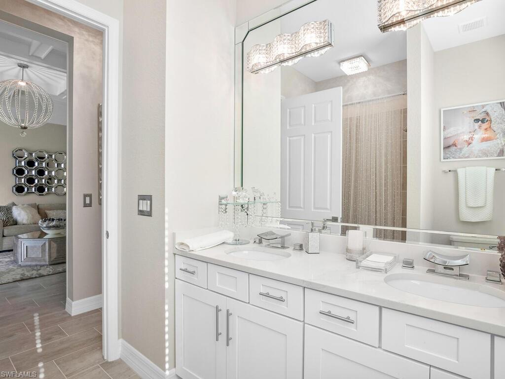 HUGE PRICE IMPROVEMENT! FURNISHED! STUNNING LAKE VIEWS! Welcome to Vista WildBlue! BETTER THAN NEW! NOT IN A FLOOD ZONE! Looks and feels like a model that is loaded with upgrades and designed to impress the most discerning buyer. This beautiful Tivoli floorplan offers 2,271 sqft under air with 4 full bedrooms, 3 full bathrooms and a 3-CAR GARAGE! This gorgeous home is being sold designer FURNISHED! Custom finishes throughout with custom coffered ceilings in living room and primary suite, crown molding throughout, upgraded new lighting, chandeliers, faucets, hardware, wave tile, screened entryway, outlet covers, door handles, hinges, stoppers, towel racks and toilet paper holders. The oversized kitchen is a chef's delight with abundant cabinets and counterspace, natural gas, upgraded stainless-steel appliances, refrigerator has built-in Keurig coffee maker, quartz countertops, designer glass tile backsplash included in cooking, bar, and center island, above cabinet lighting and a cozy separate eat-in nook with custom wall mirror. The dining room is stunning with a beautiful chandelier and custom wall mirrors. The living room is open to dining room and kitchen areas with beautiful entertainment wall and built-in fireplace. The living area extends out to the beautiful outdoor covered lanai with new outdoor kitchen (never used), custom wave tile on walls, new tongue-and-groove ceiling with remote lighting behind crown molding and electric hurricane shutters for peace of mind. A beautiful sparking pool with spill over spa overlooks gorgeous lake views with upgraded lush tropical landscaping and outdoor lighting with spectacular evening sunsets. The primary suite is a luxurious retreat that includes new floor tile, wave tile, custom coffered ceiling, lighting and a large walk-in closet with beautiful views of the pool and lake. The primary bathroom has been redesigned by removing the tub for an oversized walk-in glass shower, double sinks, and private water closet. Split secondary bedrooms offer separation and privacy. The front bedroom is an ensuite perfect for guest with its own private bathroom and a new glass shower enclosure. The large 3-car garage has storage cabinets with lighting below and storage above the garage doors. This home has impact windows and doors, and flood insurance is not required. All pavers in the pool area and driveway have just been power washed and professionally sealed. WildBlue offers 5-star amenities, 800-acre lake, resort pool, lap pool, day spa, 6 har-tru tennis courts, 8 pickleball courts, full time tennis director, fitness center, boat launch w/day docks, playground, sport court, indoor fine dining and outside pool bar/grill. WildBlue is the perfect location between Naples & Ft Myers, minutes from Miromar Outlets, Gulf Coast Town Center Mall, Hertz Arena, SWFL Intl Airport, schools, shopping, restaurants and close to beautiful beaches.