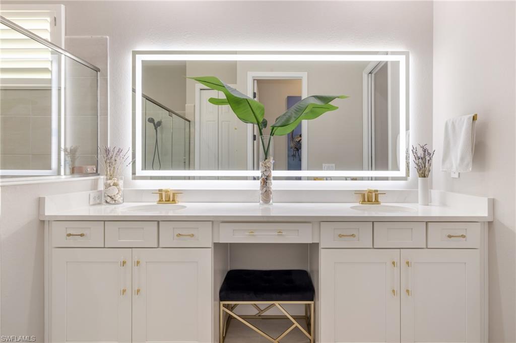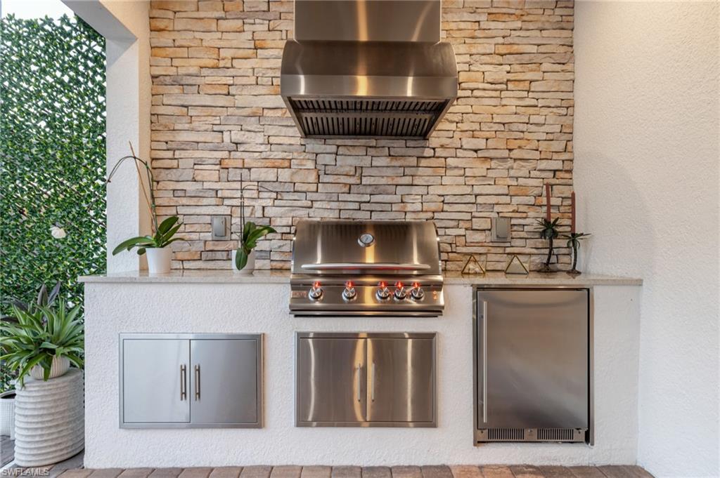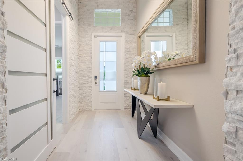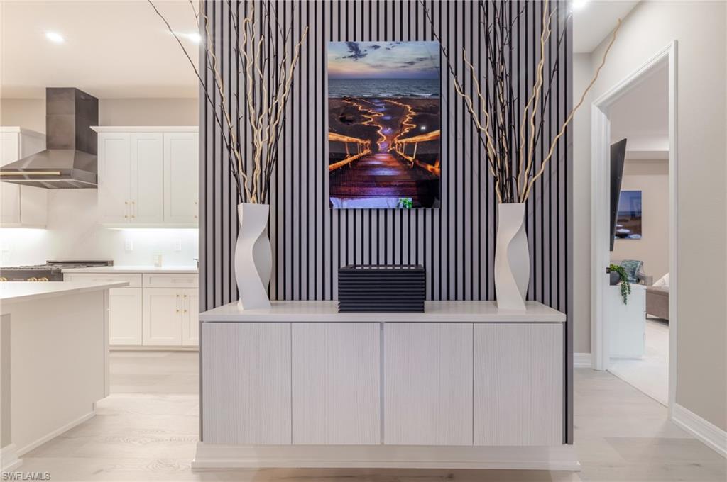 Welcome to this nearly new, meticulously maintained residence in the prestigious lakefront community of WildBlue, where luxury design and resort-style living meet in the heart of Estero. Perfectly positioned on an oversized tropical lot, this home blends sophisticated architecture, thoughtful upgrades, and everyday comfort. With nearly $210,000 in premium after-market enhancements and a recent appraisal of $1.1 million, it offers exceptional value and craftsmanship. The coveted Maria floor plan provides a bright, open-concept layout that flows effortlessly from the great room to your private outdoor retreat. Inside, elegant details elevate every corneru2014from Amalfi, Camero, and Lutron designer lighting to a custom lighted feature wall and illuminated wine rack that make an unforgettable impression. The chefu2019s kitchen showcases high-end Z Line appliances, sleek Italian fixtures, quartz countertops, and abundant cabinetryu2014perfect for making family dinners feel special or hosting engaging dinner parties. The owneru2019s suite features direct lanai access, while the spa-inspired bath offers dual sinks, new Kohler faucets, backlit mirrors, and updated hardware. The guest ensuite bath mirrors that same attention to luxury with a frameless glass shower, backlit mirror, and upgraded fixtures. Throughout the home, Luxury Vinyl Plank flooring, plantation shutters, and Hunter Douglas remote shades add sophistication and privacy. Additional features include a tankless water heater, an insulated and air-conditioned garage, and a nearly new LG washer and dryer in a thoughtfully designed laundry room with extra cabinetry. Every inch of this residence showcases attention to detailu2014from the custom exterior soffit lighting and refined sconces to the long paver driveway and lush professional landscaping. Outdoors, your personal oasis awaits with a Synergy wood ceiling, outdoor kitchen, and panoramic-screened lanai that opens to tranquil preserve views. Custom LED lighting illuminates the lanai and pool, creating a magical setting for evening entertaining. With storm-ready impact-resistant windows and doors, a NO FLOOD ZONE location, and low annual insurance, this home offers both peace of mind and effortless style. Living in WildBlue means enjoying access to world-class amenities, including a clubhouse with waterfront dining, a resort-style pool, fitness and wellness center, tennis, pickleball, bocce, walking trails, and a private boat ramp for kayaking or boating on the 800-acre lake. Conveniently close to Miromar Outlets, Hertz Arena, Gulf Coast Town Center, and RSW International Airport, this home perfectly captures the essence of luxury, leisure, and locationu2014where every day feels like a vacation in paradise.