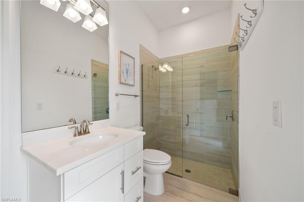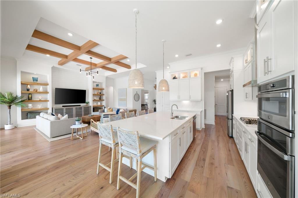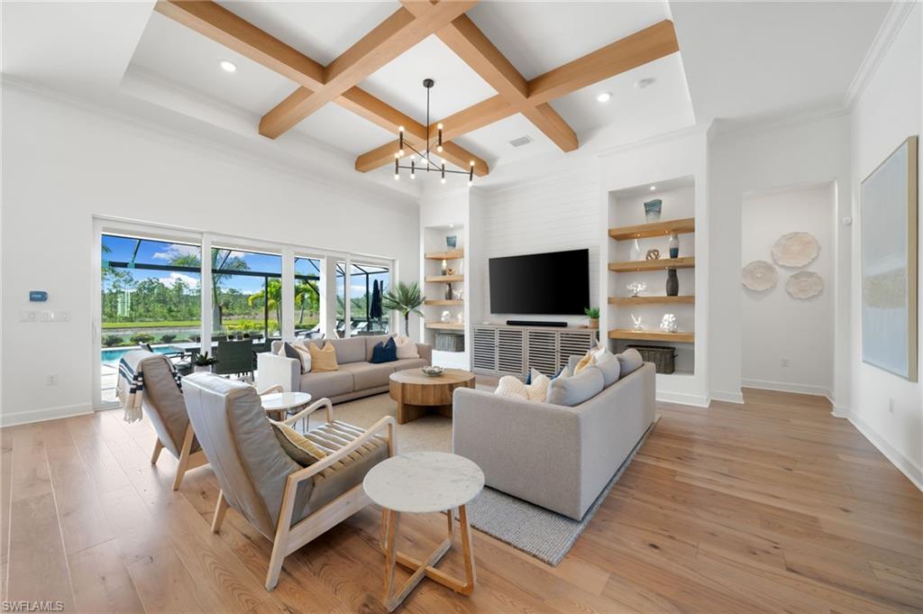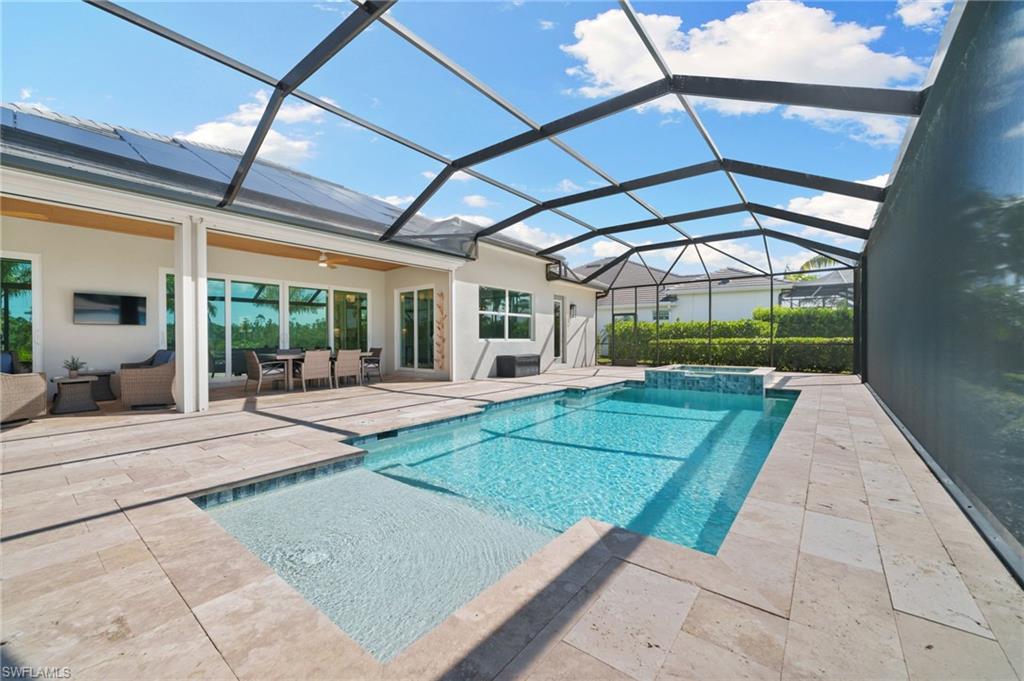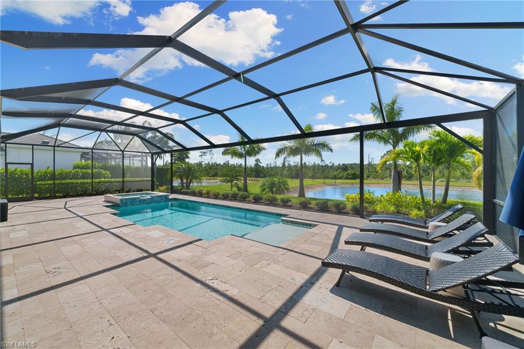Stunning Solar-Powered Lakeside Home in WildBlue u2013 Move-In Ready and Fully Furnished!Welcome to 18460 WildBlue Blvd u2014 a meticulously maintained, fully furnished 2022-built home offering the perfect blend of luxury, sustainability, and resort-style living. Positioned on a rare southwest-facing, pie-shaped lot with 102 feet of lake and preserve frontage, this home captures breathtaking sunsets and sunlight all day long across its expansive pool and spa area.This single-level Lakeside floor plan by WCI Homes offers nearly 2,700 sq. ft. under air with one of the largest great room layouts in WildBlue. Soaring ceilings enhance the open concept living, dining, and kitchen areas, highlighted by a massive island, gas cooktop, wall oven/microwave, and stacked, backlit display cabinetry. The great room features built-in shelving flanking an 86u201d TV with a Sonos Arc soundbar, creating the ultimate entertainment space.The split-bedroom design offers privacy, with two guest suites on one side and a luxurious master retreat on the other. The master suite includes two oversized walk-in closets, double vanities, a large walk-in shower, and abundant natural light. A spacious den/office near the entry can easily convert into a fourth bedroom if needed.Step outside to your private tropical oasis u2014 a screen-enclosed lanai with dining and lounge areas, an outdoor TV, and a built-in kitchen with grill and refrigerator. The travertine pool deck, LED pool and spa lighting, faux-wood tongue-and-groove ceiling, and motorized hurricane screens create the perfect setting for outdoor living and entertaining.Lush professional landscaping includes Calusa hedges for privacy, multiple palm species, and low-voltage lighting surrounding the property. The upgraded contemporary glass-panel front doors enhance curb appeal and welcome you into a home that feels brand new.Enjoy incredible energy savings with a 24-panel paid-off solar system and Tesla Powerwall 3, delivering an average electric bill of just ~$39/month and allowing off-grid capability. Additional upgrades include engineered ash wood flooring, decorative ceiling beams, wood trim accents, upgraded fans and lighting throughout, Wi-Fi thermostat, MyQ smart garage, and Ring doorbell. The 3-car front-facing garage offers easy access and extra driveway space u2014 unique for WildBlue homes.WildBlue is a premier gated lakefront community featuring a 700-acre boating lake, resort-style clubhouse with restaurant and bar, fitness center, spa, pickleball, tennis, and basketball courts, plus a resort pool and cabanas. Conveniently located near RSW Airport, Gulf Coast Town Center, and Southwest Floridau2019s best beaches, this location combines luxury, nature, and convenience.Enjoy endless sunsets, full-day sun, and effortless luxury u2014 this exceptional WildBlue home is move-in ready, beautifully furnished, and truly one of a kind.
