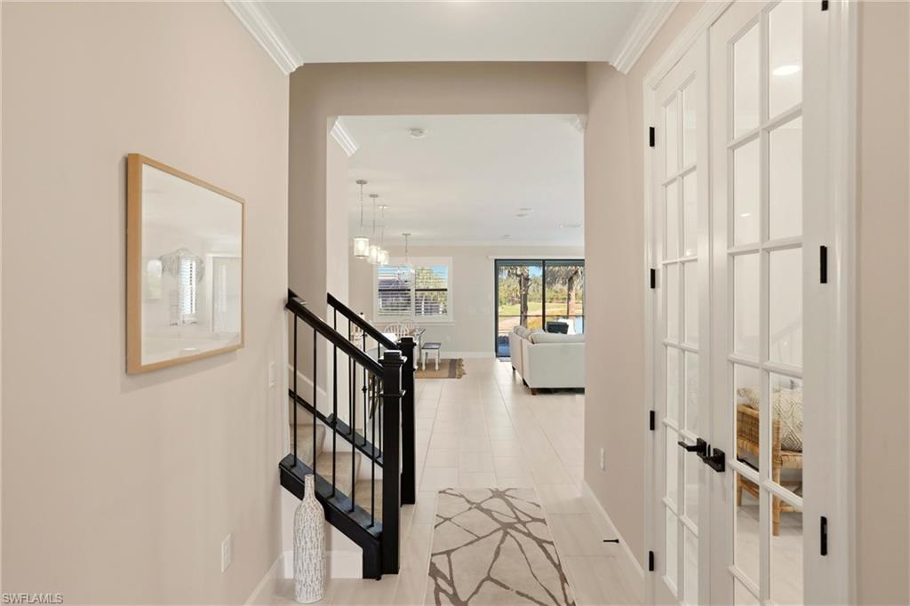 Welcome home to this beautifully maintained Summerwood residence featuring three bedrooms plus a den and loft, three full baths, and peaceful pool and water views. The home is fully wired for internet and cable and includes a Sonos whole-home sound system, making it ideal for both everyday living and entertaining. Professional landscaping with accent lighting creates lovely curb appeal, while thoughtful upgrades add convenience throughout. Highlights include a tankless water heater, gas cooktop, laundry tub in the garage, under-stair storage in the laundry room, and a floor outlet in the gathering room. The kitchen offers Shaker-style cabinetry, stainless steel appliances, and granite countertops.Enjoy outdoor living on the covered lanai, relax by the saltwater pool, or plan the outdoor kitchen of your dreams with the space already prepped and ready. As a resident of WildBlue, you will enjoy resort-style amenities including indoor and outdoor dining, boating access, a fitness center with classes, pickleball and tennis, a basketball court, a lakeside beach, boat ramp, docks, and more.This home offers comfort, style, and an exceptional lifestyle in the heart of WildBlue.