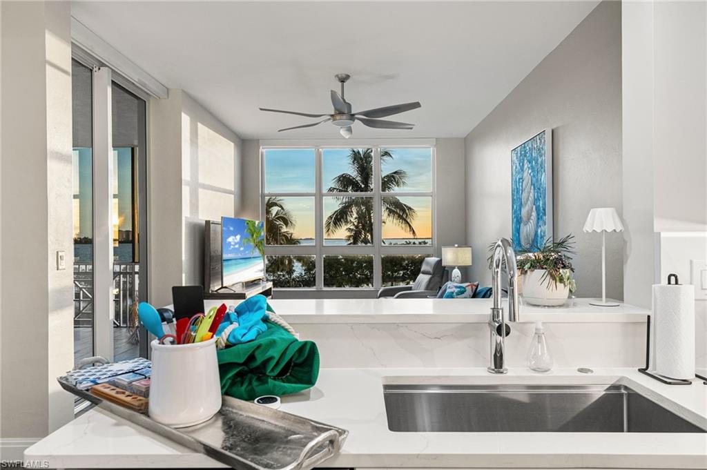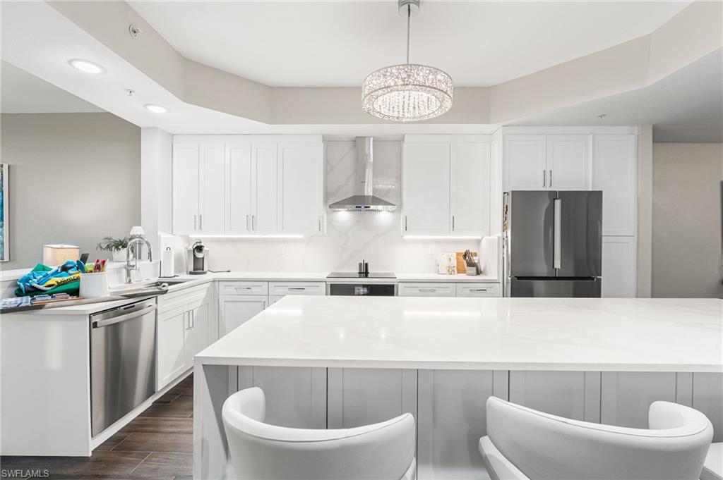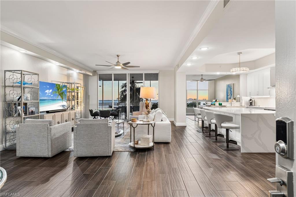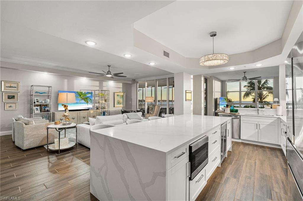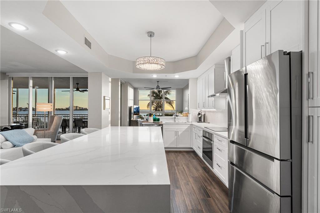 Step into luxury waterfront living within the Shores at Gulf Harbour, where sophistication meets tranquility. This particular model offers an exceptionally spacious and open layout that is as functional as it is elegant. Professionally decorated and recently renovated, the home blends timeless style with modern comfort. One of the most sought-after floorpans in the community, this residence is a front center stack, designed so that the main living areas and the primary suite enjoy sweeping water views, creating a serene, light-filled ambiance throughout. Enjoy savoring sunrises off your expansive lanai and beautiful sunrises off the second balcony with an additional outdoor living space. The heart of the condo is a beautifully remodeled kitchen, featuring high-end finishes, custom cabinetry, and premium appliances. Two inviting sitting areas, both with stunning water views, create a remarkable sense of openness and flow, making the space feel even larger and brighter. Every detail has been thoughtfully chosen, resulting in a residence that is as stylish as it is welcoming. Gulf Harbour Yacht and Country Club offers an array of resort-style amenities that can be enjoyed with the purchase of an optional membership-though membership is not required for residency. These amenities include a resort styled pool and spa, full service spa services, 8 tennis courts, pristine golf course, multiple restaurant and bar options, TrackMan golf simulator, state-of-the-art fitness studio with TRX studio, Pilates reformers, spin room and instructor-led classes. Some of these may incur additional costs and these and membership information should be inquired with Holly Trent with member services.The club is undergoing a stunning clubhouse remodel. Renderings are available to see the elevated social and recreational hub it will offer members.
