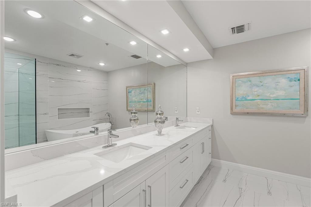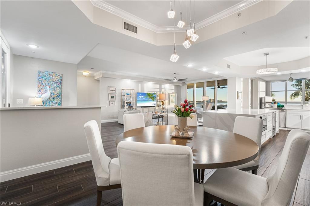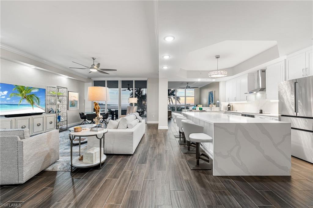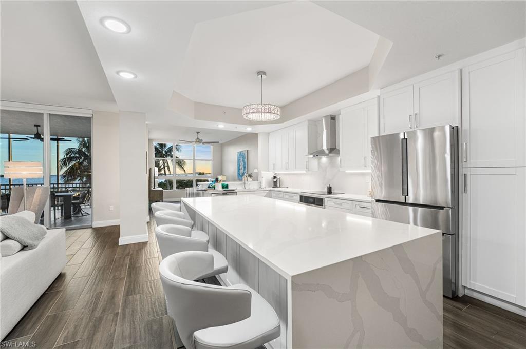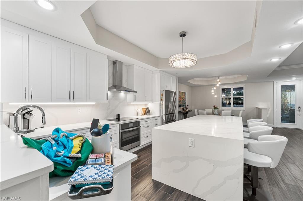 Step into luxury waterfront living within the Shores at Gulf Harbour, where sophistication meets tranquility. This particular model offers an exceptionally spacious and open layout that is as functional as it is elegant. Professionally decorated and recently renovated, the home blends timeless style with modern comfort. One of the most sought-after floorpans in the community, this residence is a front center stack, designed so that the main living areas and the primary suite enjoy sweeping water views, creating a serene, light-filled ambiance throughout. Enjoy savoring sunrises off your expansive lanai and beautiful sunrises off the second balcony with an additional outdoor living space. The heart of the condo is a beautifully remodeled kitchen, featuring high-end finishes, custom cabinetry, and premium appliances. Two inviting sitting areas, both with stunning water views, create a remarkable sense of openness and flow, making the space feel even larger and brighter. Every detail has been thoughtfully chosen, resulting in a residence that is as stylish as it is welcoming. Gulf Harbour Yacht and Country Club offers an array of resort-style amenities that can be enjoyed with the purchase of an optional membership-though membership is not required for residency. These amenities include a resort styled pool and spa, full service spa services, 8 tennis courts, pristine golf course, multiple restaurant and bar options, TrackMan golf simulator, state-of-the-art fitness studio with TRX studio, Pilates reformers, spin room and instructor-led classes. Some of these may incur additional costs and these and membership information should be inquired with Holly Trent with member services.The club is undergoing a stunning clubhouse remodel. Renderings are available to see the elevated social and recreational hub it will offer members.